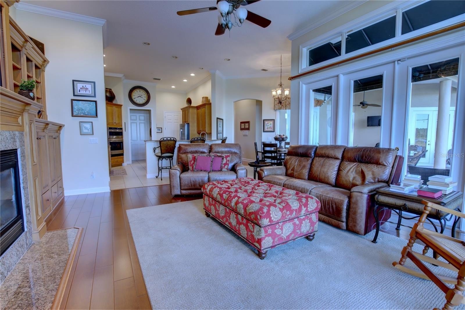 Your search is over with this exceptional custom lakefront estate located in the highly sought-after Reserve at Heathrow. Perfectly positioned on scenic Lake Irish, this impressive home offers breathtaking sunset views and an expansive open floor plan designed for both everyday living and unforgettable entertaining. Featuring five spacious bedrooms plus a private office, four full baths, a dedicated theatre room, and a large bonus room complete with a custom built-in bar and screened balcony, there is truly no shortage of space. The heart of the home is the oversized gourmet kitchen, showcasing custom cabinetry, granite countertops, a tiled backsplash, built-in stainless steel appliances, a breakfast bar, and a generous walk-in pantry, all seamlessly flowing into the main living areas and outdoor spaces. The luxurious primary suite is a true retreat with an oversized walk-in closet, dual vanities, a corner jetted tub, and a separate walk-in shower. Additional upgrades include soaring 12-foot ceilings with crown molding, decorative tray ceilings, custom architectural details throughout, and built-in cabinetry in the family room. Residents of Heathrow enjoy premier amenities such as two 24/7 manned guard gates, Sawyer Lake Park with playground, ball fields, basketball courts, soccer fields, and a clubhouse available for private events. This remarkable lakefront home offers luxury, space, and an unbeatable lifestyle—schedule your private showing today.