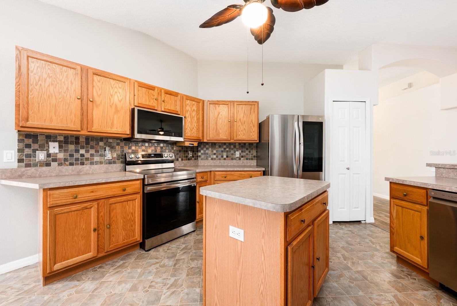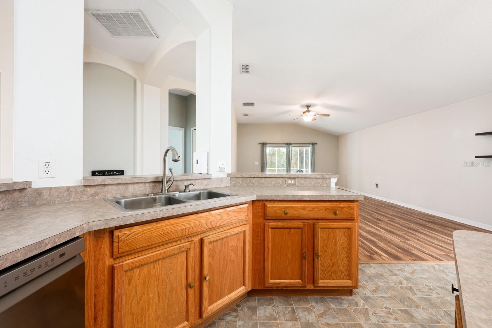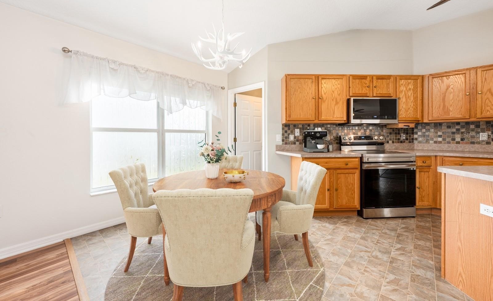One or more photo(s) has been virtually staged. **Seller may consider buyer concessions if made in an offer**Welcome to your PRIVATE RETREAT in the highly desirable Fairways at Mount Plymouth — a peaceful community built on a former golf course where SCENIC WALKING TRAILS, open green space, and a charming SMALL-TOWN ATMOSPHERE create an exceptional lifestyle. Perfectly positioned with NO REAR NEIGHBORS and backing directly to the former fairways, this beautifully UPDATED 3-bedroom, 2-bath single-story home offers tranquility, privacy, and true MOVE-IN READY comfort. From the moment you arrive, you’ll appreciate the FRESHLY PAINTED EXTERIOR (2024), NEWER ROOF (2022), and UPGRADED IRRIGATION SYSTEM (2024), all reflecting the meticulous care this home has received. Inside, high ceilings and abundant natural light enhance the open-concept design, while WOOD-LOOK LAMINATE FLOORING and UNIQUE ARCHITECTURAL DETAILS add warmth and character. The Living Room, Kitchen, and Dinette flow effortlessly together, creating a welcoming space ideal for both entertaining and everyday living while a separate Dining Room nearby provides the perfect setting for more formal occasions. The STUNNING, LIGHT-FILLED KITCHEN is a showpiece, featuring quartz countertops, solid wood cabinetry, stainless steel appliances, a stylish backsplash, center island, breakfast bar, and a spacious eat-in space. Just off the Kitchen, a well-appointed laundry room offers built-in cabinetry for added convenience and organization. The Living Room’s sliding glass doors open to your own PRIVATE RETREAT—an expansive covered patio and a screened pool and spa enclosure recently enhanced with a NEW POOL CAGE (2021). The professionally maintained, PRIVATE IN-GROUND HEATED POOL AND SPA feel like a luxury resort, complete with a NEW POOL PUMP AND HEATER (2024) to ensure year-round enjoyment. The oversized Primary Suite offers DIRECT ACCESS to the patio and pool through sliding glass doors, creating a seamless indoor-outdoor flow. NEWLY INSTALLED carpet in the Primary Bedroom and closets (2025) adds fresh comfort, while the EN SUITE BATH featuring a relaxing garden tub with shower, and spacious walk-in closet completes this private sanctuary. A thoughtful SPLIT-BEDROOM LAYOUT places two additional bedrooms and a SECOND FULL BATH on the opposite side of the home, providing privacy and flexibility for family or guests. With a LOW HOA, EXCELLENT SCHOOLS, and a QUIET NEIGHBORHOOD atmosphere, Fairways at Mount Plymouth offers the perfect combination of serenity and convenience. You’re just minutes from the HISTORIC CHARM of Mount Dora and Tavares, known for waterfront dining, festivals, boutique shopping, and year-round community events. EASY ACCESS to SR-429, US-441, and the Florida Turnpike makes commuting to Orlando and surrounding areas simple and convenient. If you’ve been searching for a home that combines tranquility, upgrades, outdoor living, and a WELCOMING COMMUNITY FEEL — this is the one!