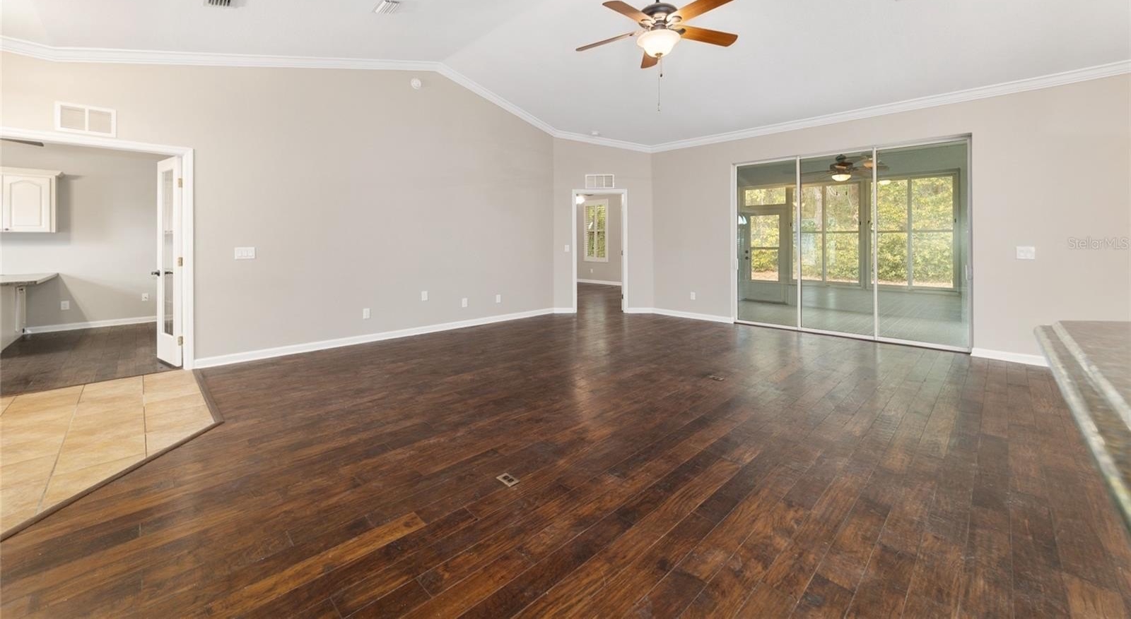 One of the standout features is the 270-square-foot enclosed back patio with windows that can be opened to enjoy fresh breezes—ideal for relaxing year-round. The backyard is chain-link fenced and lined with trees for shade and added privacy. The garage offers a full two-car space plus additional room for golf cart parking, making it easy to enjoy the Ocala Palms lifestyle.