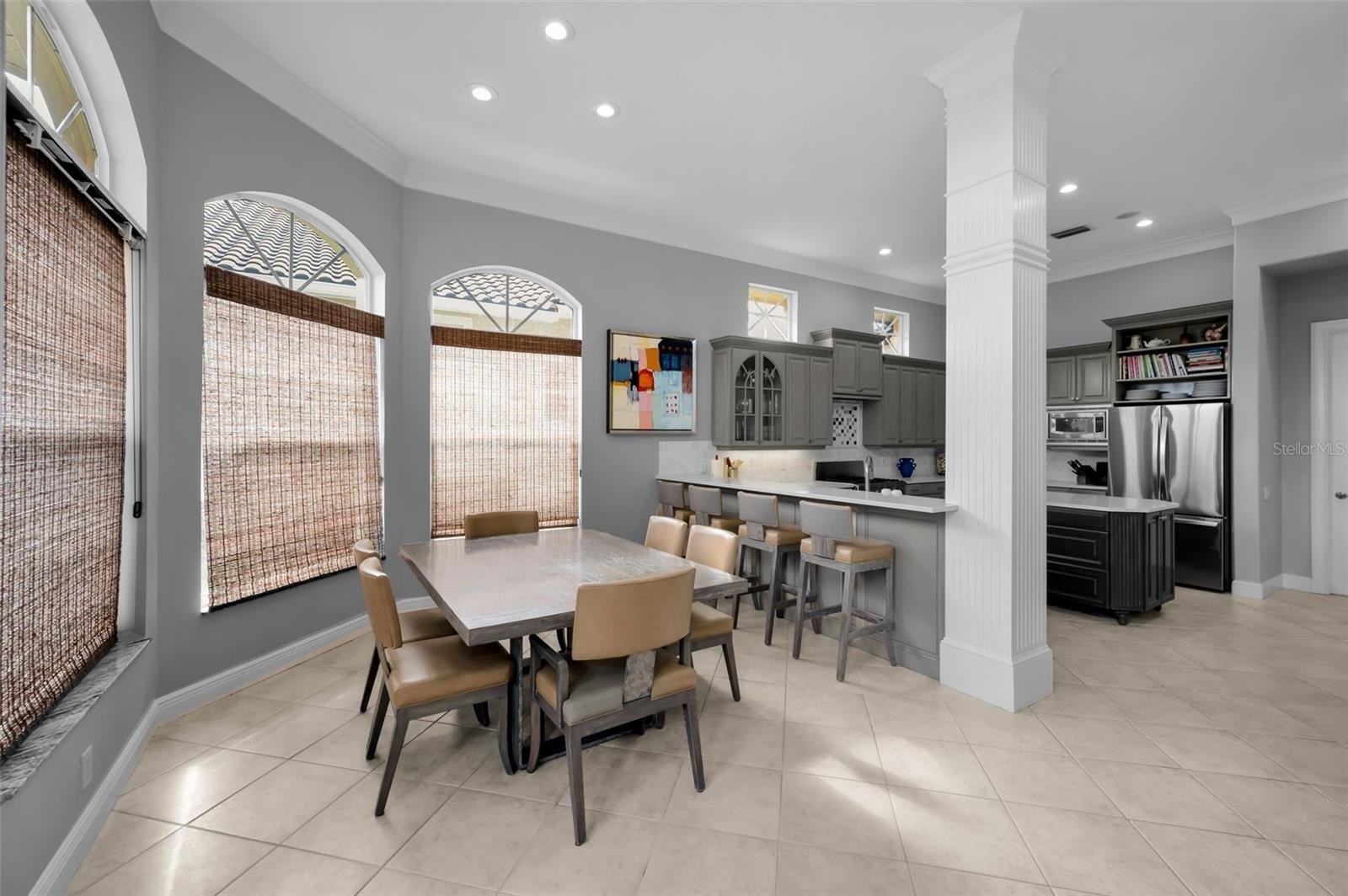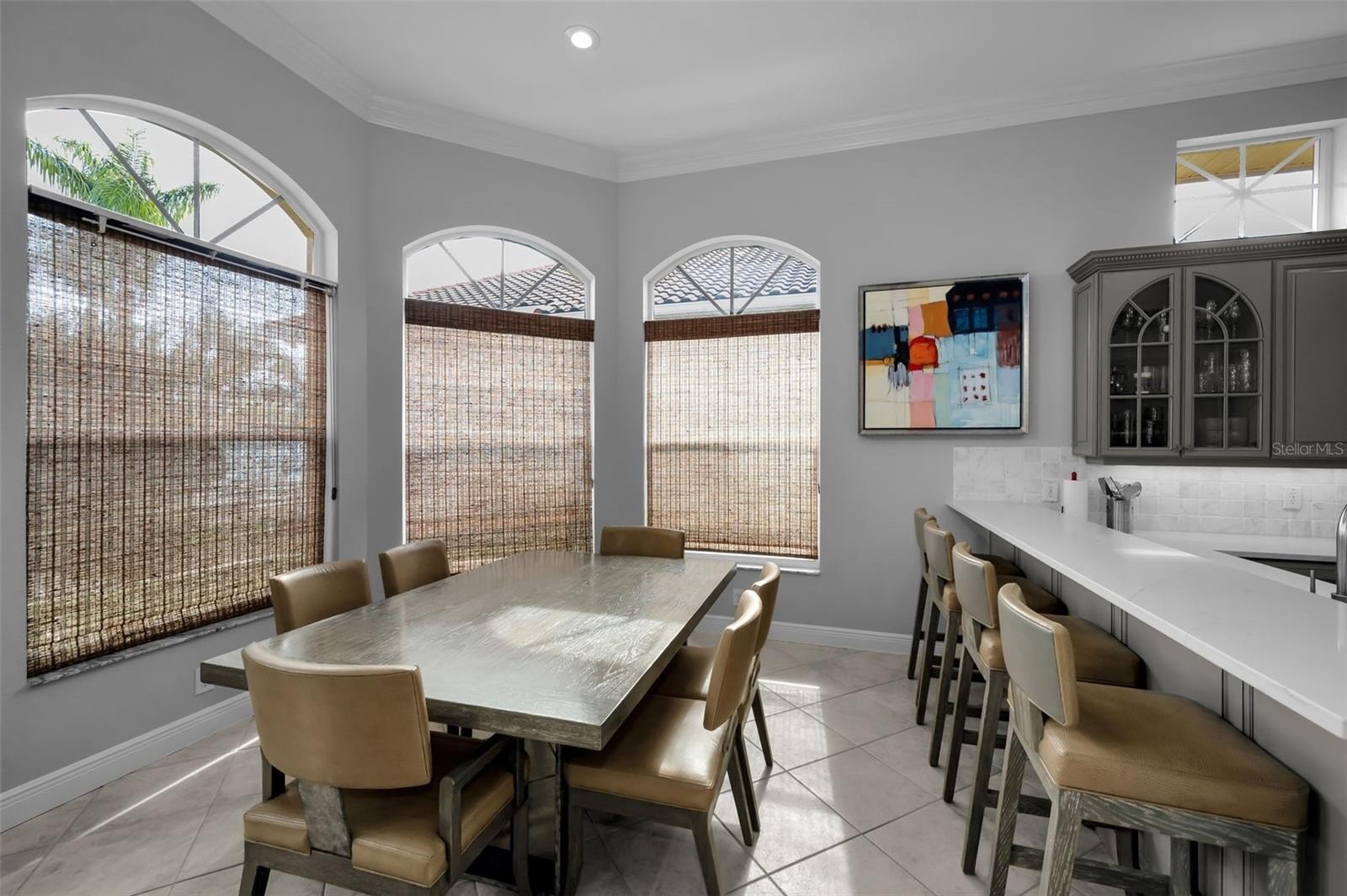 Modern Tuscan revival architecture and thoughtful innovation converge in this exceptional Mediterranean style Luxury custom-built Two story residence in Bayou Club Estates, where openness, comfort, and quiet sophistication define every space. Meticulously designed and exquisitely finished, the home reveals superior craftsmanship from the moment you step inside. At its heart is a sun-filled, two-story living area framed by a dramatic wall of windows, Tuscan style columns all overlooking the paver terrace and resort-style pool, custom built in 2022. The expansive outdoor environment is designed for effortless enjoyment: a sweeping paver deck ideal for entertaining, a shimmering, new-generation pool that invites relaxation, a putting green and a full-size built-in gas fire pit that sets the tone for memorable evenings under the stars. Just off the entry, an inviting dining room, enhanced by a custom built-in buffet, flows seamlessly into the living area. Adjoining the kitchen is a casual dining space ideal for everyday meals form a true culinary hub, featuring chef-grade appliances, custom cabinetry, a large center island, and quartz countertops. Adjacent to the kitchen is a spacious utility room offering abundant cabinetry, a full-size washer and dryer, and generous storage. This highly functional workspace transitions naturally into an inviting family room anchored by a gas fireplace with custom built-ins & huge mantle with a striking architectural window flooding the room with light, creating the perfect setting for both intimate meals and lively gatherings. The light-filled family room offers a year-round retreat with serene views of the gardens and pool. A split bedroom layout ensures privacy for all. The main level includes a spacious home office, a secondary ensuite bedroom, and a generous flex room—currently used as an exercise studio—with an adjacent full pool bath. Upstairs, the primary suite serves as a calming sanctuary, offering generous proportions, a spa-inspired ambiance, an expansive double walk-in closet and a private second story terrace overlooking the private backyard. A landing between the upper-level bedrooms provides a striking overlook to the lower level and opens to a private terrace with views of the front green space. Two additional bedrooms, connected by a Jack-and-Jill bath, and a dedicated study with integrated shelving complete the upper floor. Set on a large waterfront lot, the backyard is an oasis for everyday living and weekend recreation. A private dock allows for small-craft access to a peaceful waterway that meanders toward the Bay and the Gulf. The fully usable green space offers ample room to play, ideal for both pets and children. Practical luxuries and value added improvements include a new concrete, barrel tile roof, an oversized, split four-car garage, newer kitchen & baths and exceptional storage throughout. Perfectly positioned in the heart of the Largo/Seminole area, the Bayou Club community is comprised of 400 homes on just over 400 acres boasting that “Old Florida” feel and a Tom Fazio designed Golf Course offering an optional membership. This premier Country Club features 24 hour gated security and full-time security guard. Elegant, functional, and beautifully private, this home embodies the quintessential Bayou Club lifestyle!