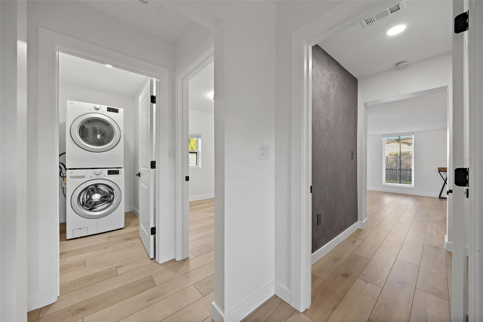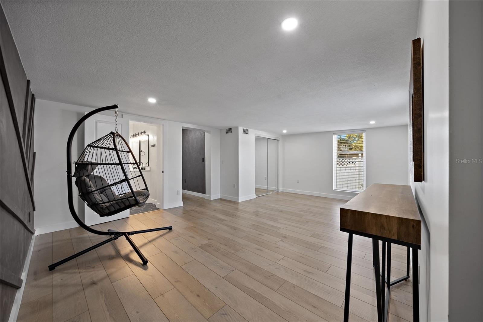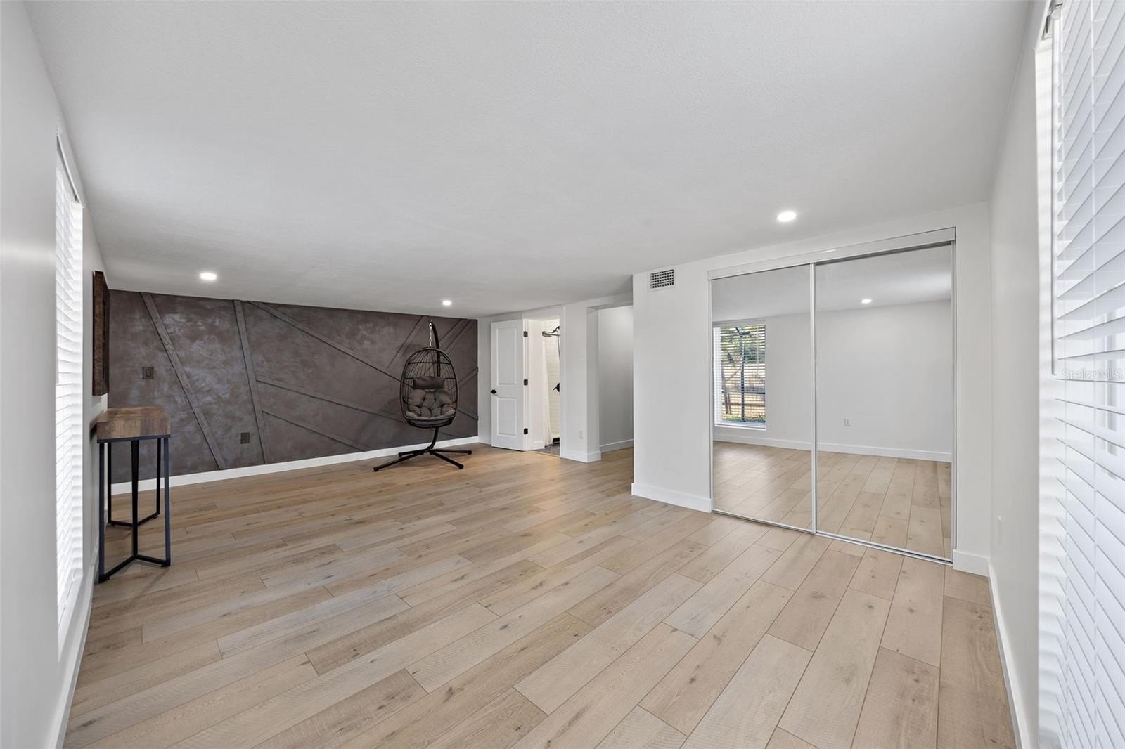 Inside, the open floor plan is filled with natural light, and the primary suite features a walk-in closet and private en-suite bath. Photos showcase the home fully renovated prior to the 2024 storm, along with current interior as-is condition.