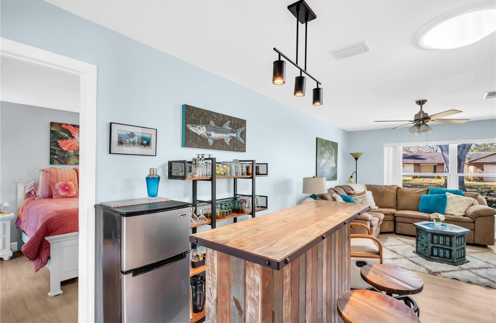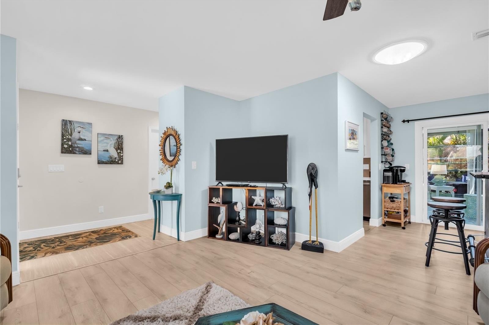 Everything in this single-family home has been done for you! Move right into this beautifully updated home, perfectly situated within walking distance of the main clubhouse in a 55+ retirement golf community designed to meet all your needs and desires. The home has been totally updated with quality materials and features a modern aesthetic that clearly shows pride of ownership. Recent upgrades include: a new roof (2022), thermal solar tubes (2021), leaf guards for gutters (2022), windows (2022 & 2023), air conditioner (2024), hot water heater (2020), flooring (2020), outdoor patio (2021), deep water well pump (2023), bathroom ceiling fans (2026), concrete driveway (2020), and landscaping (2026). The convenient kitchen, nestled between the family room and dining area, includes a pass-through to the enclosed sunroom. Here you'll find newer white cabinets and Quartz countertops, plus modern track lighting in both the kitchen and living room. The spacious sunroom offers a view of the beautifully landscaped private patio—perfect for entertaining guests and enjoying outdoor meals. The master bedroom provides ample closet space and an updated bathroom with a walk-in shower. Adjacent to the master is a peaceful, versatile private area overlooking the lovely patio. The family room adjacent to the kitchen is roomy enough for TV and a small eating area. The two-car garage also accommodates a golf cart and plenty of storage.