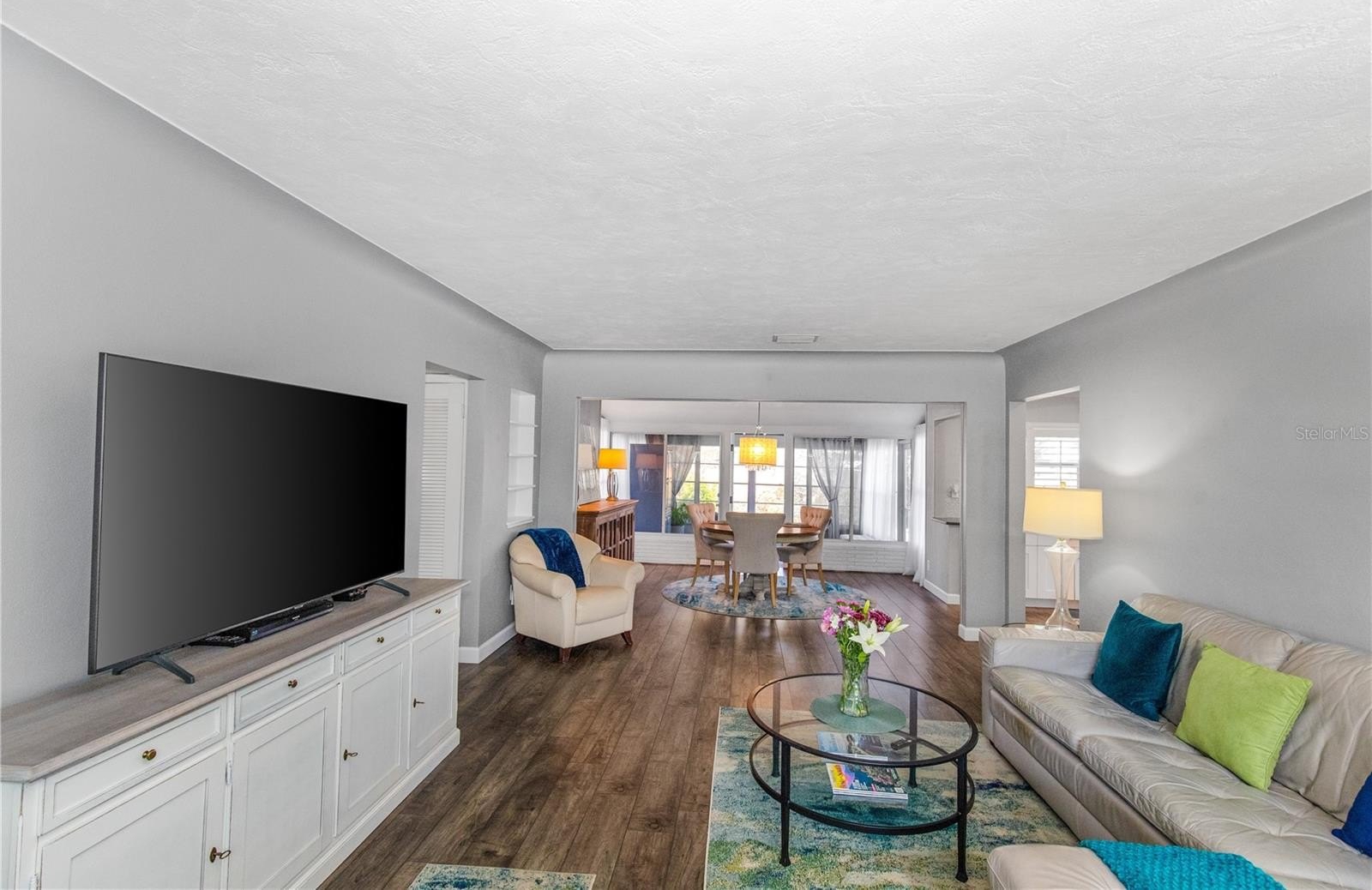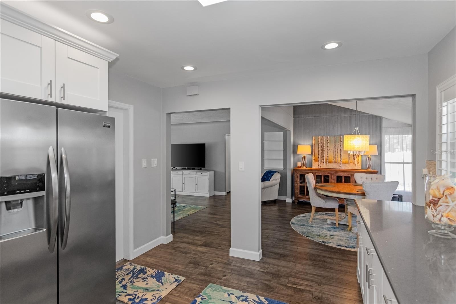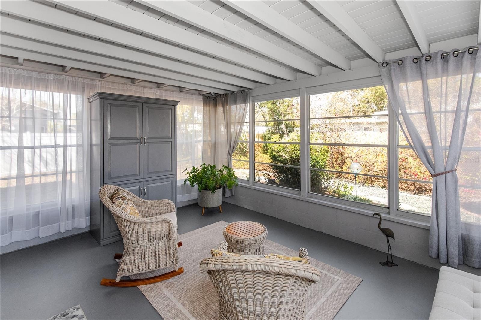 Welcome to 6343 19th Ave N in beautiful St. Petersburg! This centrally located, immaculate 2-bedroom, 2-bath, 1-car garage block home is truly move-in ready and exceptionally well maintained. Featuring a brand-new roof, fresh exterior paint, located outside of a flood zone, this home offers both peace of mind and modern comfort. From the welcoming front porch step inside to a spacious living room that flows seamlessly into the dining area and inviting Florida room. The open-concept floor plan showcases a stunning, fully renovated kitchen complete with skylight, quartz countertops, Carrera marble backsplash, wood cabinets, soft close drawers double stainless-steel sink, plantation shutters, recessed lighting and Frigidaire Gallery appliances. Perfect for cooking and entertaining. Laminate flooring runs throughout the home, and both the kitchen and main bathroom have been thoughtfully updated, allowing you to move right in without lifting a finger. The fenced backyard is designed for low-maintenance enjoyment, featuring a large patio ideal for relaxing, gardening, or hosting BBQs. With just the right blend of trees and landscaping, you'll enjoy a private outdoor retreat. Ideally situated just minutes to award-winning beaches, shopping at Tyrone Square, the vibrant downtown waterfront and the iconic St. Pete Pier, this location truly has it all.