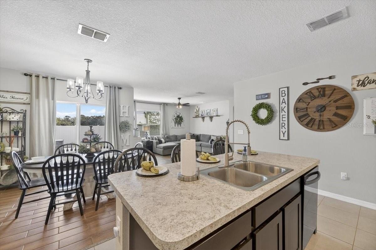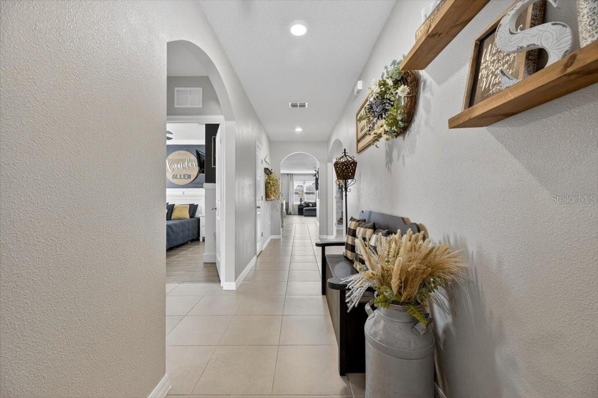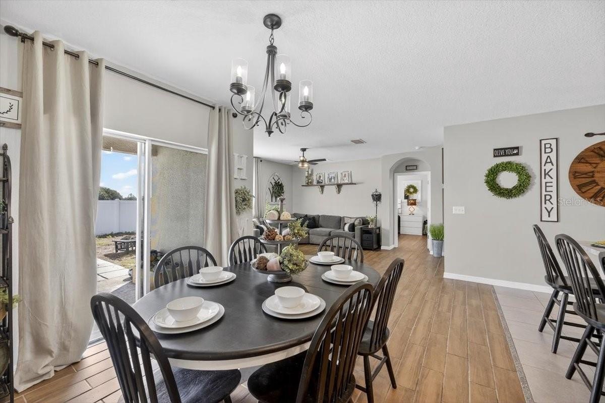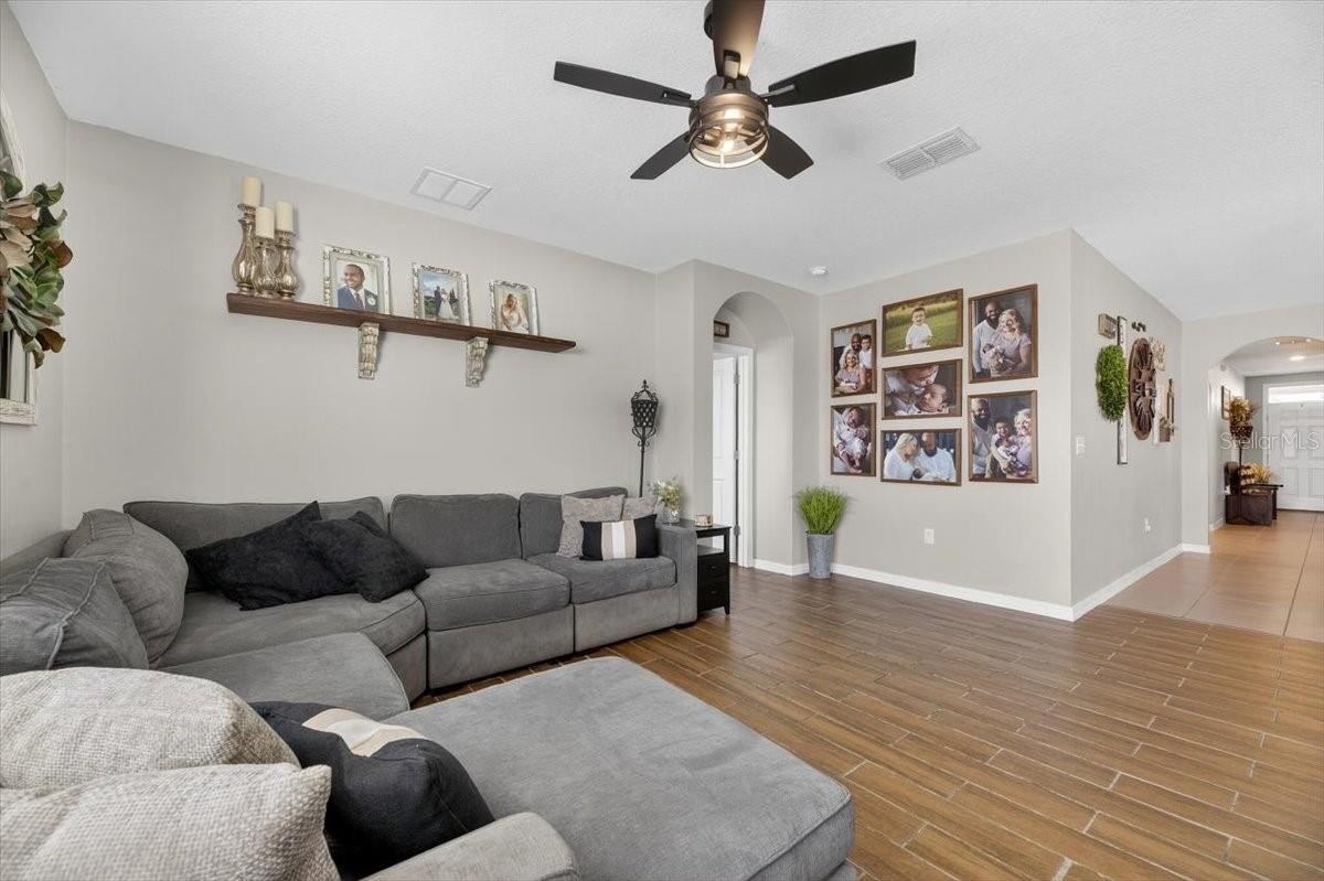 GREAT LOCATION! NO BACK DOOR NEIGHBOR! BETTER THAN NEW! Impeccably maintained 4 Bedroom 2 Bath Home in a High-Demand Plant City Community Located in a newer, sought-after neighborhood, this home offers an open-concept floor plan with a spacious kitchen featuring abundant countertop space, a large center island breakfast bar that overlooks the gathering area, and a modernized custom walk-in pantry with cabinet and floating shelves, laundry room with real wood shiplap, cabinet and floating shelves. Updated interior paint thru-out, kitchen equipped with updated sink and faucet, dishwasher, smooth-top stove, and microwave. The living and dining areas flow seamlessly, creating an ideal space for entertaining with wood look tile thru-out. The primary suite includes a walk-in closet with organizer and en-suite bath with upgraded dual sinks and faucets and a walk-in shower with rain head. Generously sized secondary bedrooms with bead board and board and batten.