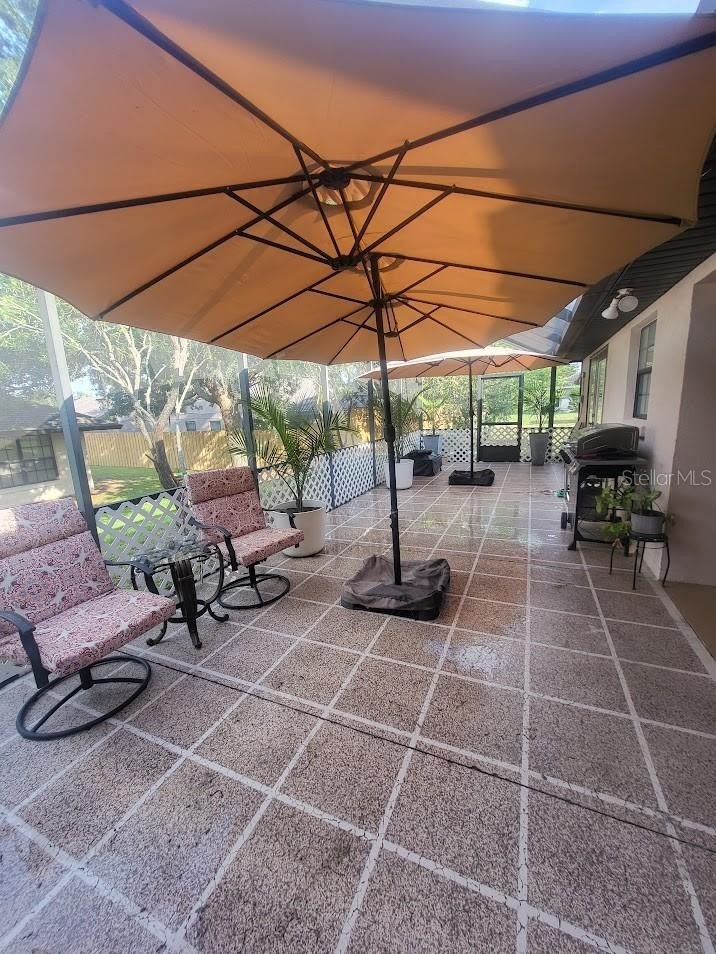 Welcome home to this beautifully maintained 3-bedroom 2 bath home with an oversized garage with 625 square feet that has a door keypad for easy access, screened sliding doors, a side entry door and cabinetry. Owners are offering up to $5,000 toward closing and prepaid assistance. The home offers a great floor plan and features a split bedroom layout with a spacious primary suite and large walk-in closet. There is a large bonus room that could be used as a fourth bedroom, media room or office and has its own entrance, sink and cabinetry. The home has architectural features that include high ceilings, plant ledges, stunning entrance, and columns. The Kitchen has an abundance of granite counters, high end stainless appliances, and a large walk-in pantry. The home is in a sought-after community with a low HOA fee of only $70 per month and offers many amenities which include a Community Pool, Fitness Center, Playground, Playing Field, Racquetball Courts, Gym, Sidewalks, Garbage Pickup twice weekly, and street sweeper that is seen on a regular basis. Major updates include new water heater (2025) new garage door opener (2025), New Tile Flooring (2024), New Enclosure Screen (2024), Roof (2022), AC (2021). This home is Move in Ready. Owners Can Close Quickly. Schedule today and discover all the many reasons you should live here.