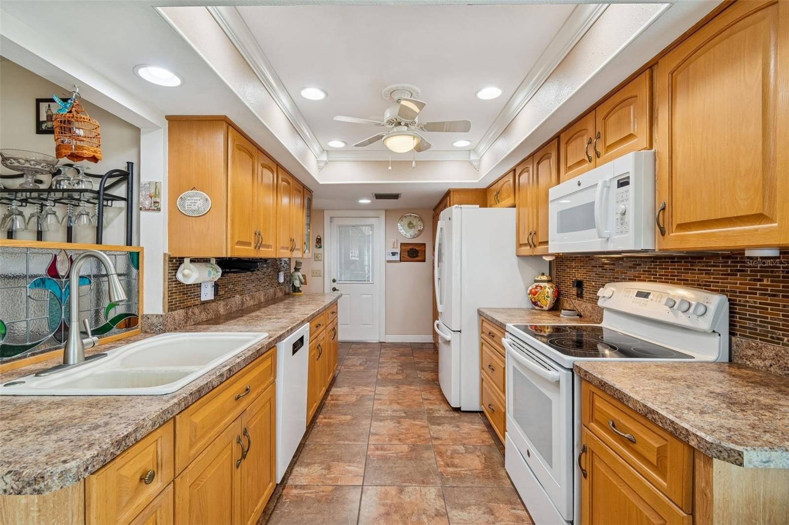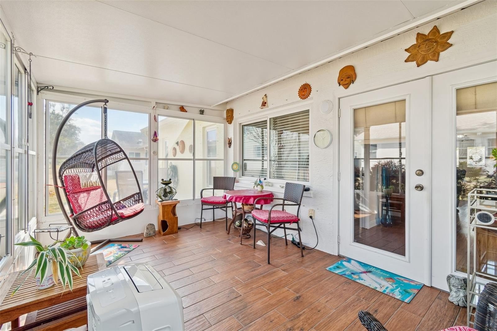 Welcome to the highly sought-after Heritage Lake 55+ community in Trinity, Florida, where comfort, convenience, and an active lifestyle come together. This well maintained residence features a spacious open floor plan designed for both everyday living and entertaining. The kitchen, formal living room, and dining room seamlessly overlook an expansive family room and a bright four-season room, creating an inviting and functional layout. The private primary suite offers two walk-in closets and an updated en-suite bath with a walk-in shower. A split-bedroom design provides privacy for guests, with the secondary bedroom featuring a walk-in closet and easy access to a nearby full bath. A versatile flex room serves perfectly as a home office, study, or hobby space. Enjoy peaceful backyard views framed by mature trees, a welcoming front porch, and a two car garage with additional storage space. Major updates include a newer A/C (2023), water heater (2021), and roof (2017). Ideally located in the heart of Trinity, this home is just minutes from premier shopping, dining, medical facilities, golf courses, and the Suncoast Parkway for convenient access to Tampa International Airport and downtown Tampa. Schedule a private showing today!