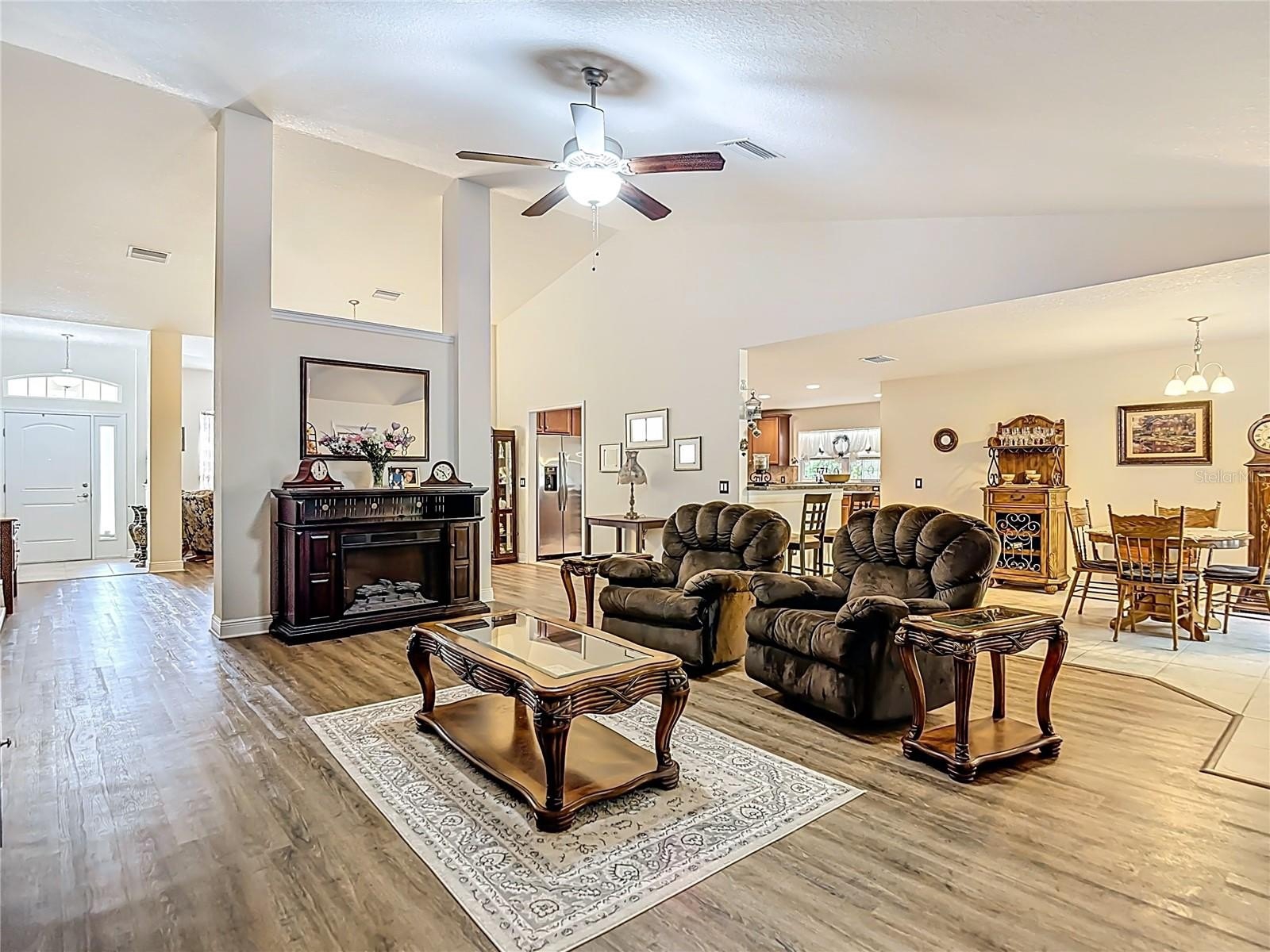 Welcome to this beautiful 4-bedroom, 3-bath home built in 2016, offering both privacy and impressive curb appeal. Modern amenities and spacious living areas make this residence a perfect blend of comfort and style. The heart of the home is the huge kitchen, featuring a large center island that’s perfect for meal prep or casual dining. Enjoy cooking with brand- stainless-steel appliances with a new microwave, lots of counter space and ample cabinetry for storage. Entertain guests or relax with family in the expansive living room and sitting room/dining room combo, highlighted by elegant decorative columns that add a touch of sophistication to the open-concept design. Retreat to the enormous master suite with tray ceilings, which is spacious enough to accommodate a comfortable sitting area and boasts dual generous walk-in closets. The master bath is designed for relaxation, featuring dual vanities, a soaking tub, and a separate walk-in shower for ultimate convenience and luxury. The three additional bedrooms are all roomy in size and include their own walk-in closets, providing plenty of storage and comfort for family members or guests. Two additional full bathrooms ensure everyone has ample space and privacy. Step out back to a massive lanai with 4 pergola screen-enclosed area and an additional covered pergola all with lighting, perfect for year-round enjoyment and entertainment. Overlooking a tranquil greenbelt, this space offers peaceful views and a retreat-like atmosphere right at home. Recent updates and features include Luxury Vinyl flooring throughout most of the home, tile windowsills, new light and outlet plates, pull down attic with extra flooring for additional storage rain barrel, French drains, Fig and orange trees, 3’ wiring fence, and sprinklers. LOW HOA fees. Lots of shopping and favorite local dining options nearby. It is conveniently located near Homosassa Springs, Citrus County’s Nature Coast and close to the Gulf to enjoy fishing, boating, Kayaking and so much more. Optional membership at the Sugarmill Woods Country Club offers a variety of amenities, including two golf courses, tennis courts, pickleball courts, a gym, a Jr Olympic-sized swimming pool, a tiki bar, and a restaurant. Easy access to the Suncoast parkway for quick access to the airport, Tampa, Clearwater and St. Pete Beaches (Ranked in the top 5 Beaches in the US), also close to the famous Tarpon Springs Sponge Docks. Enjoy everything Tampa Bay has to offer from the new Downtown Riverwalk, TOP US BEACHES, boating, fishing, golfing, cultural entertainment, and museums...and of course beautiful year-round weather!