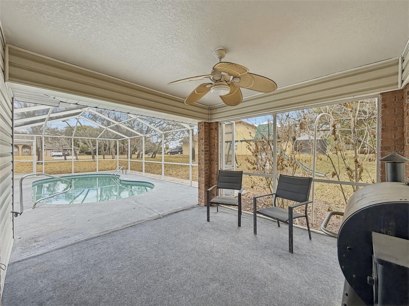 The main level features a huge eat-in kitchen complete with a breakfast bar, full appliance package, and large pantry, plus an inside utility room for added convenience. The inviting family room includes a built-in bar and half bath, making it perfect for entertaining guests. Step outside to your screened, heated pool overlooking lush, mature landscaping that creates a private, peaceful setting. Additional highlights include two new AC systems and an irrigation system to keep the grounds looking their best. Ideally located close to the Suncoast Parkway, this home offers easy access to Tampa, the International Airport, shopping, dining, and more. This exceptional property combines space, function, and location—don’t miss the opportunity to make it yours!
