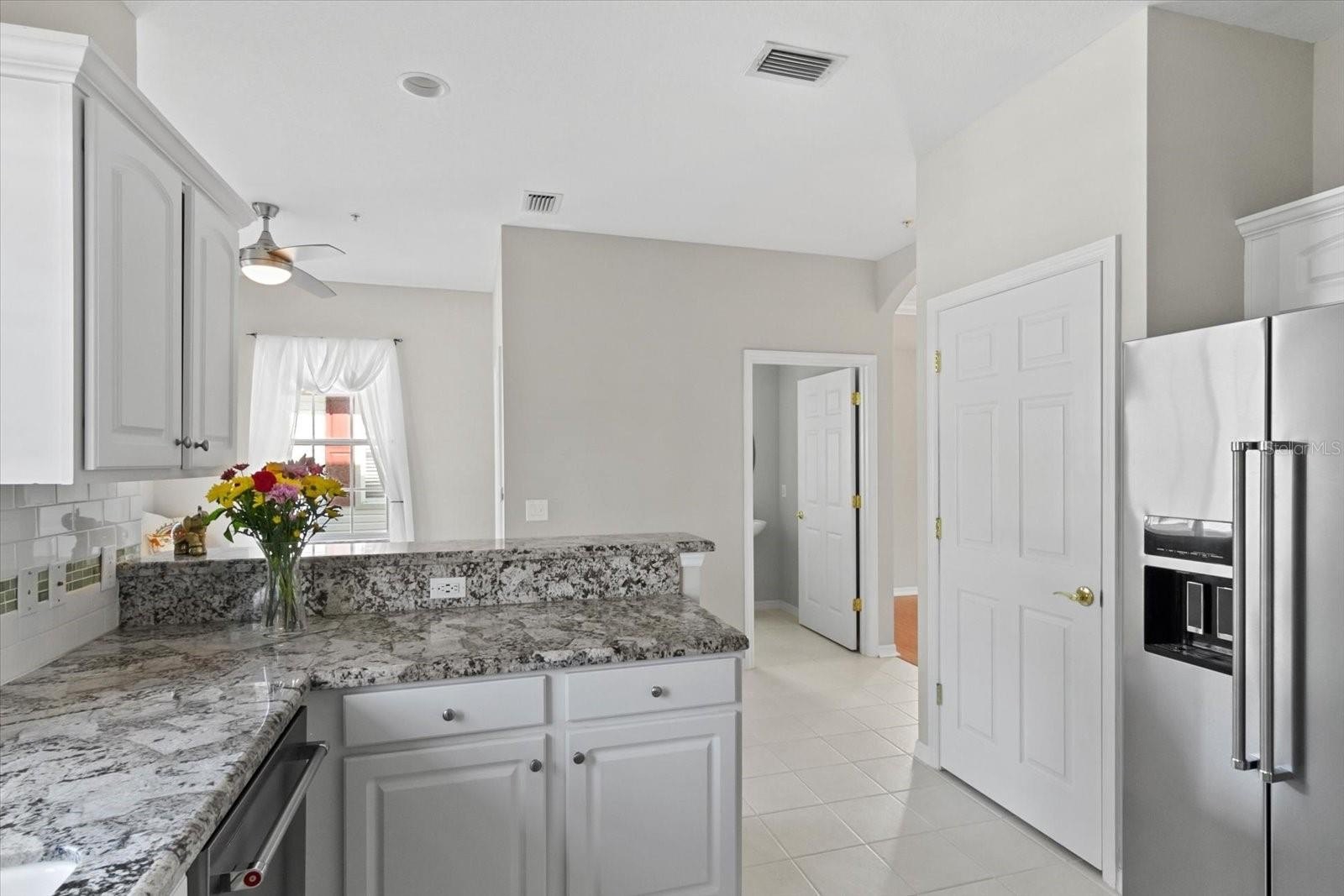 The second level includes a spacious great room with upgraded bamboo-style flooring for easy maintenance. The kitchen features elevated cabinets, a breakfast bar, an eat-in area, newer stainless-steel appliances, custom benches, and a backsplash. A half bath is conveniently located nearby.
