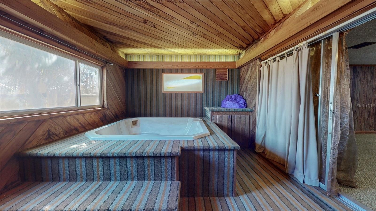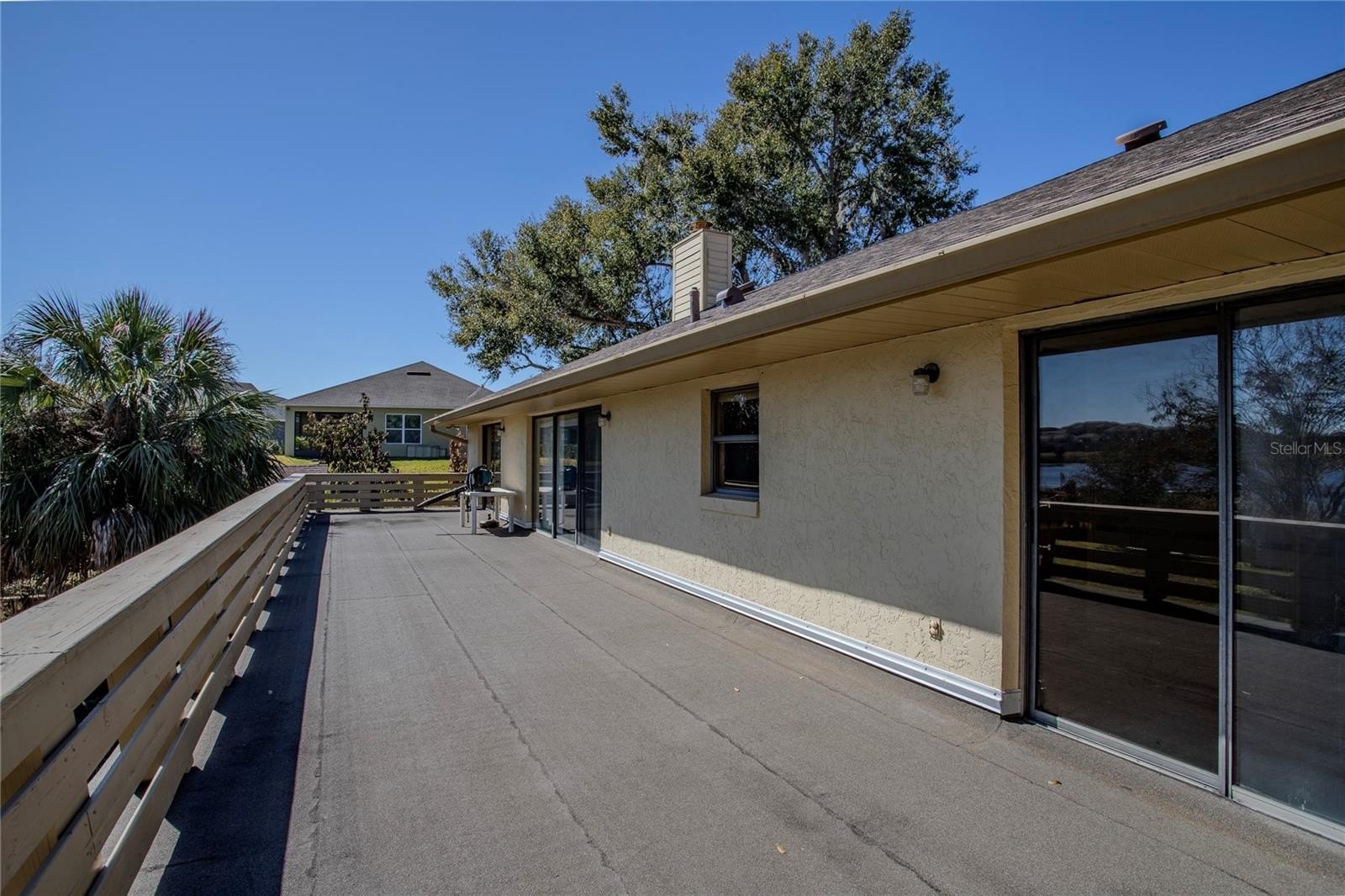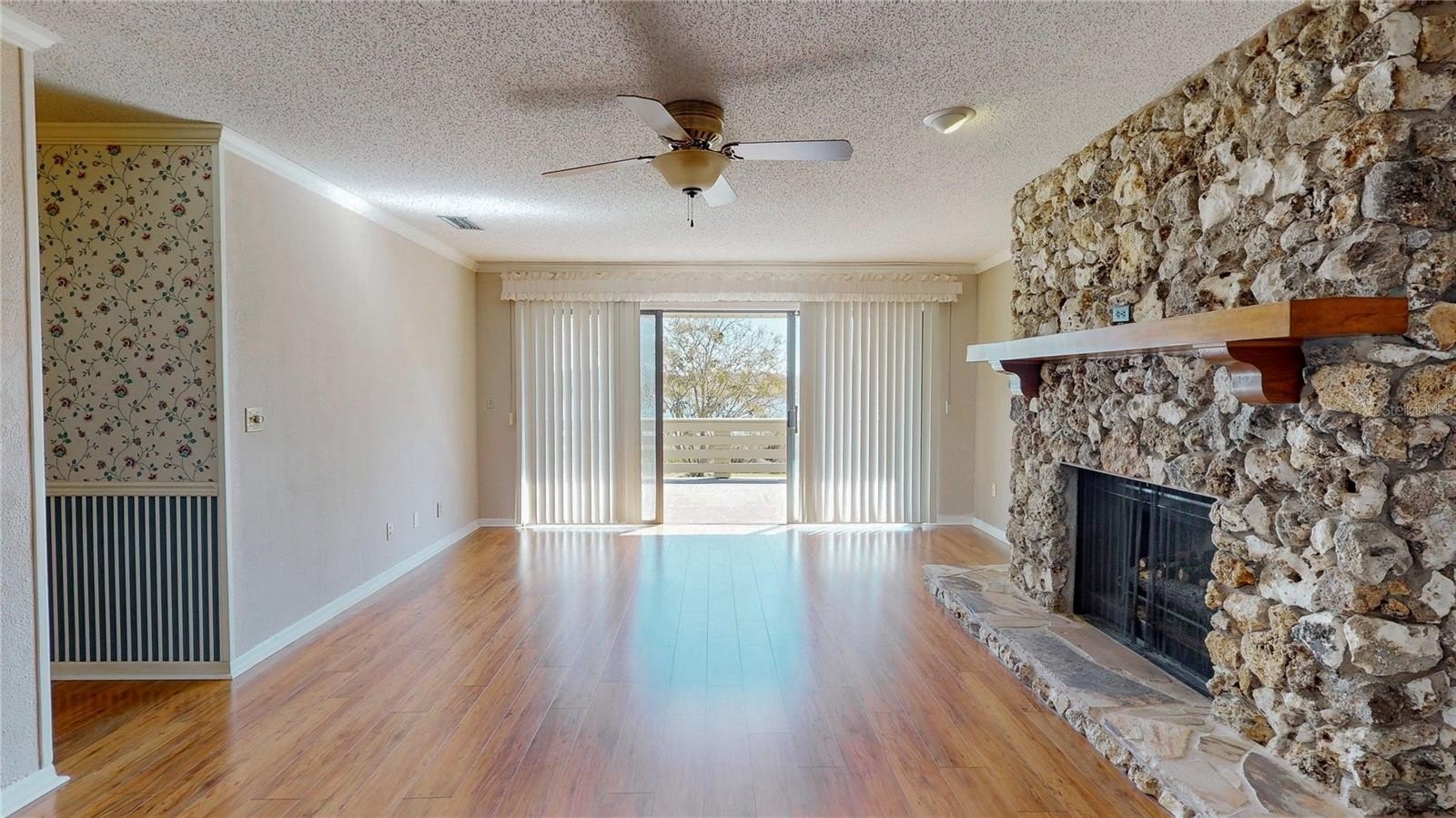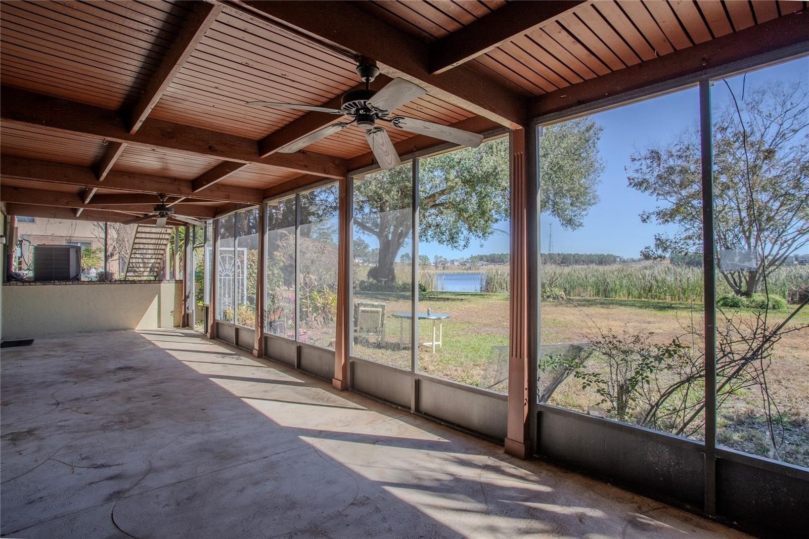 One or more photo(s) has been virtually staged. Waterfront living meets flexible space! Set along the gradual shoreline of spring-fed Lake Hermosa. Built in 1979, this 3-bedroom, 4-bath home features a unique layout with the entire main house located upstairs, including the primary living areas and all bedrooms. Approximately 2,580 sq ft is on the upper level, plus an additional 1,219 sq ft in the finished, walk-out basement.Upstairs, enjoy a warm, inviting living space anchored by a wood-burning fireplace and crown molding throughout. The bonus room can flex as an office, hobby room, or extra living area. The bedroom wing is positioned away from the main gathering spaces for added separation, and a full bathroom off the laundry room adds everyday convenience.Step outside to the showstopper: a full-length rear balcony spanning the back of the home and overlooking Lake Hermosa - the perfect spot to take in the view. Downstairs, the finished basement is designed for entertaining and possibilities, offering a large great room with a wet bar, a full bathroom, and a separate room with its own outdoor entrance. There’s also a jetted hot tub in its own room and a screened porch area, creating multiple spaces to relax and unwind. With the walk-out access and existing bath, the lower level offers strong potential for a private suite-style setup or extended living configuration (buyer to verify any intended use and requirements).This house even has an RV hookup near its oversized driveway!Additional highlights include a newer roof (2024), 1 newer HVAC (2 units), public water, septic, no HOA, and an oversized side-entry 2-car garage. Conveniently located near US Hwy 441, close to downtown Eustis and Tavares, and approximately an hour from Disney.