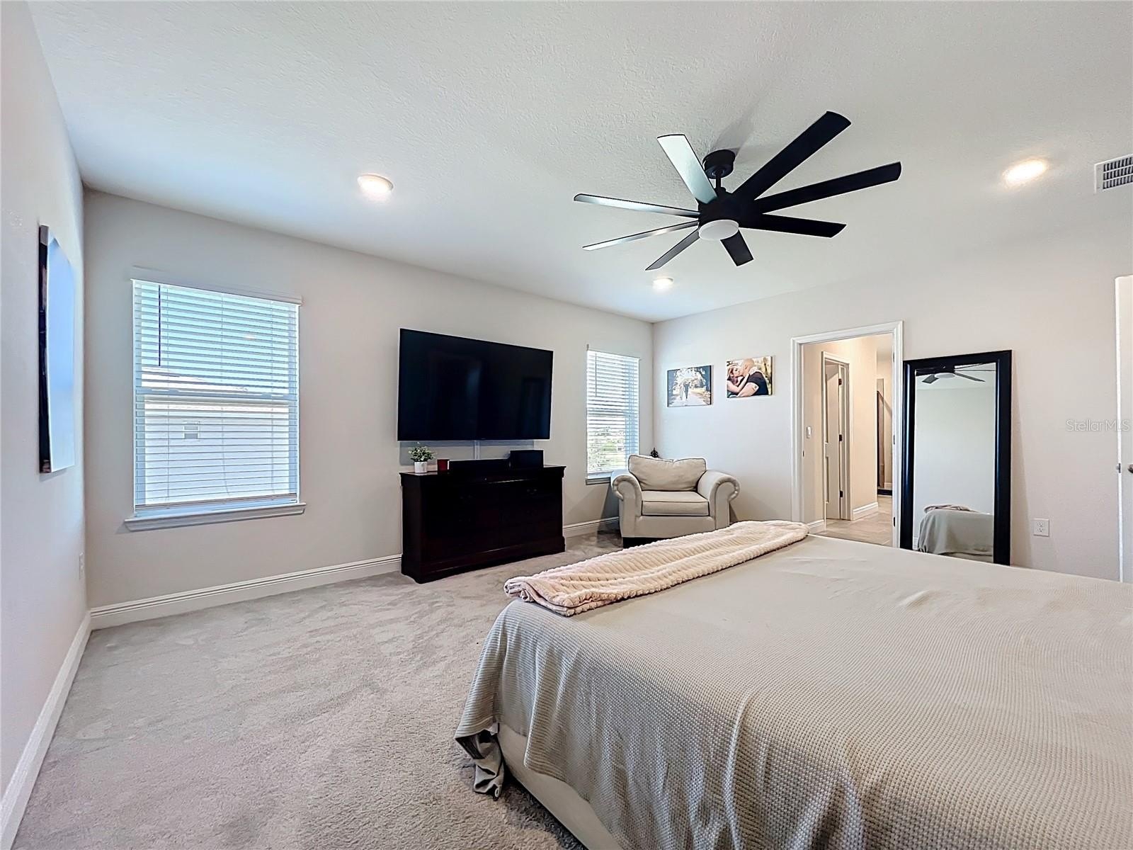 The master suite is a private oasis that offers a peaceful retreat from the hustle and bustle of daily life. This luxurious sanctuary features a spacious bedroom with a sitting area, his and hers walk-in closets, and a spa-like en-suite bathroom complete with a soaking tub, dual vanities, walk-in shower and water closet.