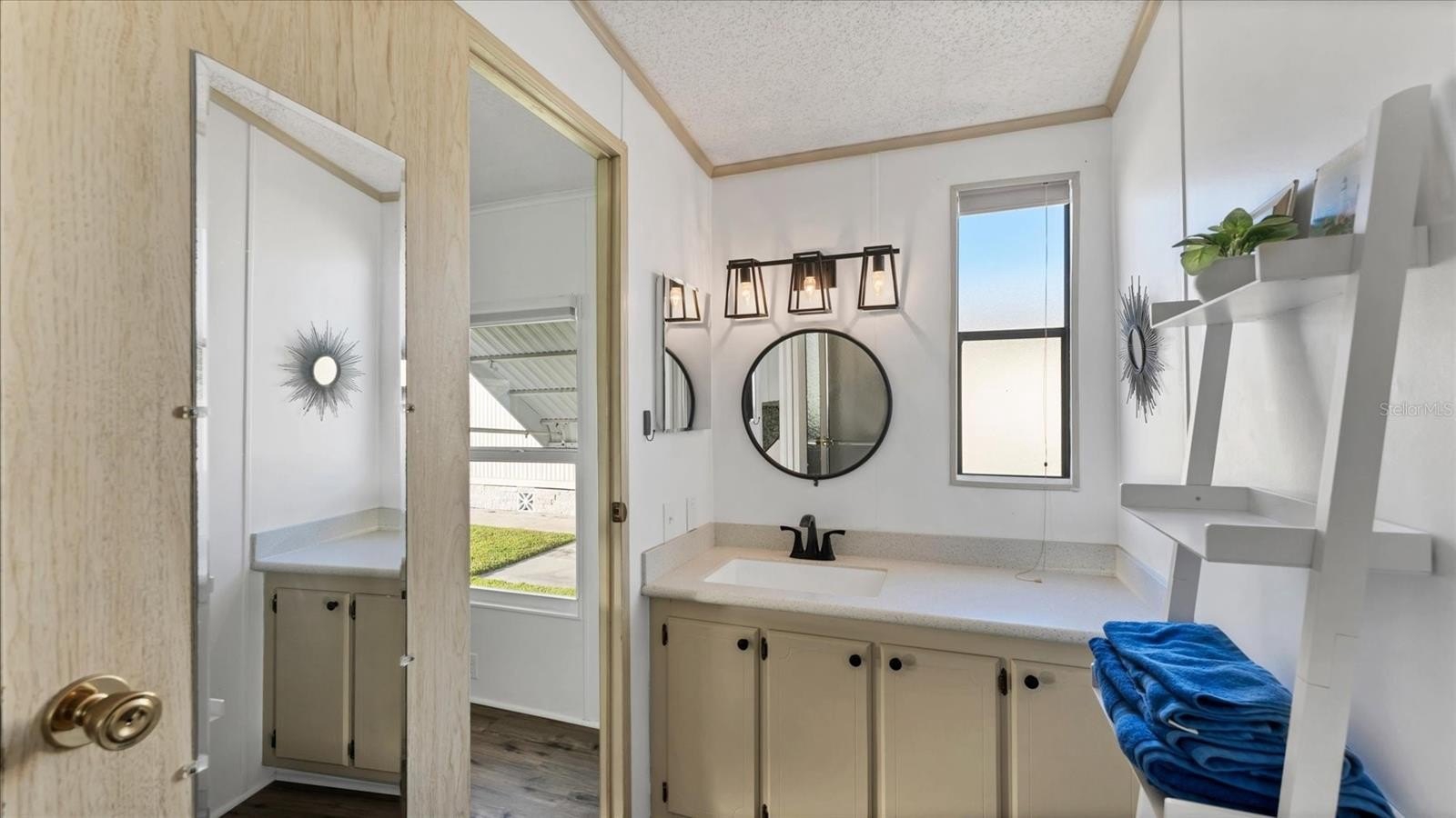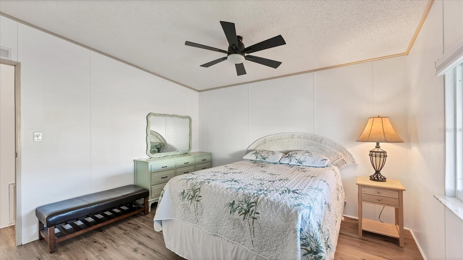 Welcome to Tidevue Estates, a desirable 55+ land-owned community! This move-in ready, fully furnished home offers comfort, style, and Florida charm. Rarely avaiable this home has a ONE CAR GARAGE which can also be used as a workshop or art studio. Featuring laminate flooring throughout, updated windows, and ceiling fans with lights in every room, this bright and airy home truly shines. The spacious Florida room invites natural light and is perfect for relaxing or entertaining. Enjoy a welcoming foyer entry with space for an office. The kitchen features Corian countertops, neutral cabinetry, and a skylight for extra brightness. The dining room includes built-in storage, and the living room offers a glass slider leading to the open front porch plus an electric fireplace for cozy ambiance. The primary bedroom features a walk-in closet and updated ensuite bathroom with a walk-in shower. Exterior highlights include a garage, double carport, and beautiful curb appeal. This home blends practicality with modern updates — bring your toothbrush and start living the Florida lifestyle today! Low HOA of only $600 annually. Pets are not permitted. Plenty of activities to keep you busy in this community. Take a water aerobics class in the solar-heated community pool or work on your tan. The community library has free WI-FI connection. Updated fitness center. Meet friends and make new ones for a game of indoor pickleball, bocce ball, or shuffleboard. Join the Golf League. Take a bike or golf cart ride to Veteran's Park to watch the wildlife and sunset. Ellenton Premium Outlet Mall, restaurants, and medical facilities are just minutes away. Easy access to I-75. Not to mention a short drive to our beautiful Gulf Beaches.