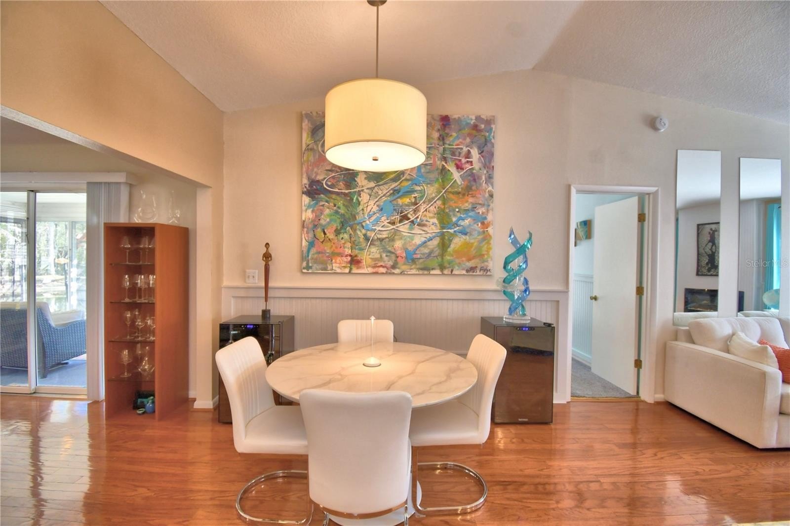 Outside, the experience continues. A brand-new screened lanai connects the garage to the enclosed sunroom, creating a smooth transition between spaces. The newly upgraded, stylish driveway accented with attractive features lighting along both sides and the walkways that surround, guides you home each evening.