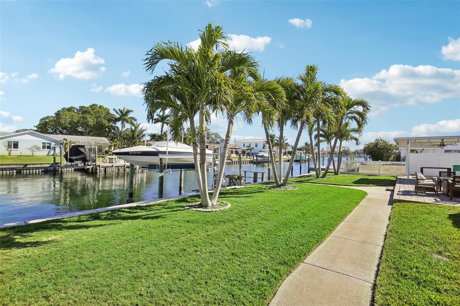 Welcome to 3963 14th St NE in St. Petersburg, a stunning, fully remodeled waterfront home in the highly sought-after boating community of Patrician Point. Tucked away on a quiet cul-de-sac, this move-in ready 3-bedroom, 2-bath residence offers 2,085 square feet of beautifully updated living space and 3,006 total square feet, blending refined indoor comfort with true Florida outdoor living. A newly constructed 3-car garage added in 2021 provides exceptional storage for vehicles, golf carts, and all your water toys. Inside, the open split-bedroom floor plan is enhanced by tile flooring throughout, abundant natural light, and seamless flow from the main living areas to the waterfront backdrop. The updated kitchen showcases striking cabinetry and granite countertops, opening effortlessly into the family room where tranquil water views set the tone for everyday living. The fully remodeled primary suite is a true showpiece, featuring a spacious bedroom retreat, an oversized custom walk-in closet, and a beautifully redesigned spa-inspired bath with modern finishes. Step outside to your backyard oasis featuring a covered patio, full outdoor kitchen, and gas fireplace—designed for year-round entertaining. With 80 feet of water frontage, a private dock, and a 7,000-pound boat lift equipped with water and electric, boating access is effortless and ready to enjoy. Just minutes from vibrant downtown St. Petersburg, dining, and waterfront parks, this exceptional property delivers the ultimate coastal lifestyle without compromise.