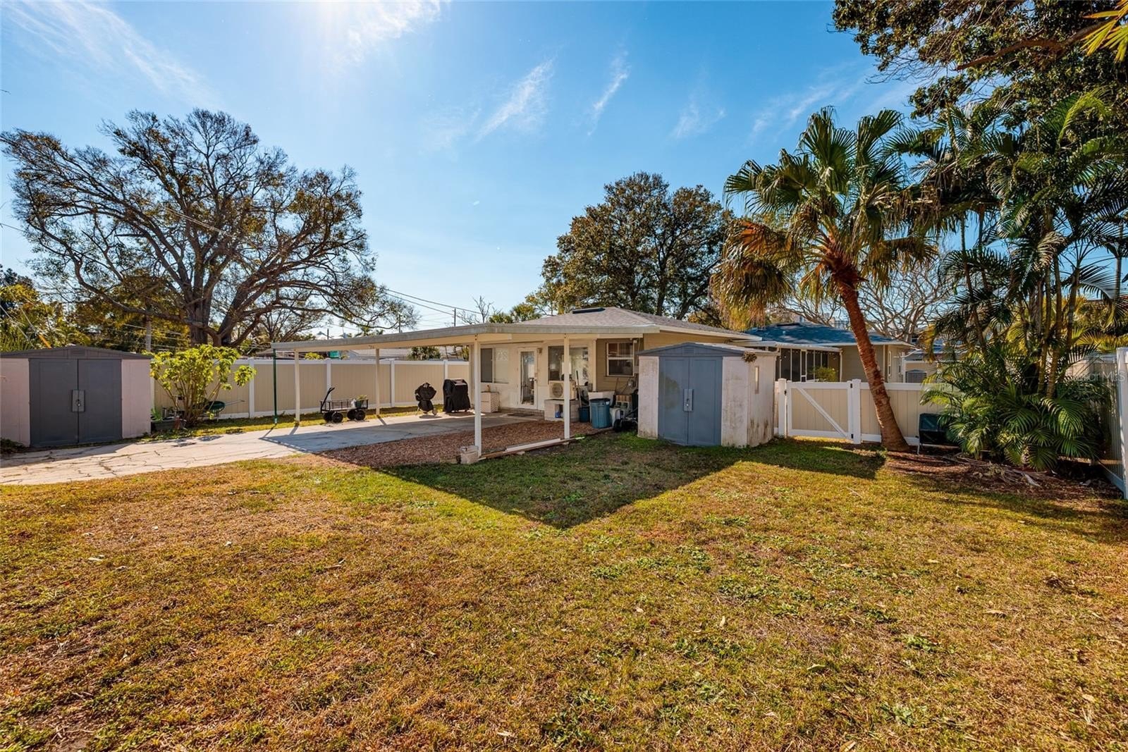 The Florida dream is THIS picture perfect home nestled in the heart of South Pasadena! This block home has all the Florida charm with all of the sought after upgrades to enjoy! This is one you do not want to miss! The large living room has sparkling terrazzo which continues to the spacious primary and second bedroom. Both bathrooms in this home have been beautifully remodeled. The fully remodeled kitchen showcases custom cabinetry, quartz countertops , stainless steel appliances and a bonus coffee bar area! The dining room has lots of natural light with all the windows. The covered screened in porch is the perfect spot for entertaining and grilling out. The bonus room is spacious with laundry area and bathroom. The family room is an awesome added space to this home leaving so many options for use. The huge backyard is completely fenced in with upgraded PVC fencing featuring a double gate for alley access. There is covered parking also in the back of the home when entering from the alley. This home has been meticulously maintained with no detail missed. Located minutes from the beaches, downtown St.Petersburg, restaurants and shopping. Bring your bike and your grill and enjoy Florida living at its finest! A MUST SEE TODAY!