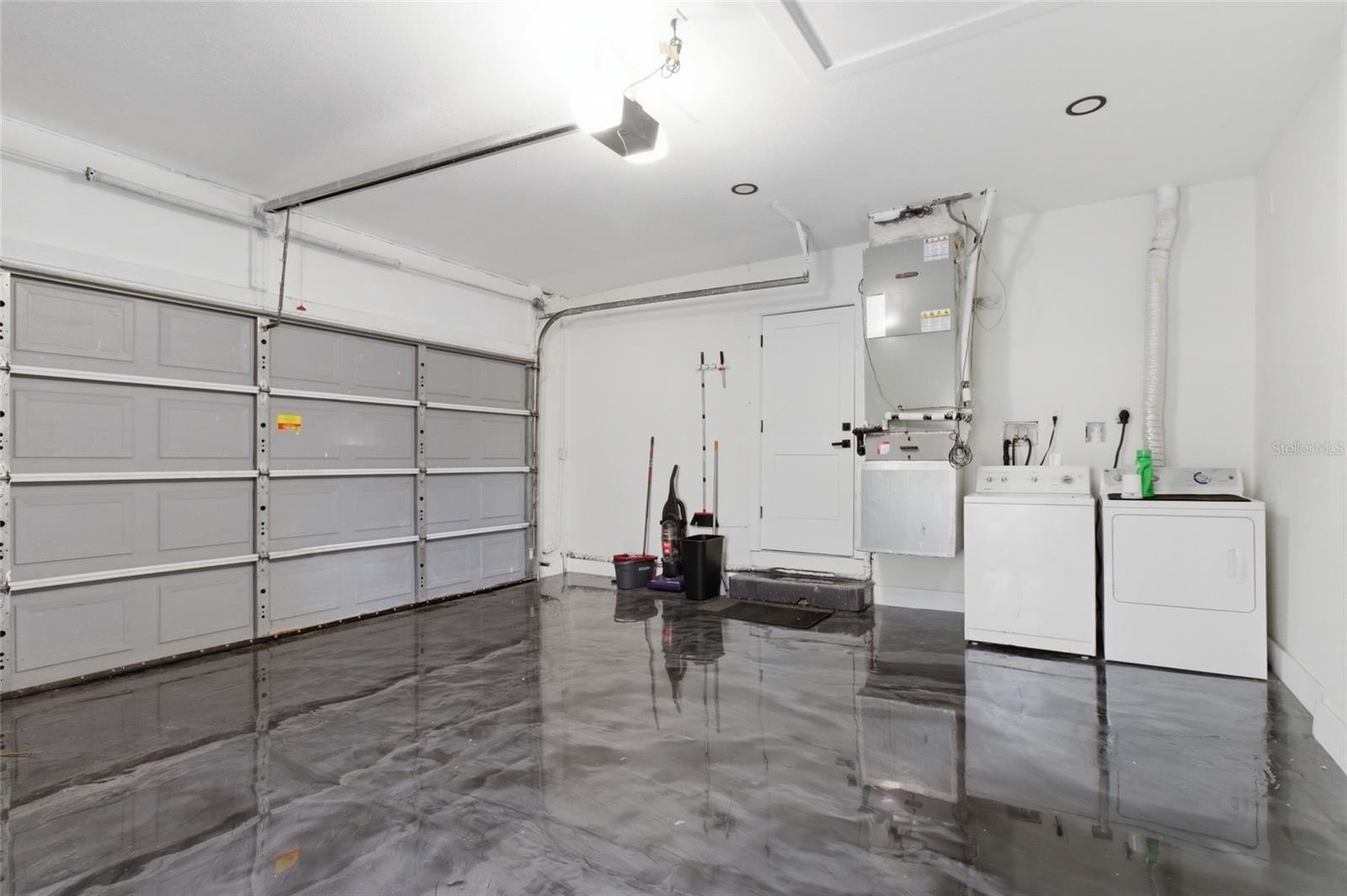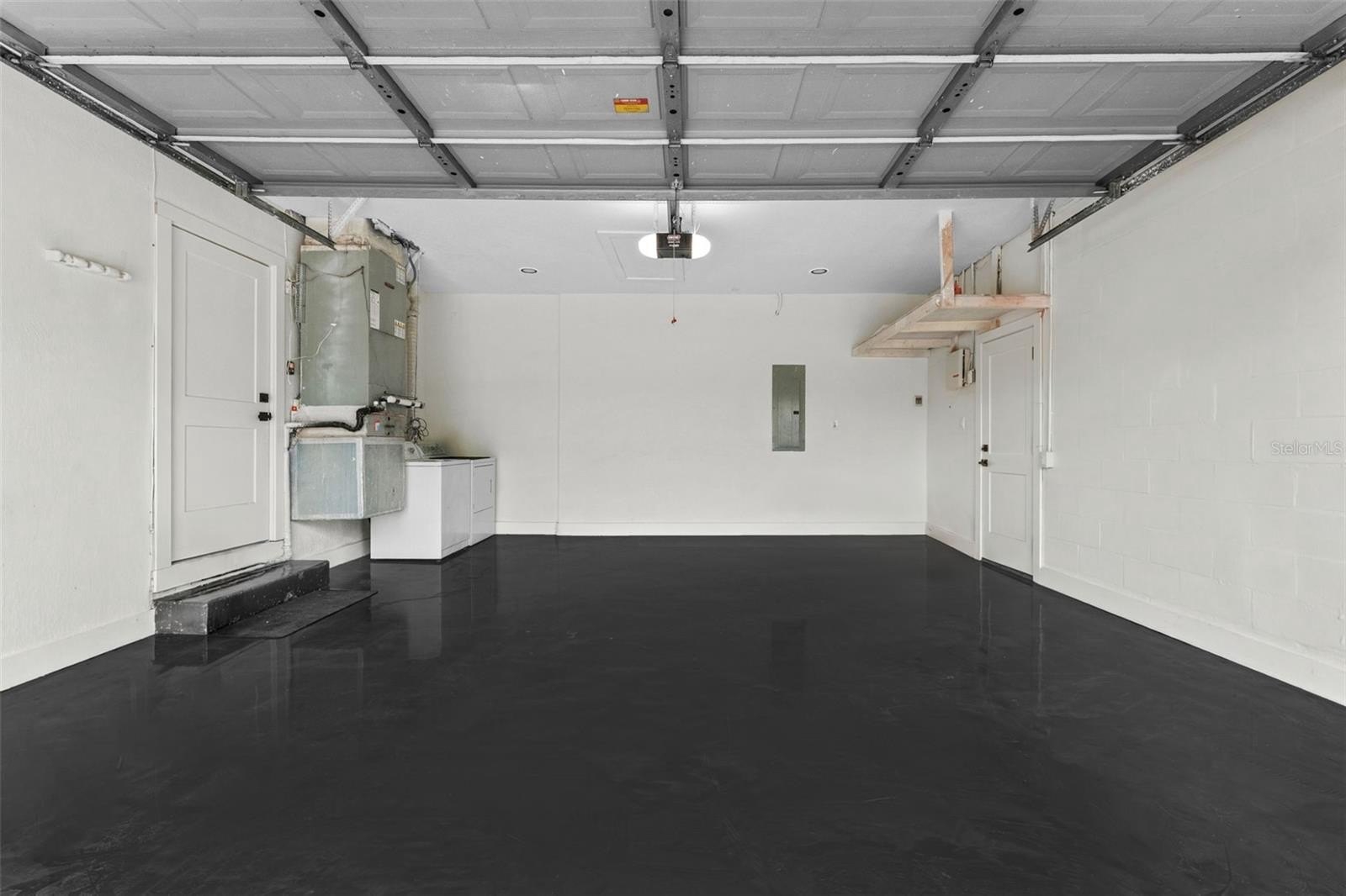 Recent improvements include updated HVAC (2020), tankless gas water heater (2014), electrical enhancements, reinforced cement board walls, refreshed interior finishes and baseboards, fresh interior and exterior paint, and a protective elastomeric roof coating. A spacious two-car garage with finished flooring provides ample storage and everyday functionality..