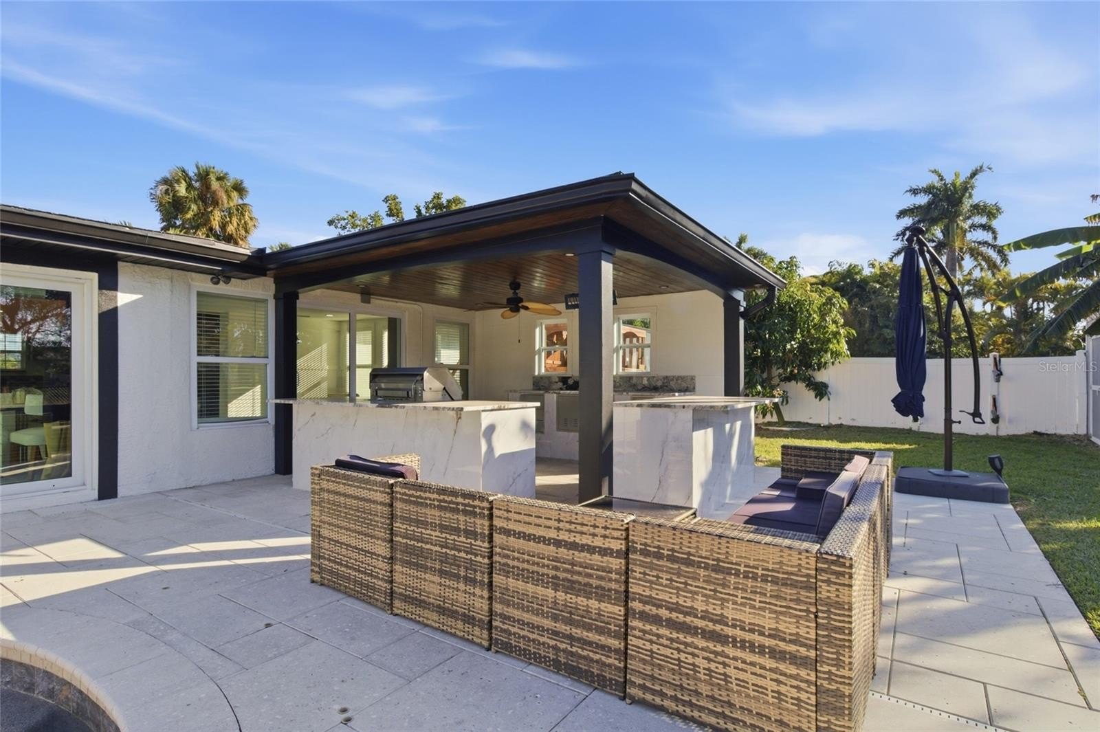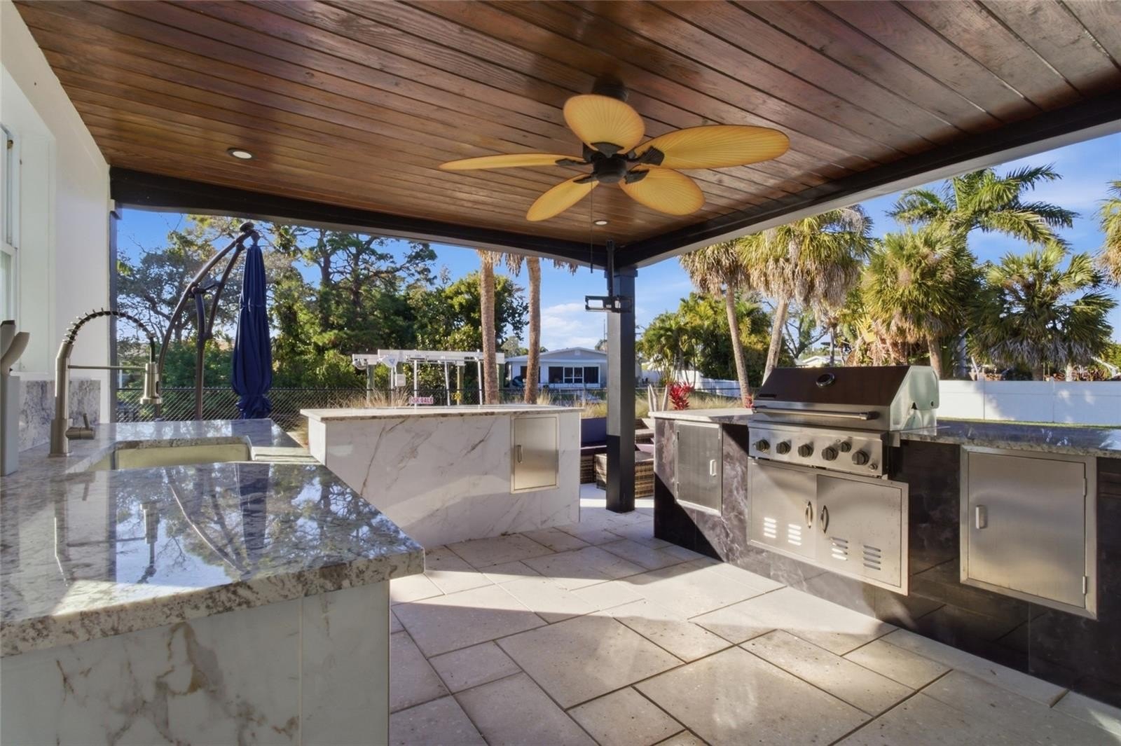 Step outside to your private waterfront oasis, where a covered outdoor kitchen, sparkling pool and spa, lush tropical landscaping, and a newer dock with boat lift create an exceptional backdrop for entertaining or embracing the boating lifestyle. Canal access leads to Tampa Bay and open waters beyond.