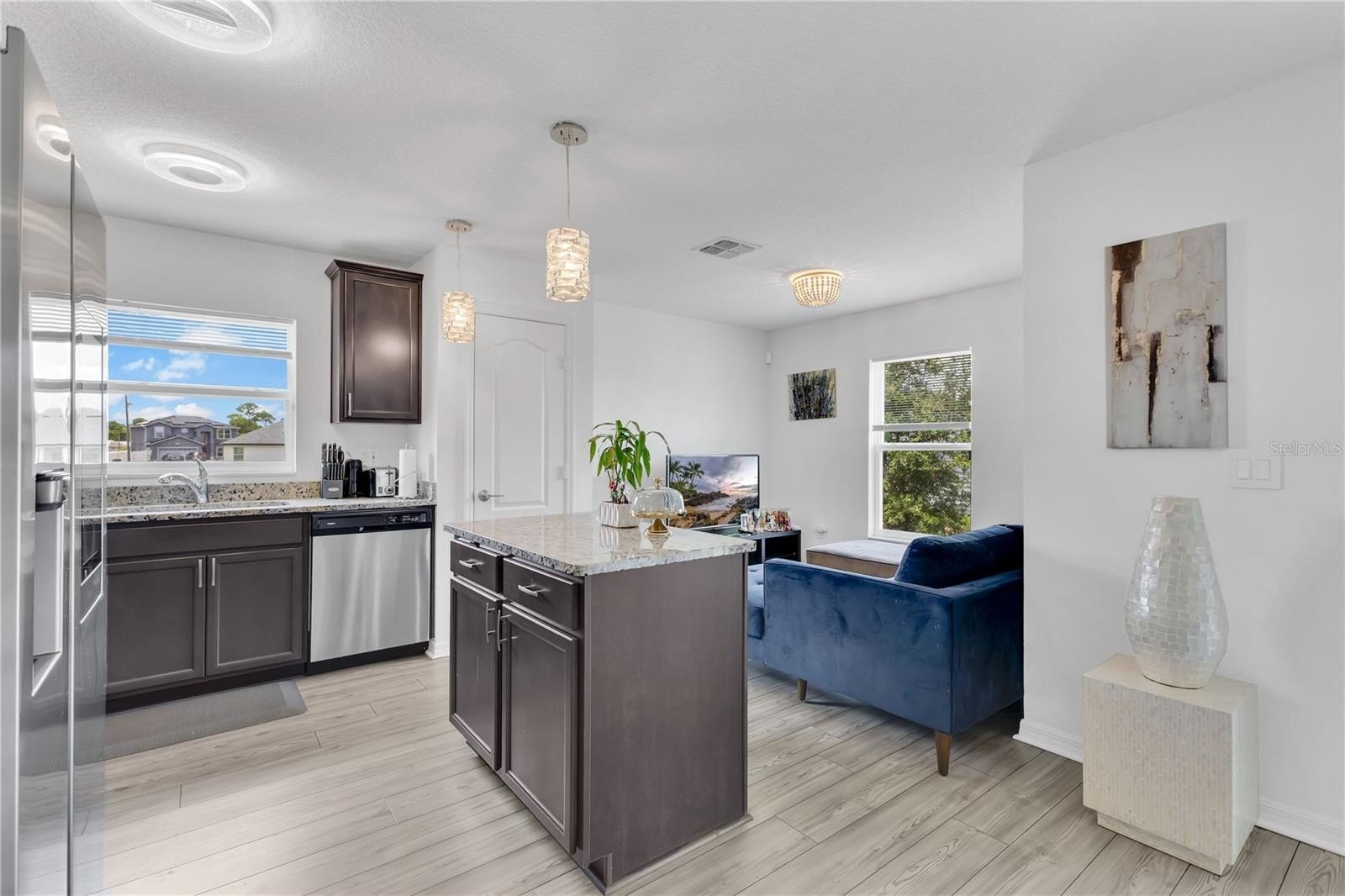Short Sale. Short Sale. Welcome Home! This move-in ready, single-story home offers the perfect blend of modern design, comfort, and efficiency. Built in 2022, this energy-efficient 3-bedroom, 2-bath home showcases a spacious open-concept layout filled with natural light and contemporary finishes. Enjoy peace of mind with builder warranties still in place from LGI Homes. The kitchen is both stylish and functional, featuring granite countertops, stainless steel appliances, 36” upper cabinets with crown molding, and brushed nickel hardware—perfect for everyday living or entertaining. The private primary suite includes a walk-in closet and a beautifully appointed en-suite bathroom. Step outside through sliding glass doors to the covered back patio, ideal for your morning coffee or evening relaxation. Additional highlights include a two-car garage, extended driveway parking, and modern lighting fixtures throughout, a water filtration system for the entire house. Located in the amenity-rich Association of Poinciana Villages, you'll enjoy access to parks, pools including an indoor Olympic size pool, state of the art fitness center, playgrounds, sports courts, and more: definitely is a life style worth belonging to. Don’t miss the opportunity to make this well-maintained home yours—schedule a private tour today!