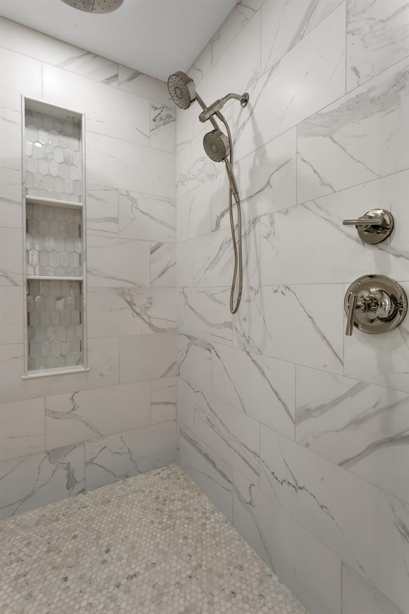 The en suite second bedroom offers privacy and style with its own walk-in closet and beautifully tiled full bath. Bedrooms 3 and 4 are generously sized and connected via a designer Jack-and-Jill bathroom. Even the laundry room is thoughtfully finished with quartz counters, custom cabinetry, a farmhouse sink, and elegant tilework.