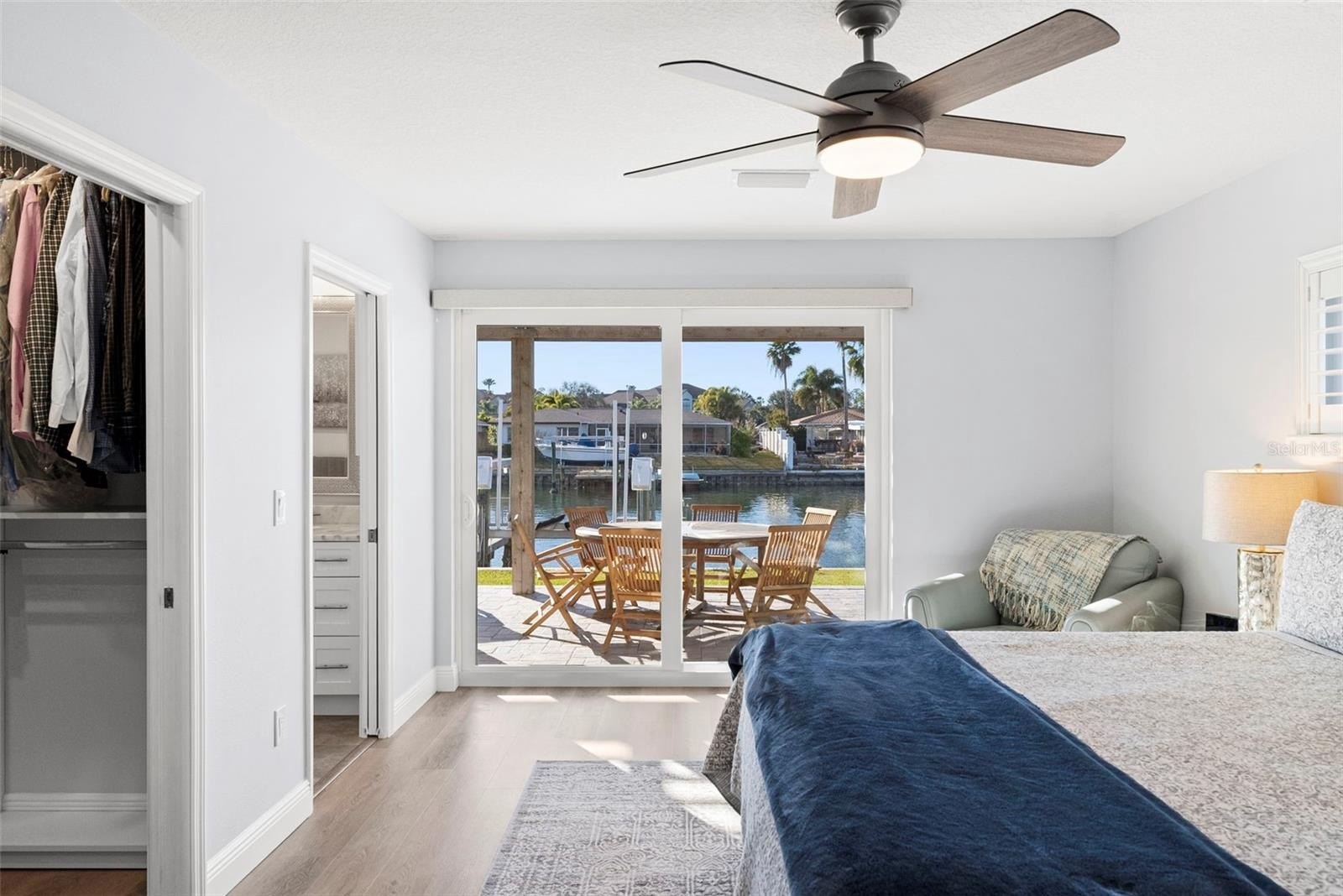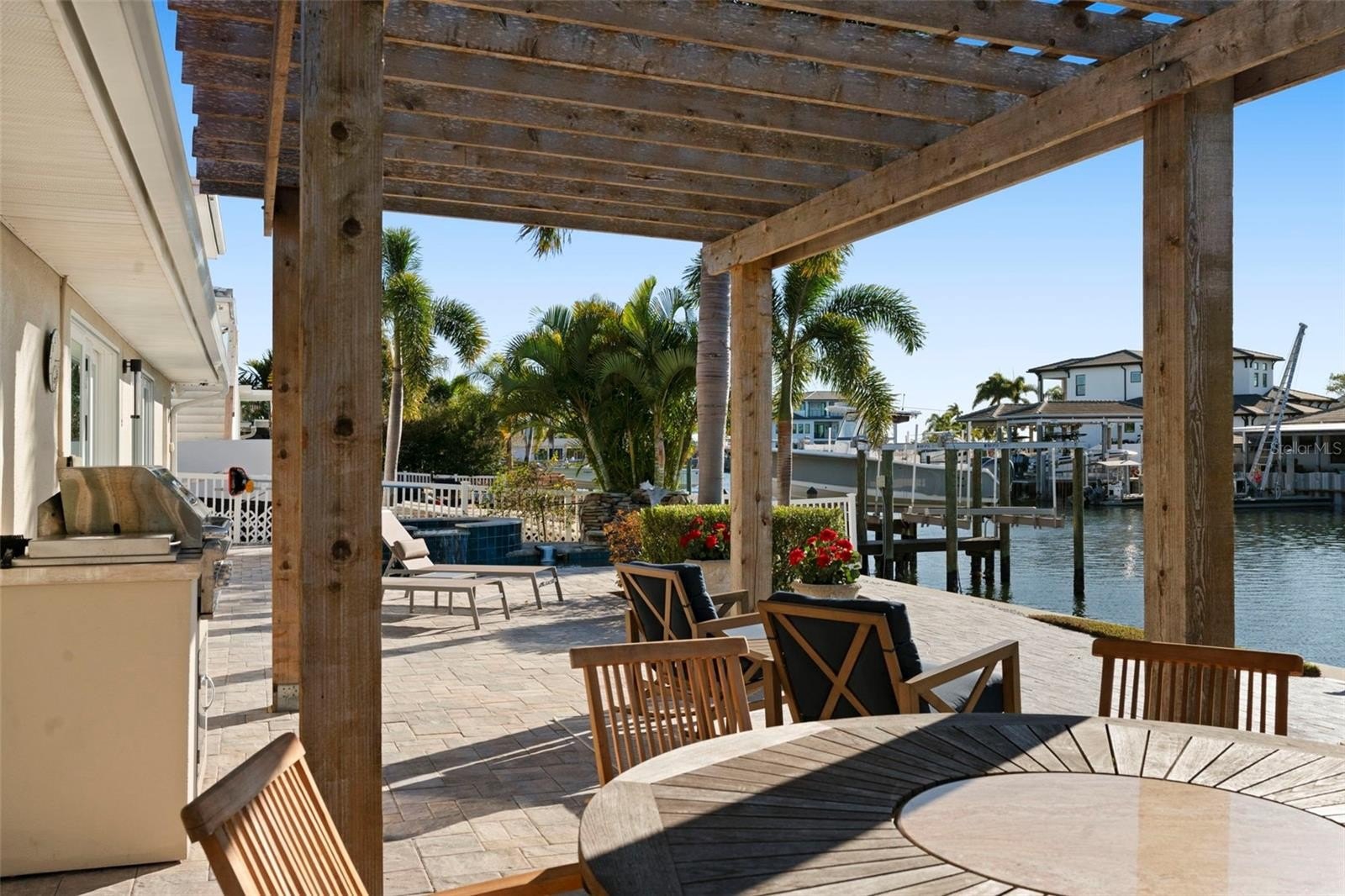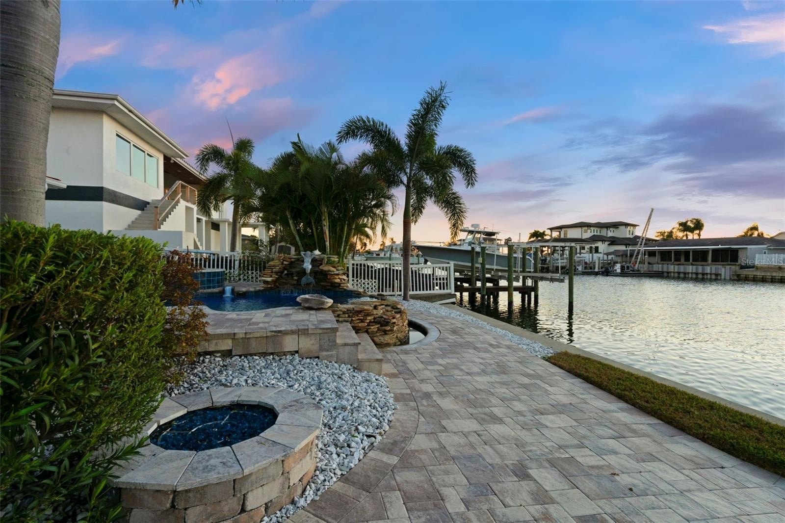 Set on one of the widest saltwater canals in Dana Shores with direct boating access to Old Tampa Bay, this exceptional waterfront residence offers approximately 80 FT of water frontage on a 121 FT deep lot, west-facing for breathtaking sunset views. Thoughtfully renovated down to the studs in 2020 by long-term owners (not a flip), with additional improvements completed in 2025, this home blends luxury, function, and peace of mind. The open floor plan showcases a custom kitchen with abundant cabinetry, granite countertops, all new stainless steel appliances, propane gas range, dry bar, and oversized center island with built-in microwave and wine refrigerator. The kitchen flows seamlessly into the spacious family room featuring an electric built-in fireplace and custom LED-lit entertainment cabinetry. Dual oversized 3-panel impact sliders with smart shades create an indoor-outdoor feel, opening to a private waterfront oasis including pergola entertaining space and expansive fenced yard ideal for pets and recreation.