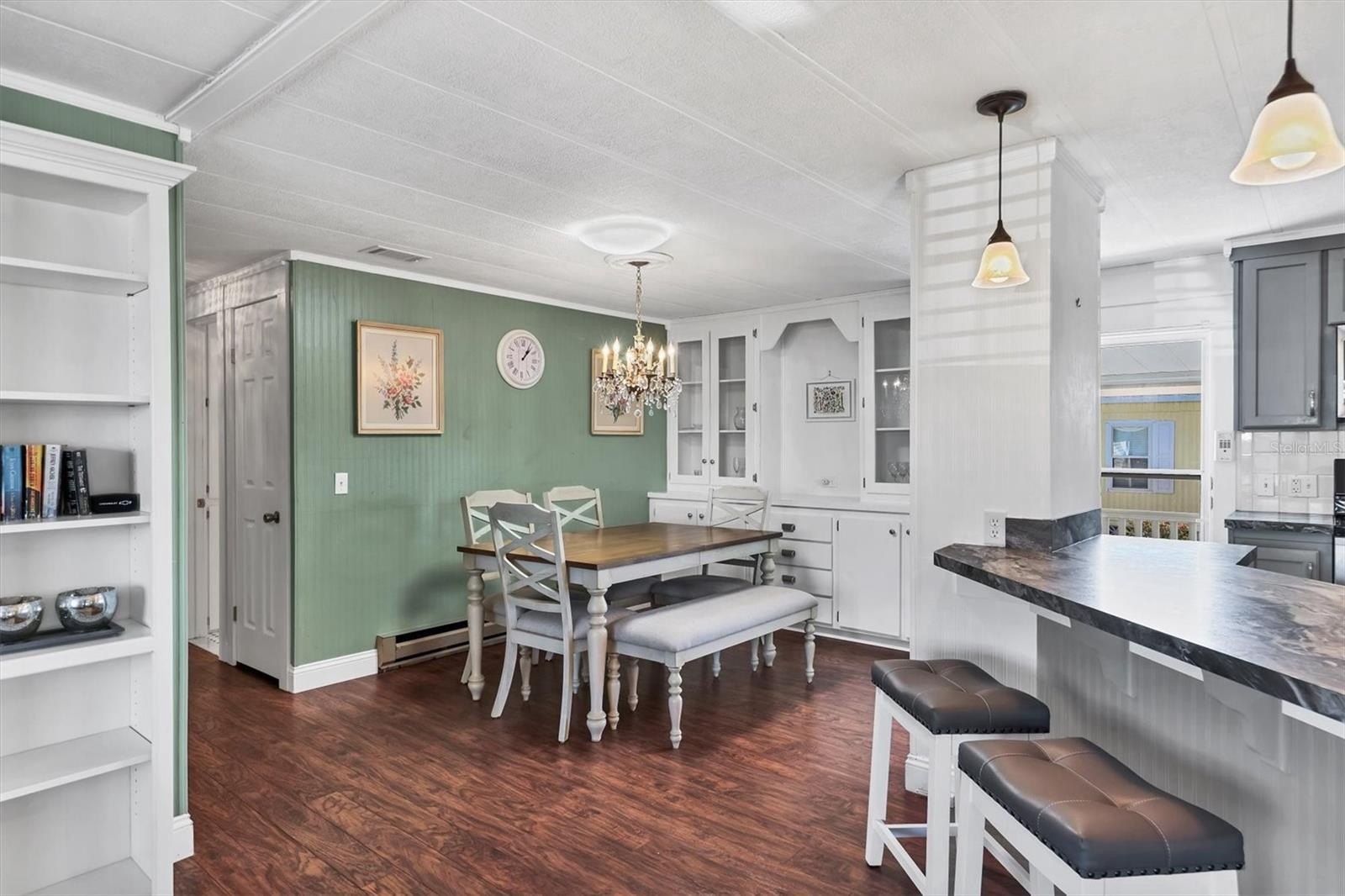 MOVE-IN READY & LAND OWNED! Experience the ultimate Florida lifestyle in this beautifully updated, turnkey furnished home in the desirable Tidevue Estates 55+ community. This nicely appointed residence features a modern kitchen with updated cabinetry, newer appliances, and a convenient breakfast counter. The open floor plan is accented by laminate flooring throughout, leading to a sun drenched Florida room with a wall of windows—the perfect spot to relax. The dining area includes a built-in for extra storage, while the primary bedroom offers a private retreat with an en-suite bath and a classic black-and-white tiled floor with walk-in shower. The second bedroom also boasts its own en-suite with matching updated tile. Outdoor living is a breeze with an open front porch, a carport spacious enough for an outdoor living room, and a shed/workshop with laundry. Bikes are even included so you can start exploring the community immediately! Low annual HOA fees (~$600/year) and no lot rent. Pets are not permitted. Plenty of activities to keep you busy in this community. Take a water aerobics class in the solar-heated community pool or work on your tan. The community library has free WI-FI connection. Updated fitness center. Meet friends and make new ones for a game of indoor pickleball, bocce ball, or shuffleboard. Join the Golf League. Take a bike or golf cart ride to Veteran's Park to watch the wildlife and sunset. Ellenton Premium Outlet Mall, restaurants, and medical facilities are just minutes away. Easy access to I-75. Not to mention a short drive to our beautiful Gulf Beaches.