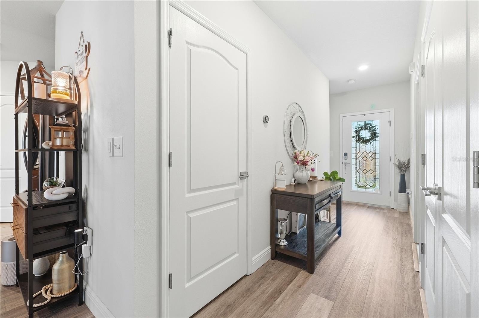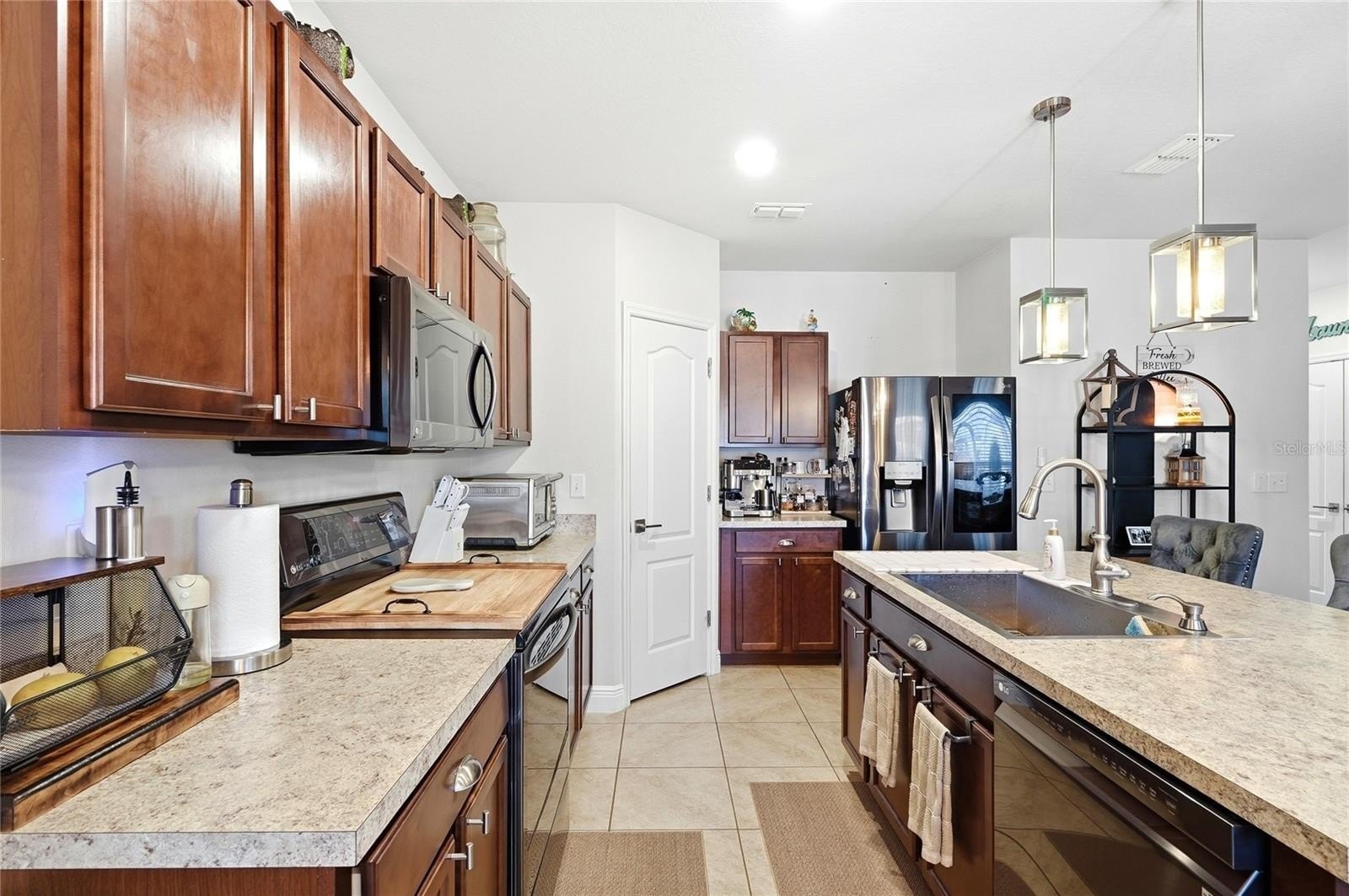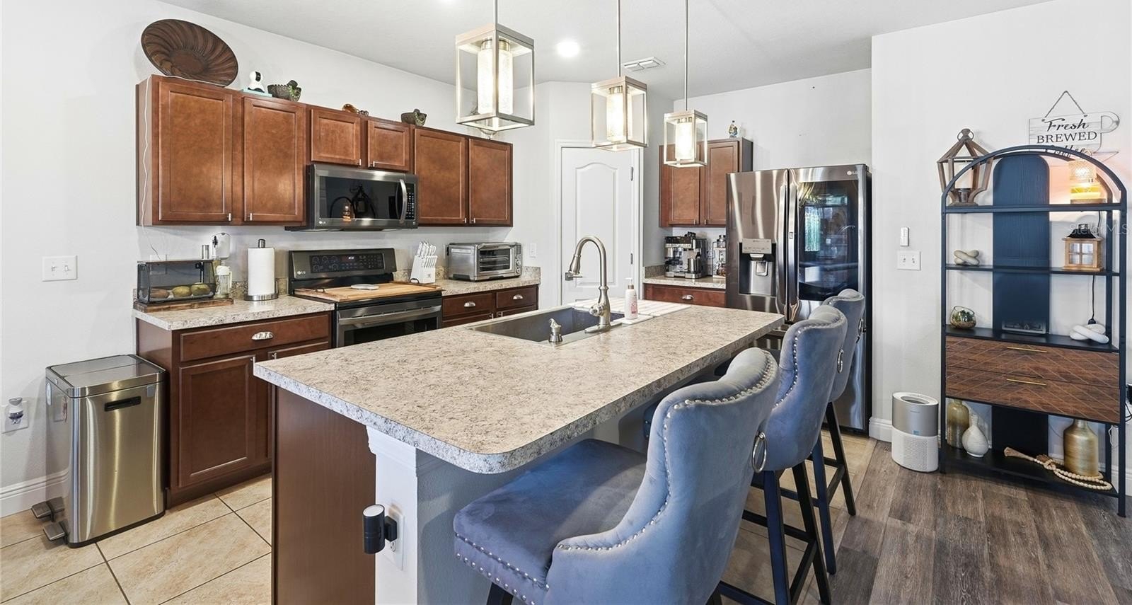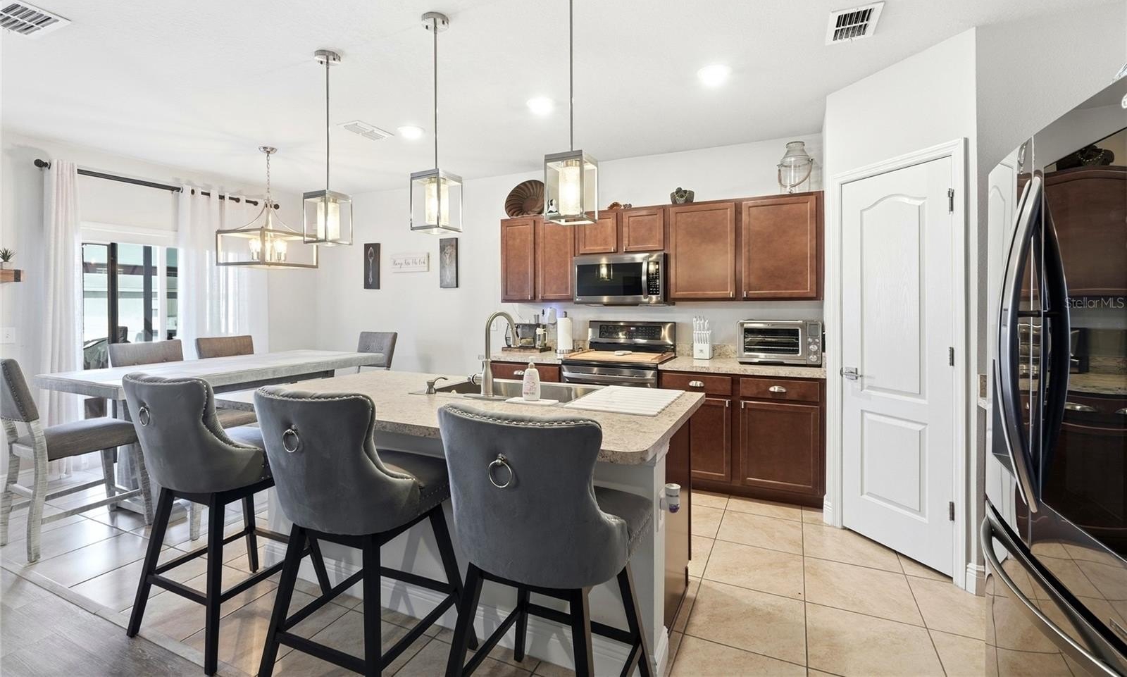 Welcome to this absolutely amazing 3 bedroom, 2 bathroom home that shows like a model home. Built in 2017 by Ryan Homes, it offers a spacious and open floor plan with countless upgrades that make it extremely attractive. The interior has beautiful luxury vinyl plank flooring that flows throughout the entire house - NO CARPET. The bright, open floor plan is enhanced by upgraded lighting and modern ceiling fans, adding a touch of sophistication and comfort. The large kitchen features an island kitchen, stainless-steel appliances and a spacious pantry.. This home is perfect for entertaining guests and undoubtably this floor plan is sure to impress visitors. The owners suite is a luxury retreat, offering a spacious walk-in closet and a luxurious bathroom with a walk-in shower, dual sinks, and a separate water closet for added privacy. The secondary bedrooms are generously sized and share second bathroom with upgraded fixtures. The covered, oversized screened lanai provides ample space for outdoor living and entertaining. The beautifully landscaped lawn and fenced yard add great curb appeal and add to the beauty of this property. This exceptional home is move-in ready and offers comfort, style, and modern features in one package. Don't miss this opportunity!