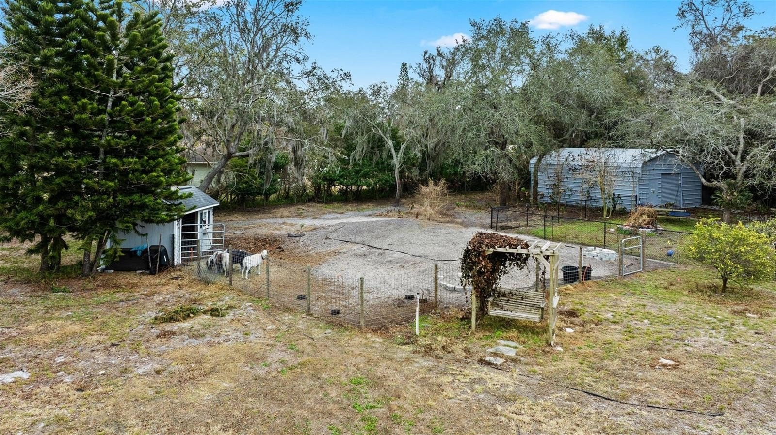 Step outside and the property truly shines. A PebbleTec saltwater pool sits beneath a screened enclosure and expansive lanai, surrounded by paver decking that creates a true outdoor retreat. Beyond the pool area, the fully usable acreage offers space for animals, hobbies, or future possibilities. Horses are welcome here, with a large barn and additional run-in shed already in place, along with fenced areas and a secondary driveway leading to the outbuilding and oversized parking areas.