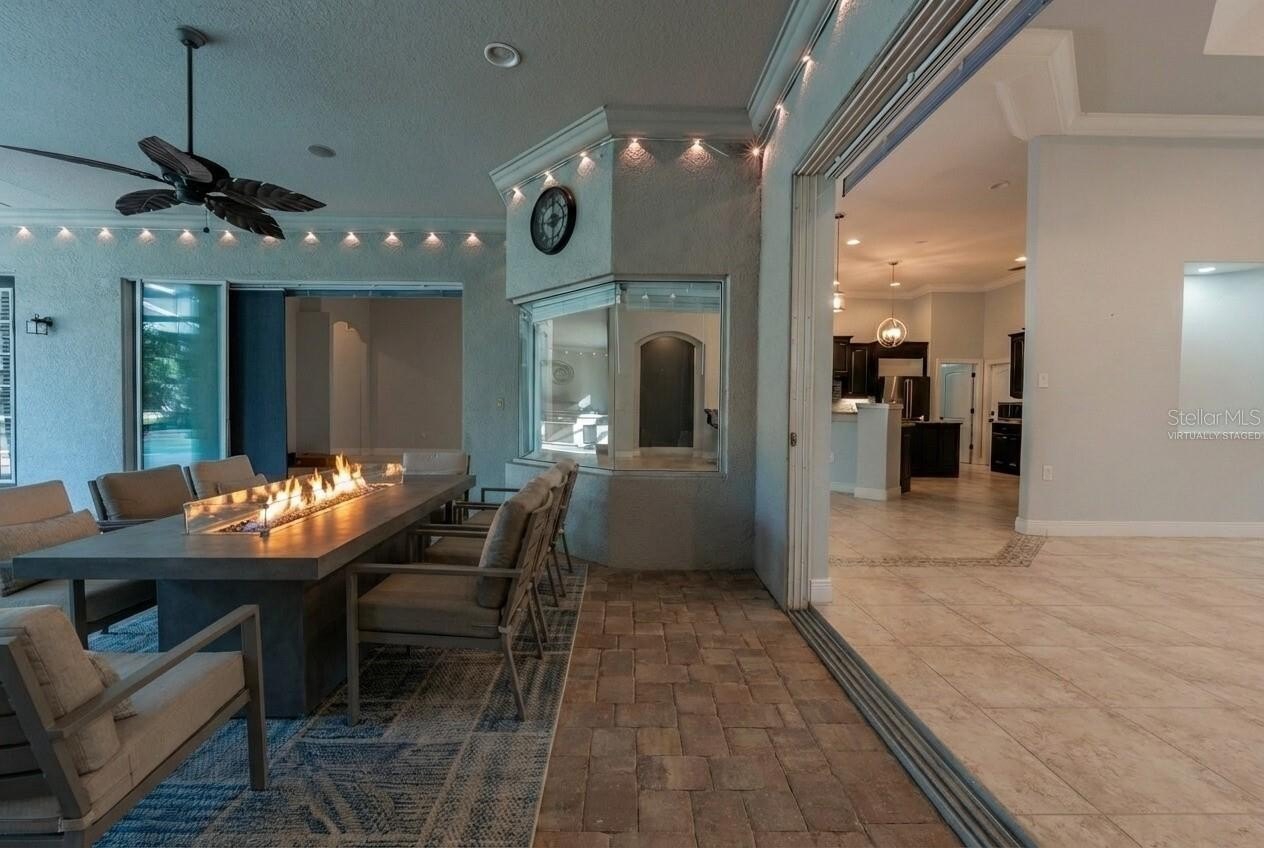 Step outside to your private resort-style retreat featuring a screened heated pool and spa, expansive paver patio, and a fully equipped summer kitchen designed for year-round Florida living and entertaining. Large sliding doors provide seamless indoor-outdoor flow, enhancing the home’s open and airy feel.