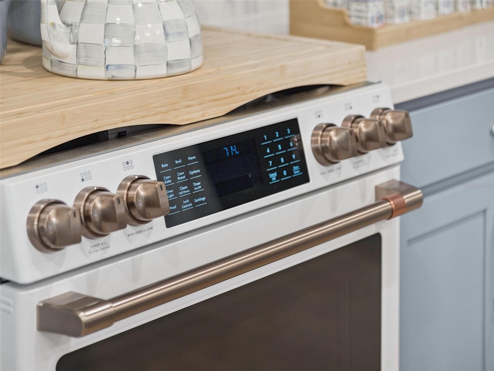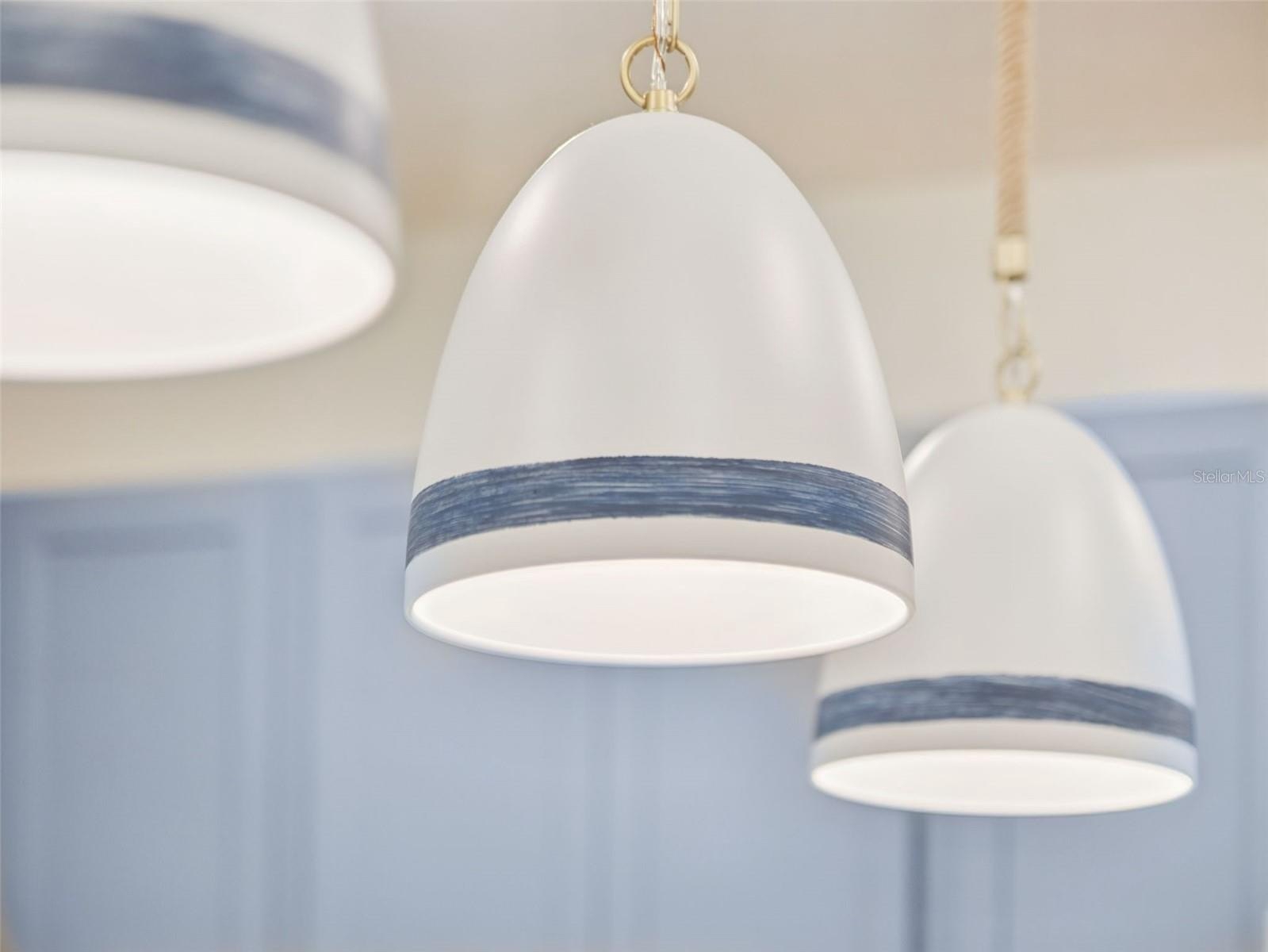 At the heart of the home is a show-stopping blue and white designer kitchen, beautifully appointed with white and gold GE Café appliances, an oversized island, elegant cabinetry, and designer lighting. It’s a statement space that feels both fresh and classic — perfect for gatherings large and small.