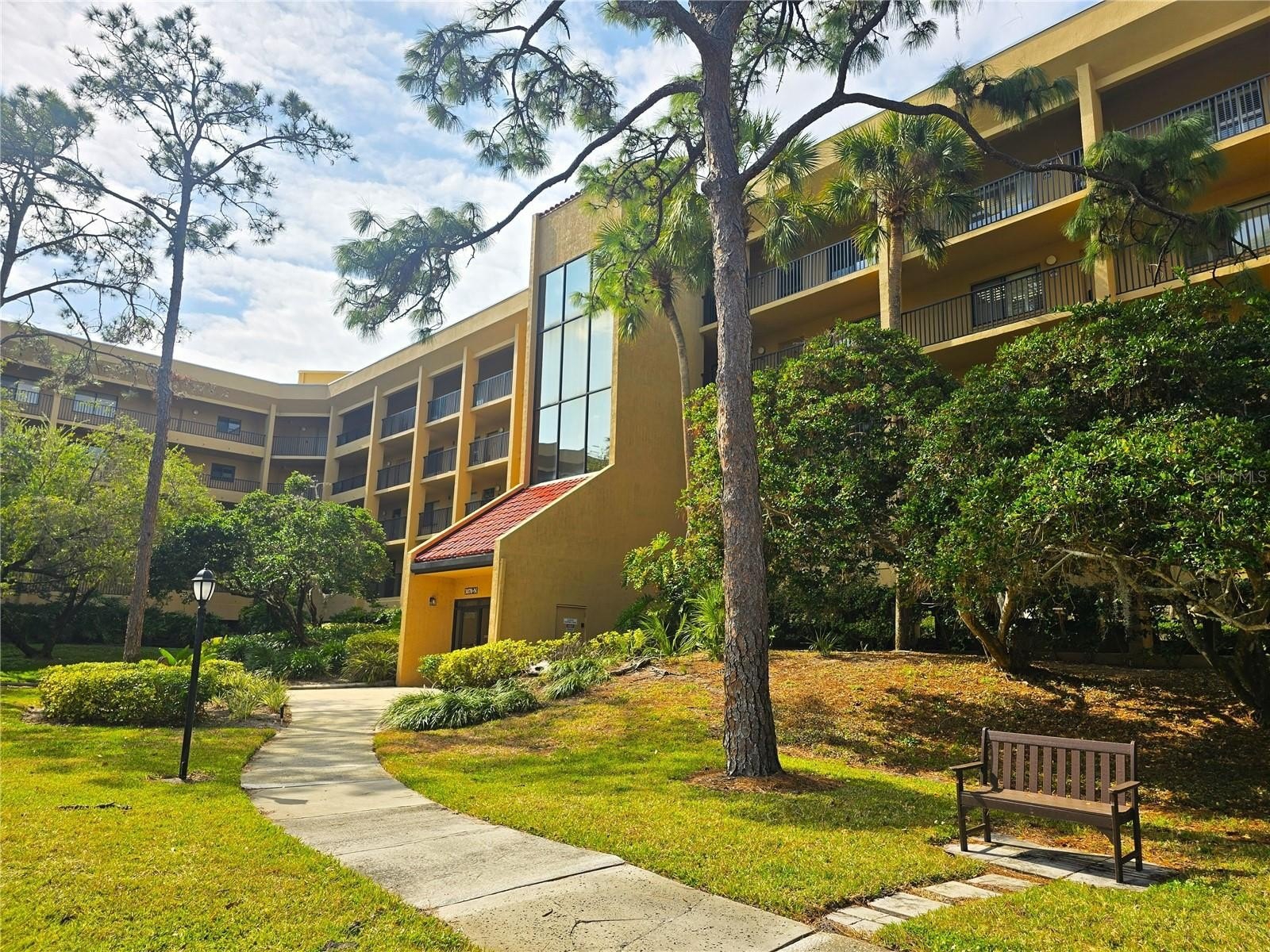 This super clean condo is nestled in a park like setting waiting for its new owner. Drive past the guard gate down a tree line street to a parking space under the building and ride the elevator to your next home. This property offers an adult lifestyle that can really be appreciated. Enjoy afternoon walks under the trees along the water and across the bridge to visit resident turtles. Enjoy a morning swim or soak in the hot tub at the community clubhouse. Spend some time with your new friends relaxing, exercising or playing cards in the Rec center. Features include vaulted ceilings with wood beams, Plenty of natural light through all the windows, new carpet, blinds, open floor plan, dual access main bathroom, private in unit laundry, plenty of closet space, Updated A/C 2002 & water heater 2019. Enjoy your morning coffee in a charming study with French style doors & window that overlooks the back park-like setting behind the building. Create a tasty meal in your kitchen with ample counter and storage space while serving your guests in an adjacent dining area. Decide to bring back takeout? Just across the street you'll find several restaurants, pharmacies, banks & shops including Publix, Starbucks, CVS, Anthony’s Pizza and more. A short drive away is historical Philippi Park overlooking Tampa Bay, as wells as top rated beaches, championship golf courses, international airports, just to mention a few. Mingle with the locals in charming Safety Harbor where on Main Street they have small celebrations like 3rd Fridays, craft & car shows, a library, Marina, & famous Safety Harbor Spa. Relax at an outside table at one of many restaurants, ice cream shops, pubs, or gazebo. The maintenance free Florida lifestyle will be yours!