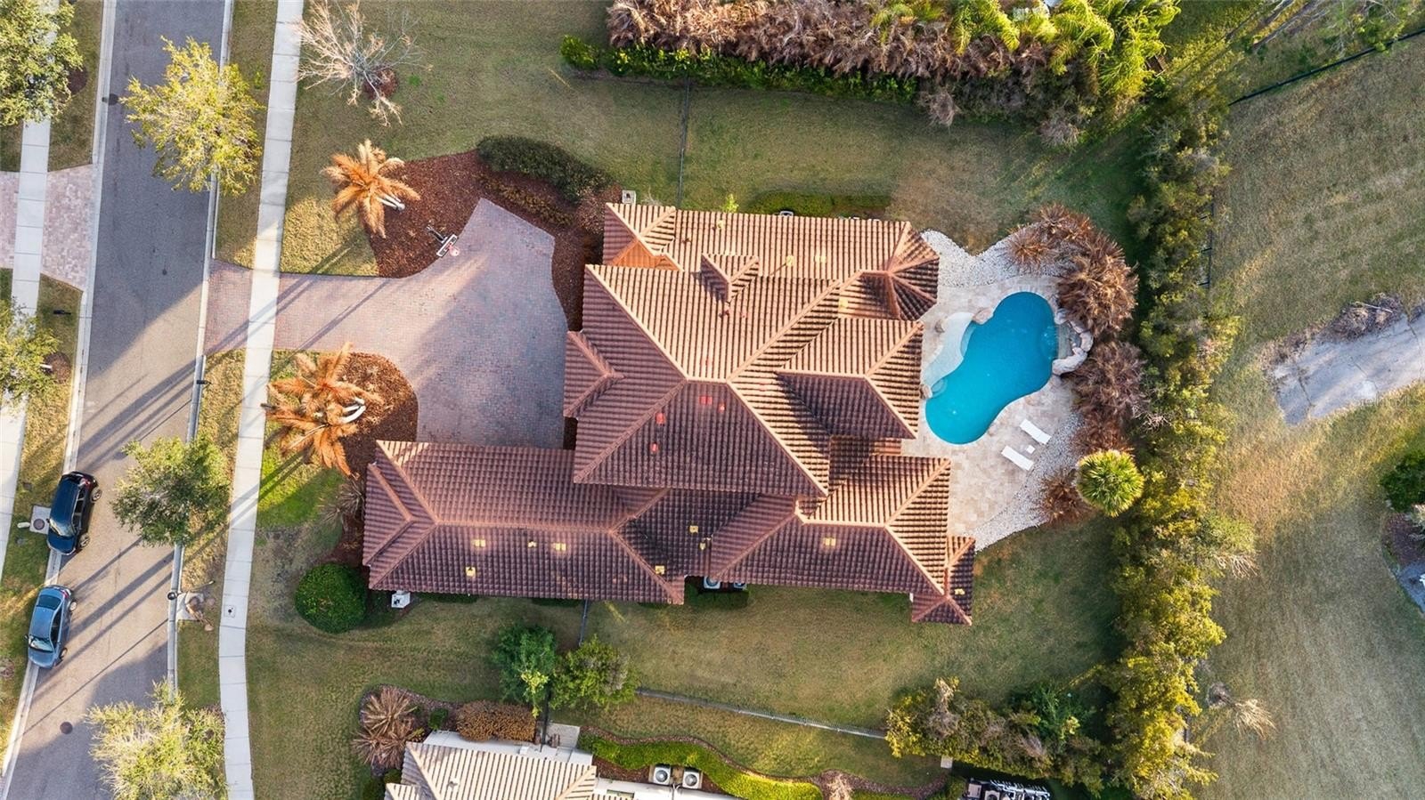EXTRAORDINARY LUXURY HOME! ARTHUR RUTENBERG BUILT! Located in the gated section of Chapman Crossing in the desirable FishHawk Ranch community, this Mediterranean style home includes 4 bedrooms, 4 and a half bathrooms, side entry 3-car garage, and sits on an oversized lot with brick driveway pavers and a tiled roof! Upon entry, an open foyer with a grand staircase awaits, with high ceilings adorned with crown molding and coffered/ tray areas, as well as plantation shutters and timeless wood floors throughout. Near the entryway is a private office, formal dining room, and formal living room with a fireplace, coffered ceiling, and triple sliders with a gorgeous view of the pool to see as soon as you walk inside the home. The stunning remodeled kitchen features a center island, breakfast bar, 42-in cabinets with crown molding & under cabinetry lighting, Modern GE stainless-steel appliances with a gas-cooktop & built-in oven, walk-in pantry, quartz countertops, and stunning tiled backsplash! There is ample natural light with windows surrounding the dining space, and a family room open to the kitchen, perfect for entertaining guests. The primary suite is on the first floor and separate from the remaining bedrooms, featuring hardwood floors, tray ceiling, tons of natural light, dual walk-in closets with custom built-ins, and a door leading to the lanai. The remodeled ensuite bathroom is gorgeous, having everything you could dream of, with double vanities, huge tiled walk-in shower, and a separate garden tub. The second bedroom is split on the first floor, ideal for a guest suite, with the remaining bedrooms upstairs both having their own bathrooms and each with a private balcony! Plus, an upstairs bonus room with a large UPSTAIRS BALCONY overlooking the pool. Step outside into your own private oasis, PRIVATE POOL WITH A STONE WATERFALL, covered lanai screened in for comfortable outdoor lounging, and a fenced in yard with plenty of space for endless possibilities. This home has it ALL! The FishHawk Ranch community is FILLED with scenic ponds and trails, resort style amenities, clubhouses, parks and playgrounds, and zoned for Fishhawk Creek Elementary, Randall Middle, and Newsome High School. ALL A-rated schools! Make this wonderful home your own! Call today to schedule a private viewing!