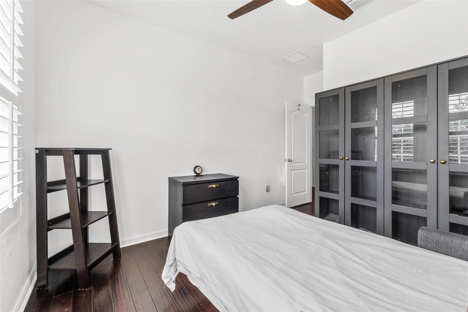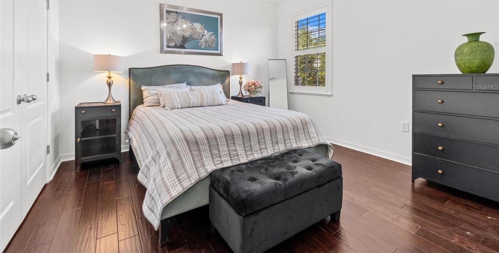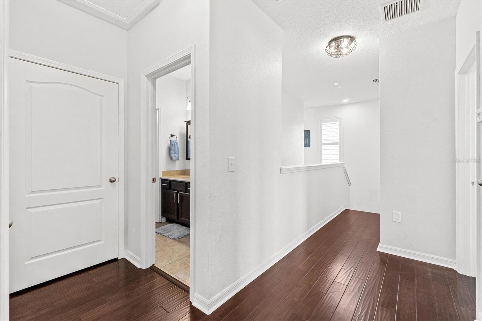 The first-floor primary suite includes dual vanities, a garden tub, a glass shower, and a walk-in closet. Upstairs you’ll find generous secondary bedrooms, a loft/office, and a laundry room with washer and dryer included. Additional highlights include three walk-in closets plus a built-in, hurricane shutters, four new double-pane windows, new exterior paint, and an epoxy-finished garage floor.