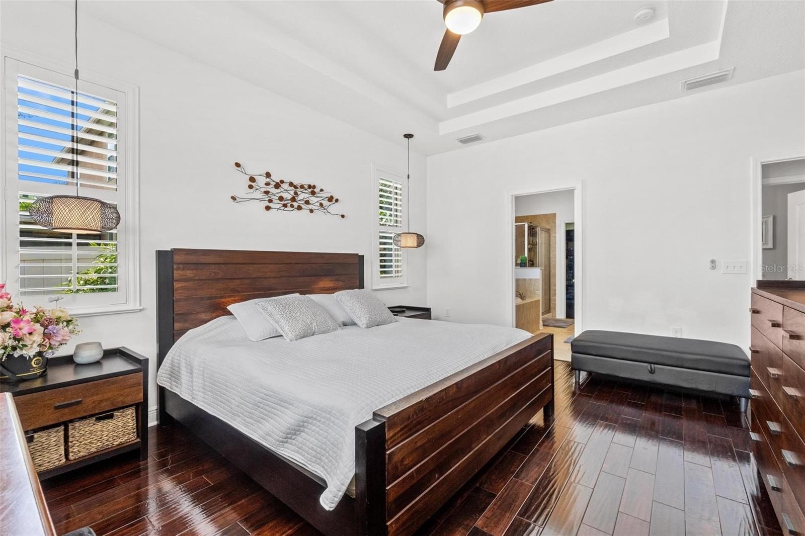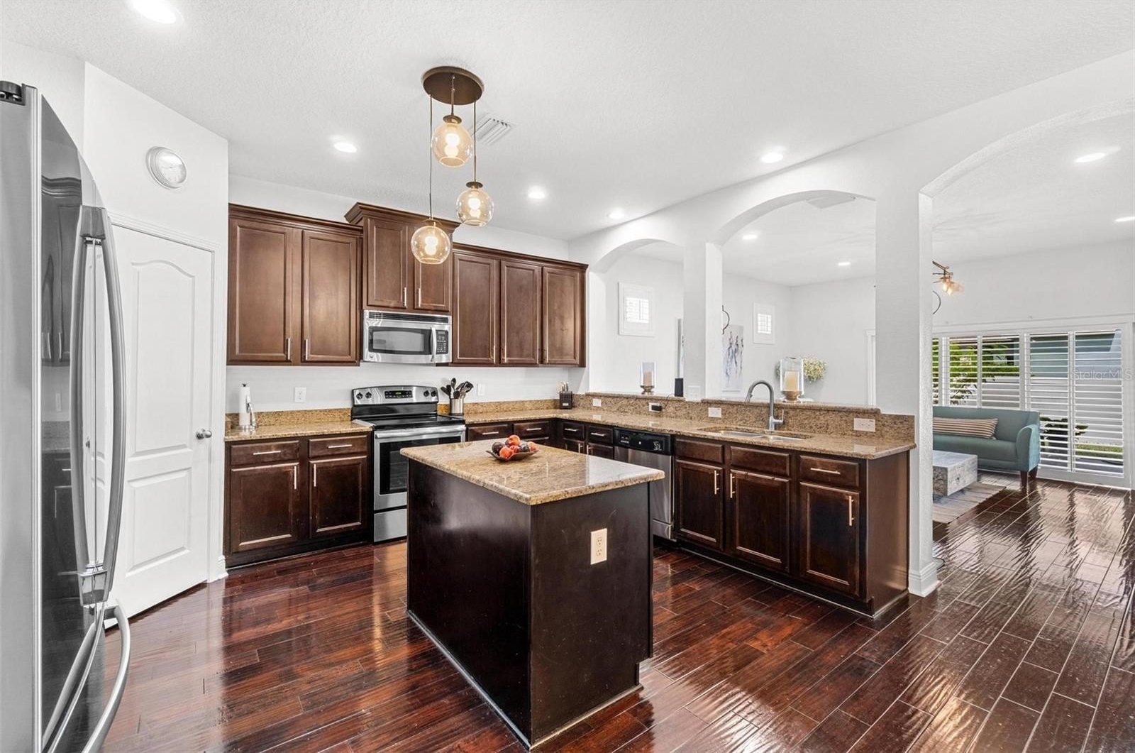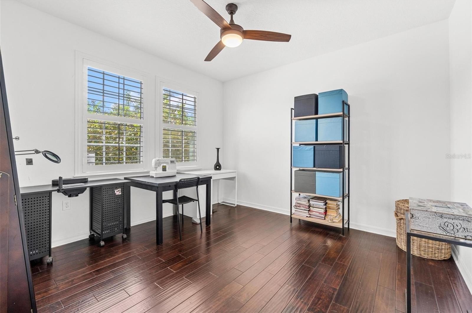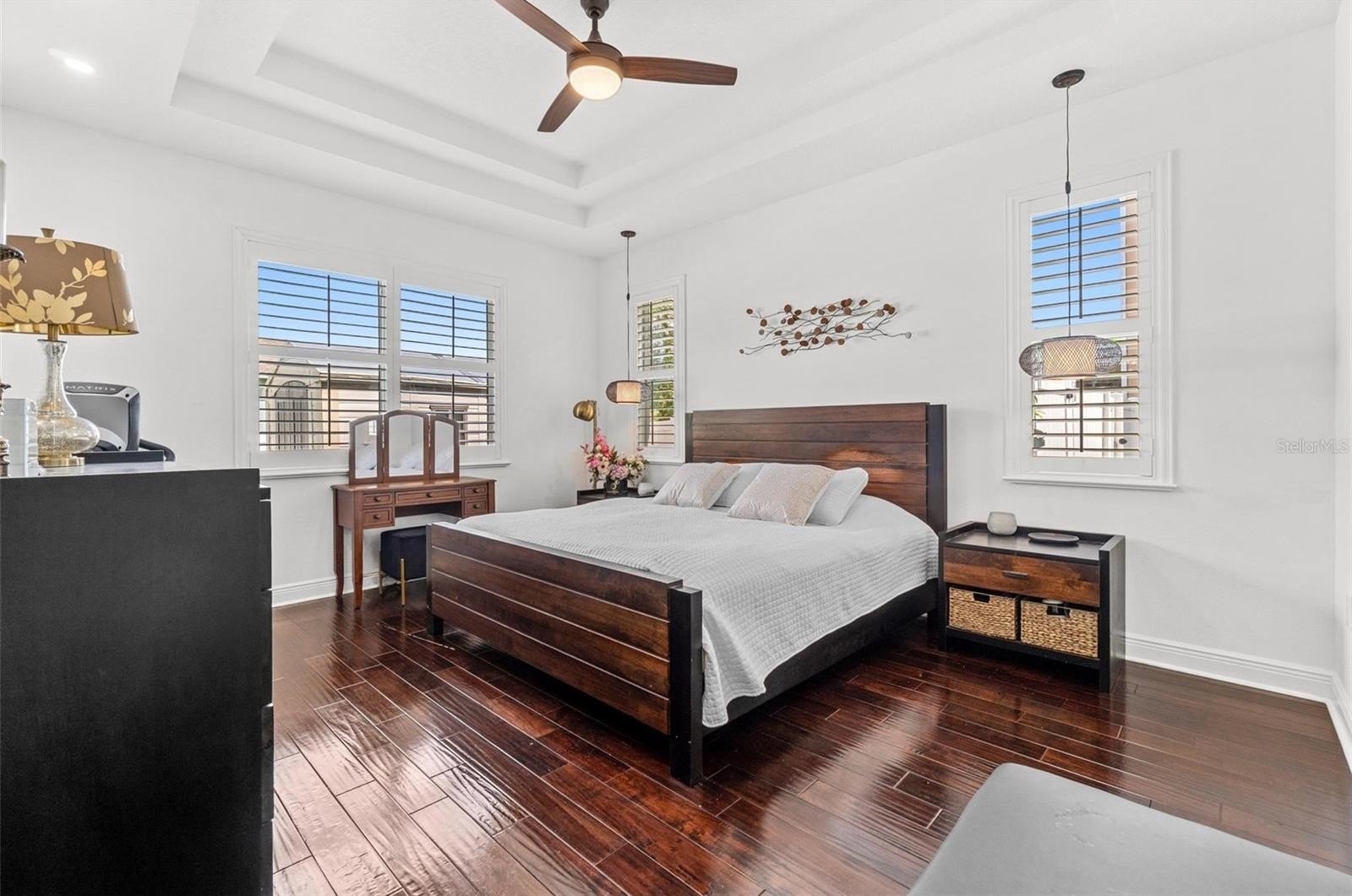 The home features 4 bedrooms, 2.5 baths, an office, and an upstairs loft/flex room. Inside, you’ll find newer birch hardwood floors, newer light fixtures, tray ceilings, plantation shutters, recessed lighting, and an open floor plan filled with natural light. The kitchen is designed for both style and function with granite countertops, wood cabinets, stainless steel appliances, a breakfast bar, and a casual dining nook.