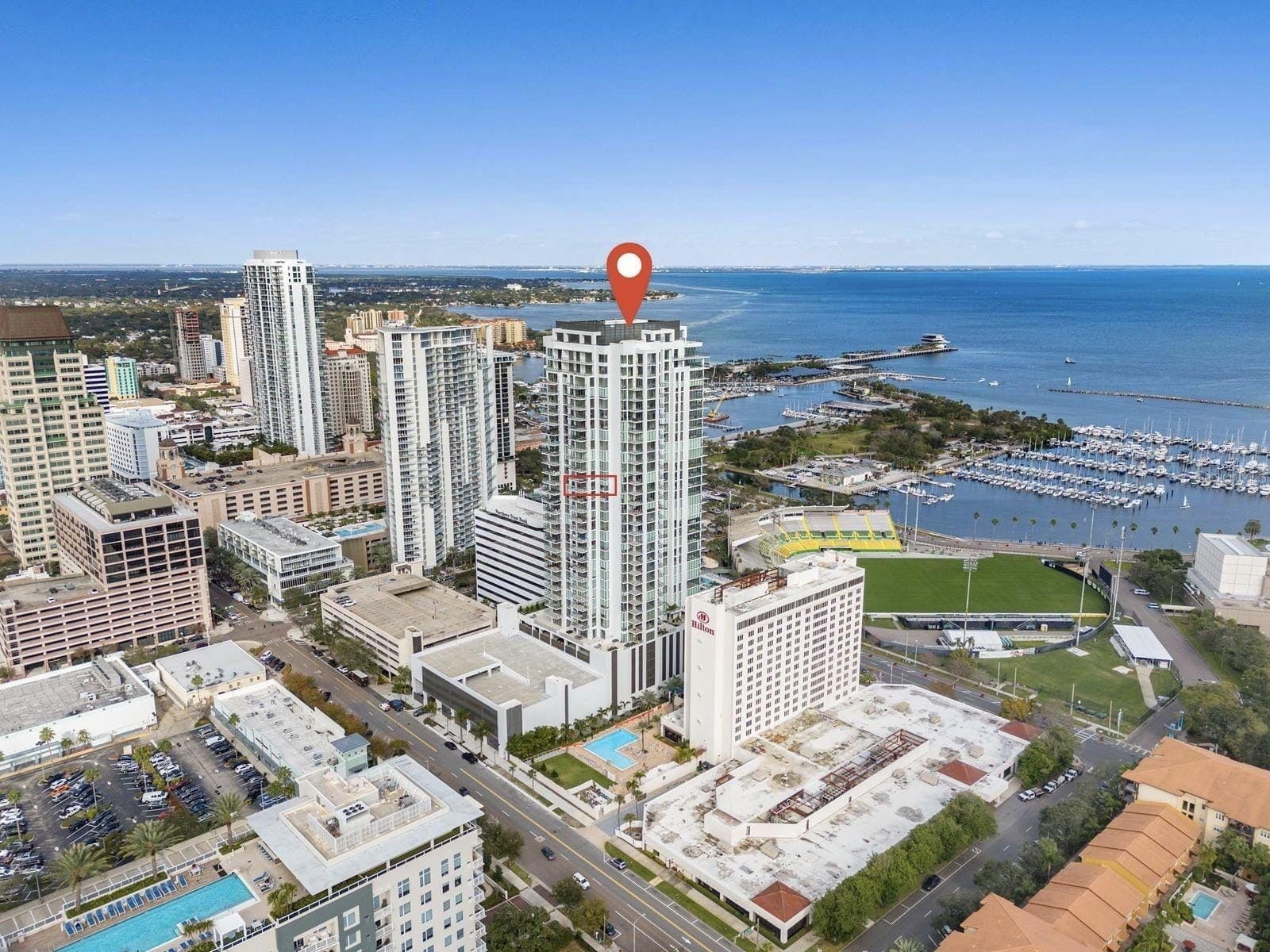 MOTIVATED SELLER — A RARE OPPORTUNITY AT SALTAIRE. Perched on the 20th floor of the coveted Saltaire, Residence 2006 is a refined expression of modern luxury in the heart of downtown St. Petersburg. This exceptional 2-bedroom + den, 2.5-bath residence offers approximately 1,857 square feet of thoughtfully curated indoor and outdoor living space, where sophisticated design meets breathtaking city and water views. From the moment you enter, the residence reveals an atmosphere of understated elegance. Expansive floor-to-ceiling impact glass, soaring 9+ foot ceilings, and oversized porcelain tile flooring create a bright, gallery-like living environment designed for both comfort and entertaining. Custom designer enhancements elevate the home beyond builder standards, including bespoke accent walls, brand-new custom closets, Lutron lighting controls, motion-sensor lighting, integrated floor outlets, hardwired window shades, and thoughtfully placed convenience outlets. The chef’s kitchen is a striking centerpiece, featuring a fully integrated JennAir appliance suite, sleek panel-ready cabinetry, a Zephyr statement hood, dramatic waterfall-edge quartz countertops, and elegant soft-close cabinetry. The space flows effortlessly into the living and dining areas, perfect for hosting intimate gatherings or enjoying a quiet evening above the city lights. Both bedrooms serve as luxurious private suites, offering comfort and privacy rarely found in condominium living. One spa-inspired bathroom features the highly sought-after soaking tub, an uncommon luxury within the building—perfect for unwinding after a day in the city. Residents of Saltaire enjoy one of the most spectacular amenity collections in downtown St. Petersburg, including a resort-style pool and spa overlooking Tampa Bay, a state-of-the-art fitness center, elegant social lounges, private meeting spaces, and a dedicated dog park. The expansive amenity deck also offers front-row views of the St. Petersburg Grand Prix, creating a truly unique lifestyle experience. Ideally located just moments from the St. Pete Pier, the Dali Museum, Mahaffey Theater, waterfront parks, championship sailing, world-class dining, and vibrant nightlife, this residence offers the ultimate in walkable urban coastal living. A rare opportunity to own a premier residence in one of downtown St. Petersburg’s most sought-after luxury towers.