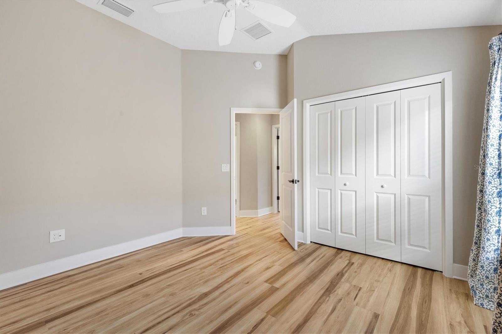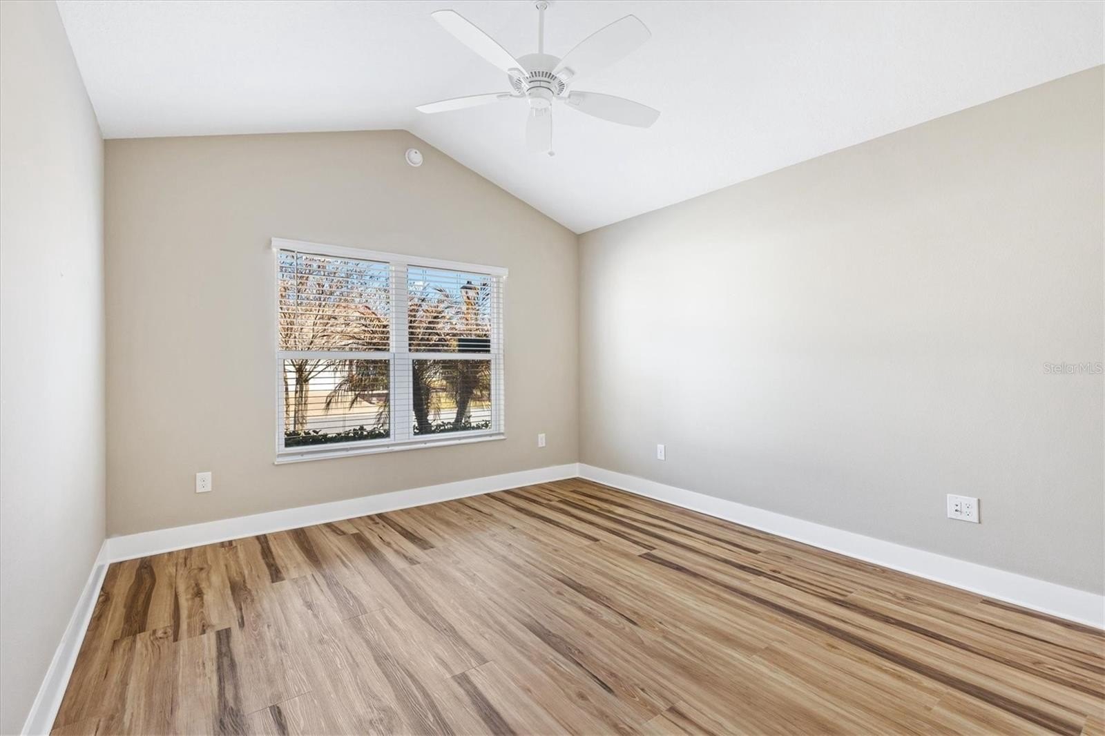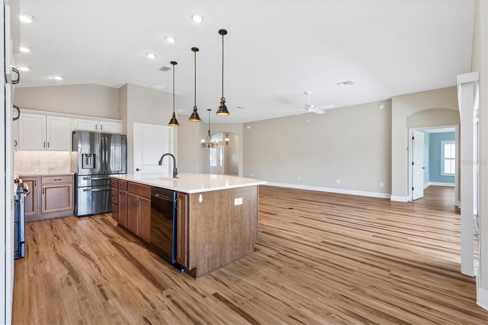 Welcome HOME to this DESIGNER IRIS (AKA KINGFISHER) BLOCK & STUCCO 3/2 with a 2 CAR GARAGE + A GOLF CART GARAGE in the highly sought-after VILLAGE OF LINDEN with ROOM FOR A POOL (sketch in attachment) Upon arrival you'll notice the EXTENDED DRIVEWAY, beautiful landscaping w/HARDWIRED LANDSCAPE LIGHTING and Whole House GUTTERS. The COVERED entry vestibule, LEADED GLASS front door and sidelights with a large TRANSOM window welcome you to a well-lit and GENEROUS foyer boasting HIGH CEILINGS and a convenient ENTRY CLOSET. Beautiful LUXURY VINYL PLANK flooring & 5 1/4 INCH BASEBOARDS throughout the home-NO CARPET, PLANTATION SHUTTERS in the living room, dining room and primary bedroom. The kitchen is a chefs dream featuring QUARTZ COUNTERTOPS, TILE backsplash, UNDER-CABINET lighting, STAINLESS STEEL APPLIANCES (Gas Range), DOUBLE PANTRY-w/pullouts, Creamy WHITE cabinets with a KAROO glaze and a spectacular ISLAND with PENDANT LIGHTS and matching KAROO cabinets giving you extra storage space. Adjacent to the kitchen, the dining room, with its VAULTED ceiling and two large windows invites NATURAL LIGHT and offers easy access to the lanai through sliding glass doors. From the living room, an additional set of FOUR-PANEL sliding glass doors also invites you into the SCREENED EXPANDED LANAI adorned with lights and TWO ceiling fans. Off the lanai there is ROOM FOR A POOL (Sketch is in attachments) and NO HOMES BEHIND. The luxurious primary bedroom boasts a magnificent TRAY ceiling and SPACIOUS WALK-IN closet. The en-suite bathroom is a retreat featuring a VAULTED ceiling, DUAL sinks, TILED ROMAN-STYLE WALK-IN shower, built-in LINEN closet and a separate water closet. Two additional bedrooms with VAULTED CEILINGS and built-in closets + a second bathroom are conveniently located behind a POCKET DOOR near the front of the home, ensuring plenty of PRIVACY for guests or a quiet home office. The INTERIOR LAUNDRY has added CABINETS. The garage door has added WINDOWS for natural. Linear garage door openers, Whirlpool water softener, and wait until you see the extra storage in the HVAC closet. This home is nestled close to RIVERBEND Recreation, MAGNOLIA Shopping Plaza, EVERGLADES Recreation, EASTPORT, SAWGRASS, BROWNWOOD, GOLF and more! This home has it all, in a stellar location. Please watch the VIDEO of this fantastic home and CALL NOW for your private viewing!