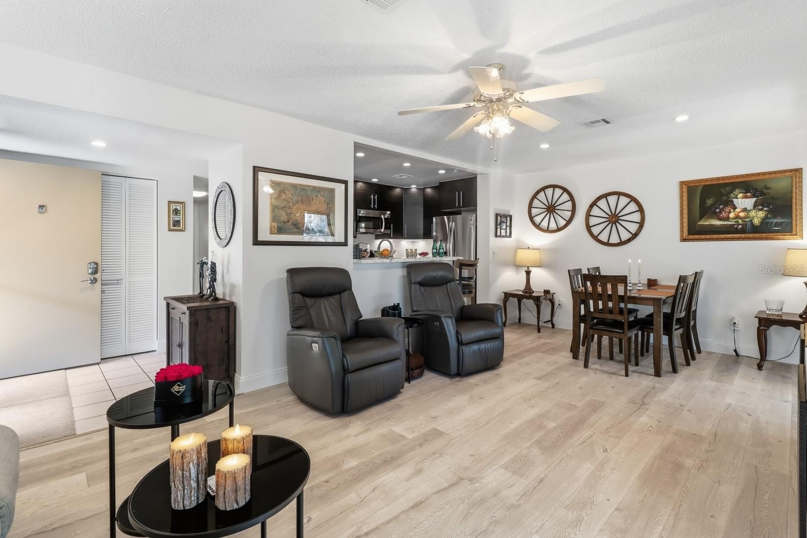 The attention to detail continues with new ceiling fans and fixtures, recessed lighting, fresh interior paint, new closet doors, and upgraded flooring throughout the entire unit. A storm door adds both functionality and charm, allowing natural light to flow into the space.