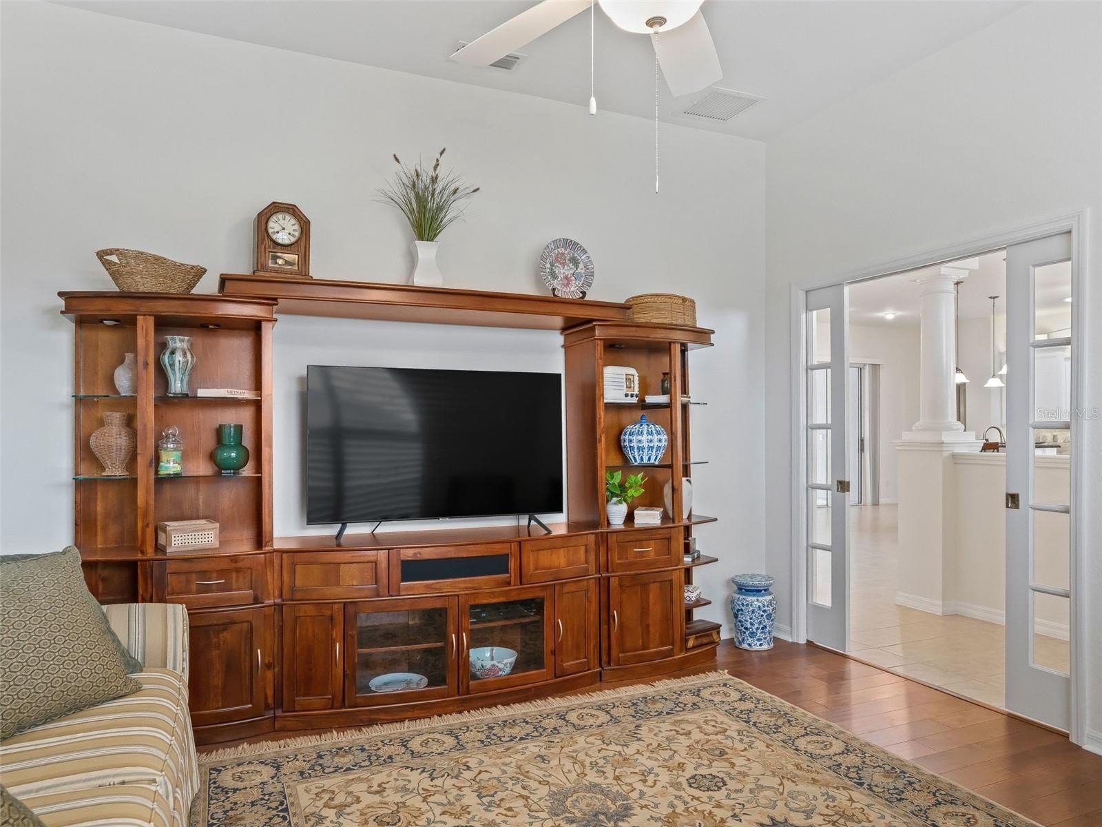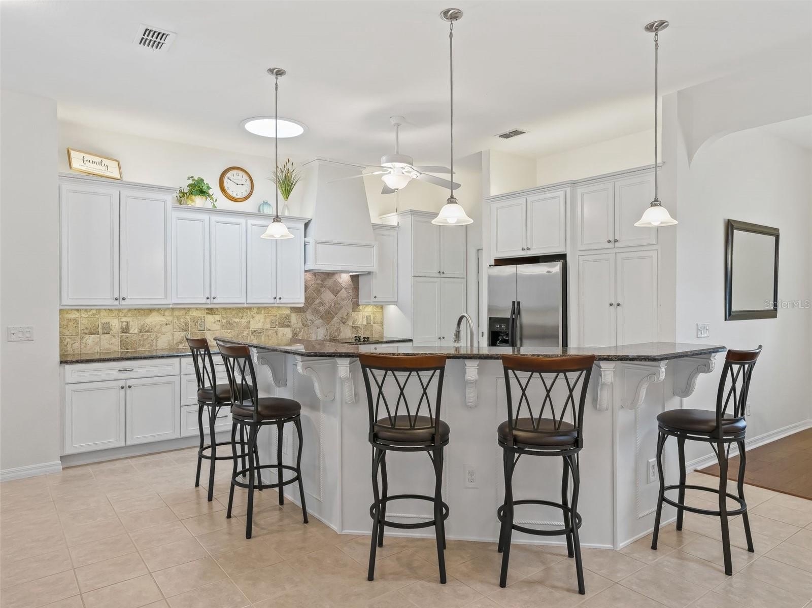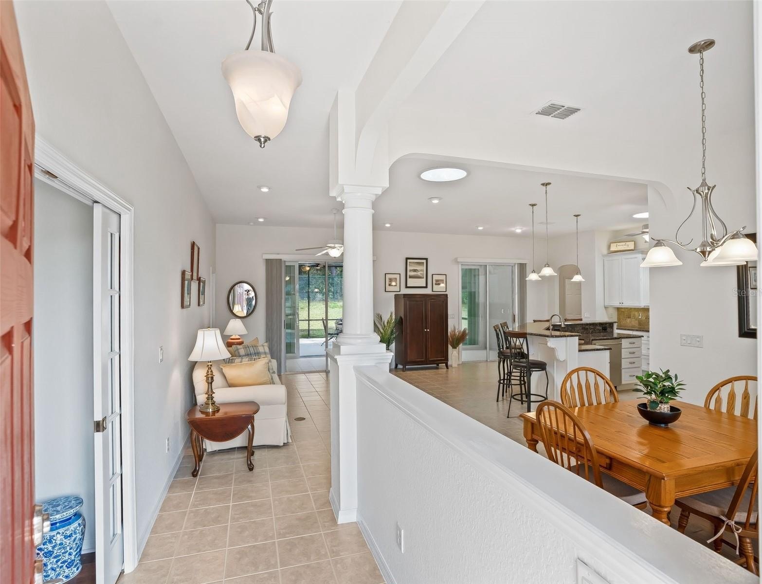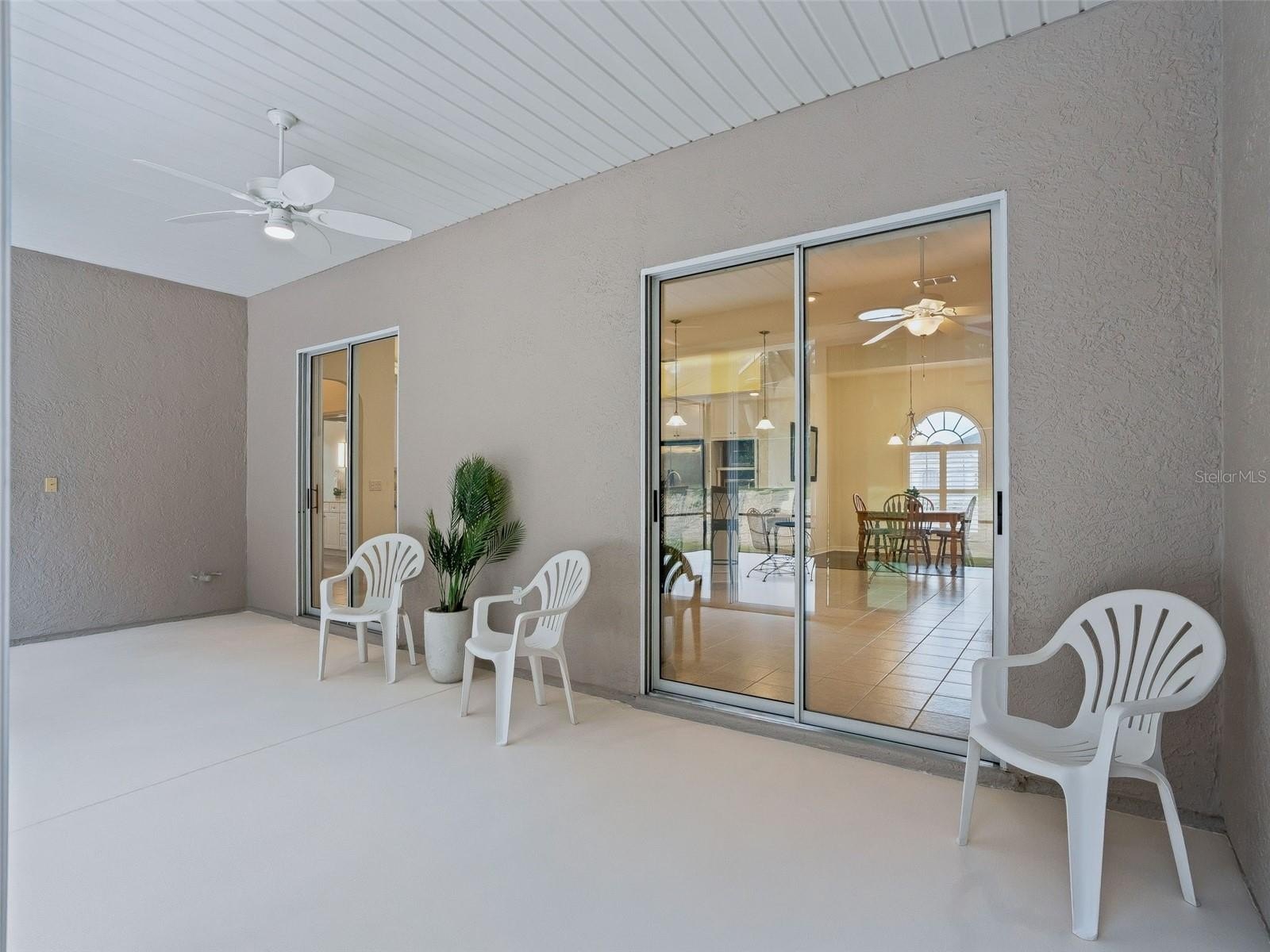 Stonecrest is a 55+ gated golf course community with all the amenities and 4 pools (one indoor), and just a Bridge Away By Golf Cart To The Villages! Exceptional 3/3 + Den Cedar model with a 2 Car + Golf Cart Garage, ROOF 2020, HVAC 2020, Soaring 10ft ceilings, Open and Split Floor Plan, and No Rear Neighbors! This home presents Tremendous Curb Appeal featuring Meticulously Maintained Professional Landscaping, Painted Concrete Driveway and Walkway, and an Elegant Front Porch! The Open Concept Floor Plan is Spacious, and Flooded with Natural Light, offering the Perfect Gathering space for family, and friends! The Split Floor Plan provides maximum Privacy for both the Owners and their Guest, with the Primary suite commanding one side of the home while the guest bedrooms and guest bathrooms are located on the opposite side of the home. The Luxurious Primary suite offers a Huge Walk In Closet, and an En Suite bathroom. The En Suite Bathroom features a Double Sink Vanity, Bidet, Tiled Walk In Shower, and a Nice Size Soaking Tub! The two additional bedrooms feature nice size built in closets. Guest bedroom 2 offers an En suite bathroom with a Tiled Walk In Shower, and good size Vanity, providing your guests with Convenience, and Privacy! Guest bathroom 3 is conveniently situated next to the additional guest bedroom, providing ample space for your guests. The Impressive Gourmet Kitchen showcases Granite countertops, Tumble Tile Backsplash, Sold Wood Cabinets with Pullouts, Stainless Appliances, a Double Pantry Closet, Generous Breakfast Bar with Upgraded Pendant Light Fixtures, and Eat in Area with Access to the Enclosed Lanai. The kitchen flows seamlessly to the Living area, which offers an Exceptional Space for Enjoying Comfortable Living, and Entertaining! Gorgeous Laminate Flooring, and an Upgraded Light Fixture Adorn the Dining area accented by Plantation shutters, and opens to the Huge 16 x 18 Living area which offers access to the 24 x 10 Lanai! Enjoy Exceptional Outdoor Living on the 23 x 20 Birdcage Enclosed Back Patio, with warm Tropical Breezes, Beautiful Sunsets, and Backyard BBQ's! There is Plenty of Room for Storage in the 28 x 21 2 Car + Golf Cart Garage! Call Cindy Now for Your Private Showing! Stonecrest is a 55+ gated golf course community with all the amenities, pools, pickleball courts, softball, 18 hole championship golf course, Broad Stripes Golf & Social Club and over 80 different clubs to join! As a private gated golf course community, you can expect a high level of privacy and security. Overall, this home offers a combination of Tremendous Outdoor Space, Luxurious Features, a Fantastic Location, and a Secure Community Setting. A WONDERFUL LIFESTYLE AWAITS YOU IN STONECREST! Plenty of privacy, with No Rear Neighbors, and Privacy landscape, which provide a lovely park like setting for your backyard BBQ's !