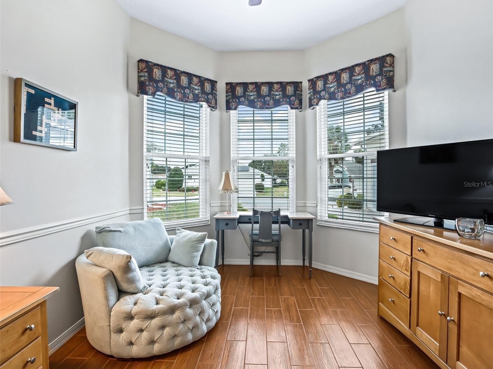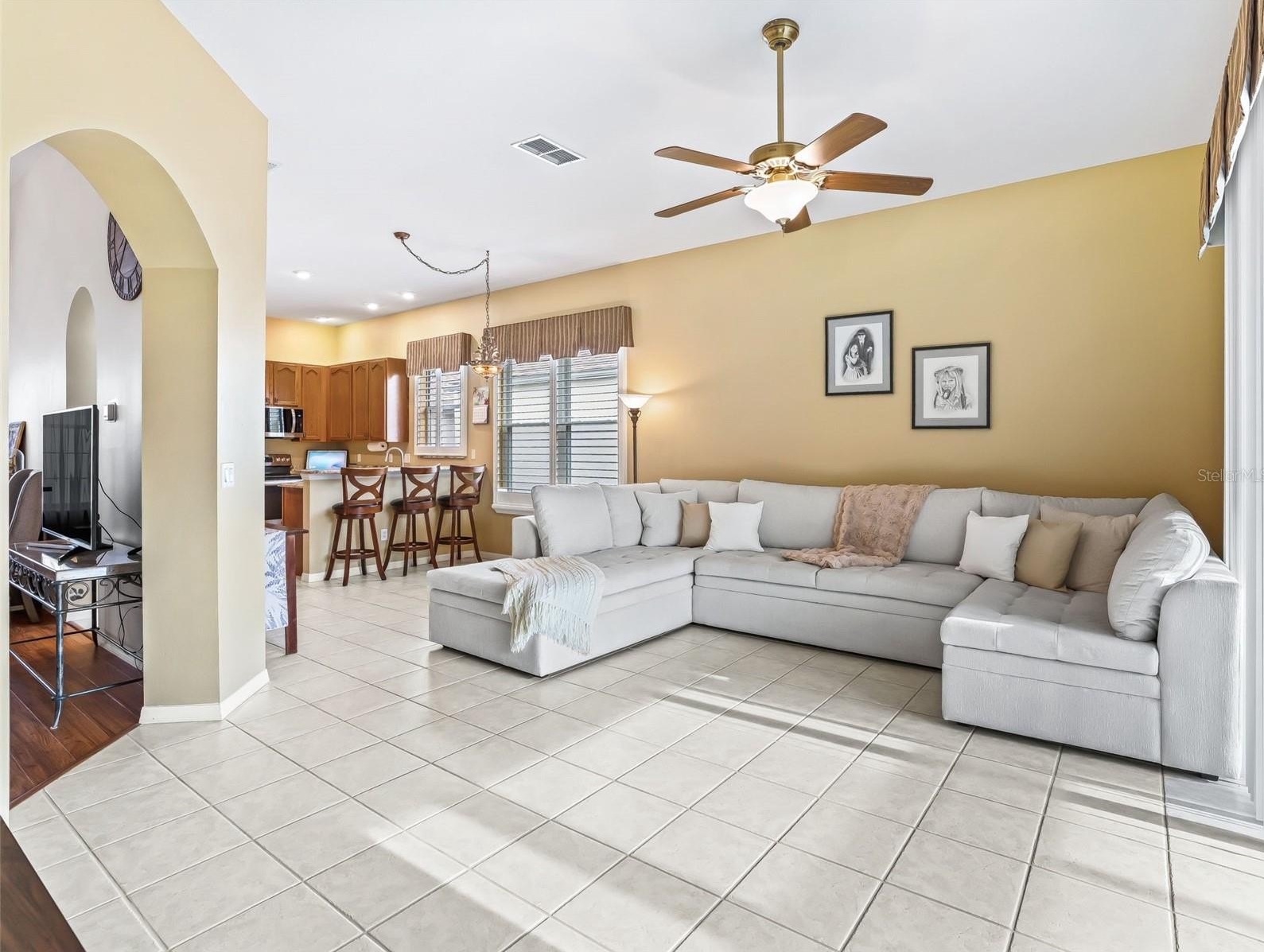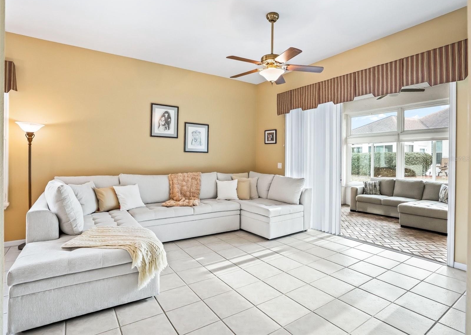 Stonecrest is a 55+ gated golf course community with all the amenities and 4 pools (one indoor), and just a Bridge Away By Golf Cart To The Villages! Exceptional 3/2 St George model with an OVERSIZED 2 Car Garage that gives you the option for a GOLF CART GARAGE (all you need is to add the garage door as the space is already included), and Tremendous Curb Appeal featuring Designer Paver Driveway & Walkway, LOW MAINTENANE Professional Landscaping, and Covered Front Entrance , ROOF 2018, NEW TANKLESS HOT WATER 2025, 2020 ENCLOSED GLASS LANAI, A/C 2014 AND PAVERS IN LANAI AND DRIVEWAY. As you enter into the foyer you are greeted by Soaring 10ft ceilings, an Open Concept Floor Plan, Designer Light Fixtures, and Gorgeous Glowing Laminate Flooring. NO CARPET! The Large Eat in Kitchen showcases Plantation Shutters, Granite countertops, Rich Wood cabinets, Stainless Appliances (New Refrigerator & Microwave), Nice Size Pantry, and Breakfast Bar. The Kitchen flows to the Family room with stackable sliders to the Enclosed Lanai, creating an Exceptional Space for gathering with friends, and family! The warm inviting Living and Dining area combination is flooded with natural light accenting the stunning designer light fixtures, high ceilings, and beautiful laminate flooring. Retreat to the Luxurious 18 x 15 Primary Suite featuring a Walk in Closet, and En Suite Bathroom. The En Suite Bathroom showcases a Private Water Closet, Soaking Tub, Two Vanities, Linen Closet, and a Walk in Shower! Guest Bedroom Two provides a nice size built in closet, and laminate flooring, while Bedroom 3 (no closet) can be used as a Den, and has beautiful WOOD LOOK TILE flooring! The Guest bathroom boast a New Walk in Shower, and a Nice Size Vanity! The 16 x 11 Glass Enclosed Lanai is a Fantastic Additional Living Space, and provides an Incredible area for Enjoying Florida Sunsets, Evening Dining, Morning Coffee, or Experiencing the beautiful Tropical Breezes! Stonecrest is a 55+ gated golf course community with all the amenities, pools, pickleball courts, softball, 18 hole championship golf course, Broad Stripes Golf & Social Club and over 80 different clubs to join! As a private gated golf course community, you can expect a high level of privacy and security. Overall, this home offers a combination of Elegant Upgraded Features, a Fantastic Open Floor Plan, a Desirable Location, and a Secure Community Setting. A WONDERFUL LIFESTYLE AWAITS YOU IN STONECREST!