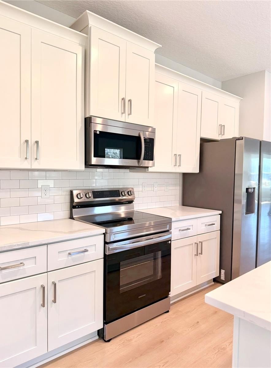 The kitchen serves as the heart of the home, featuring stylish cabinetry, sleek countertops, stainless steel appliances, and a large island that provides additional seating and prep space.