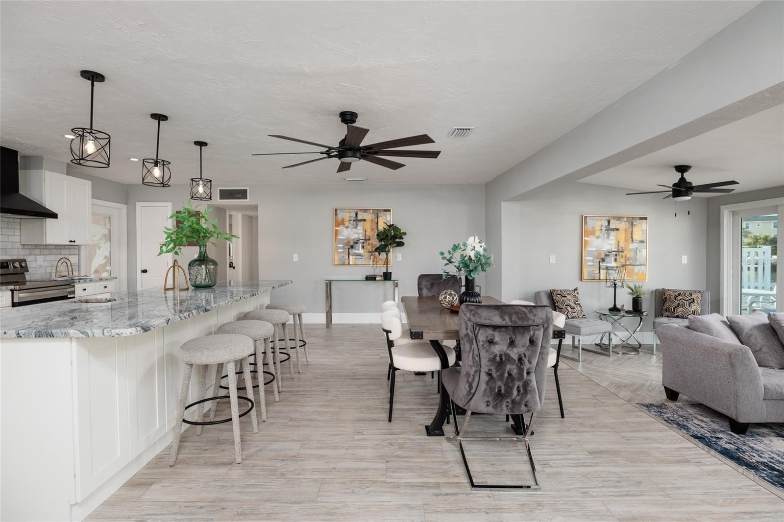 The home has been completely updated and rebuilt from the inside out—everything is new except the block walls. That means a new roof, new AC, new electrical, new plumbing… you name it, all wrapped in a clean, modern design that looks like it jumped straight off HGTV. Step outside to your private pool, large floating dock perfect for kayaks and water toys, and a boat lift with open water access, making it effortless to enjoy the waterfront lifestyle.