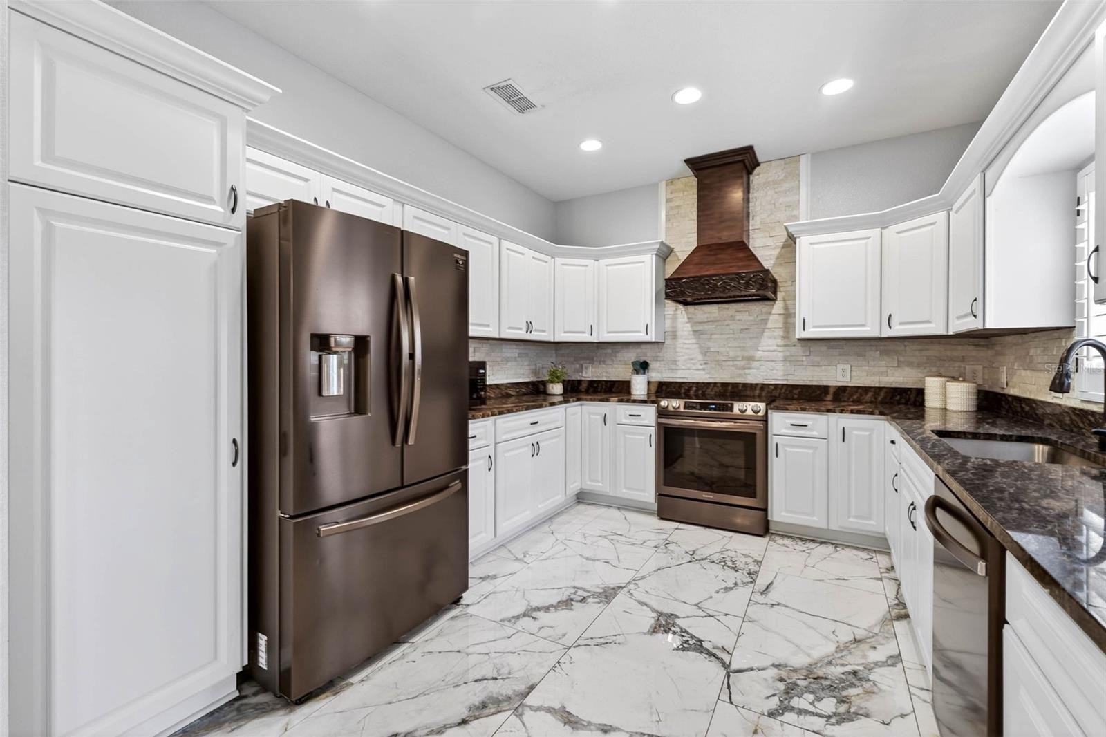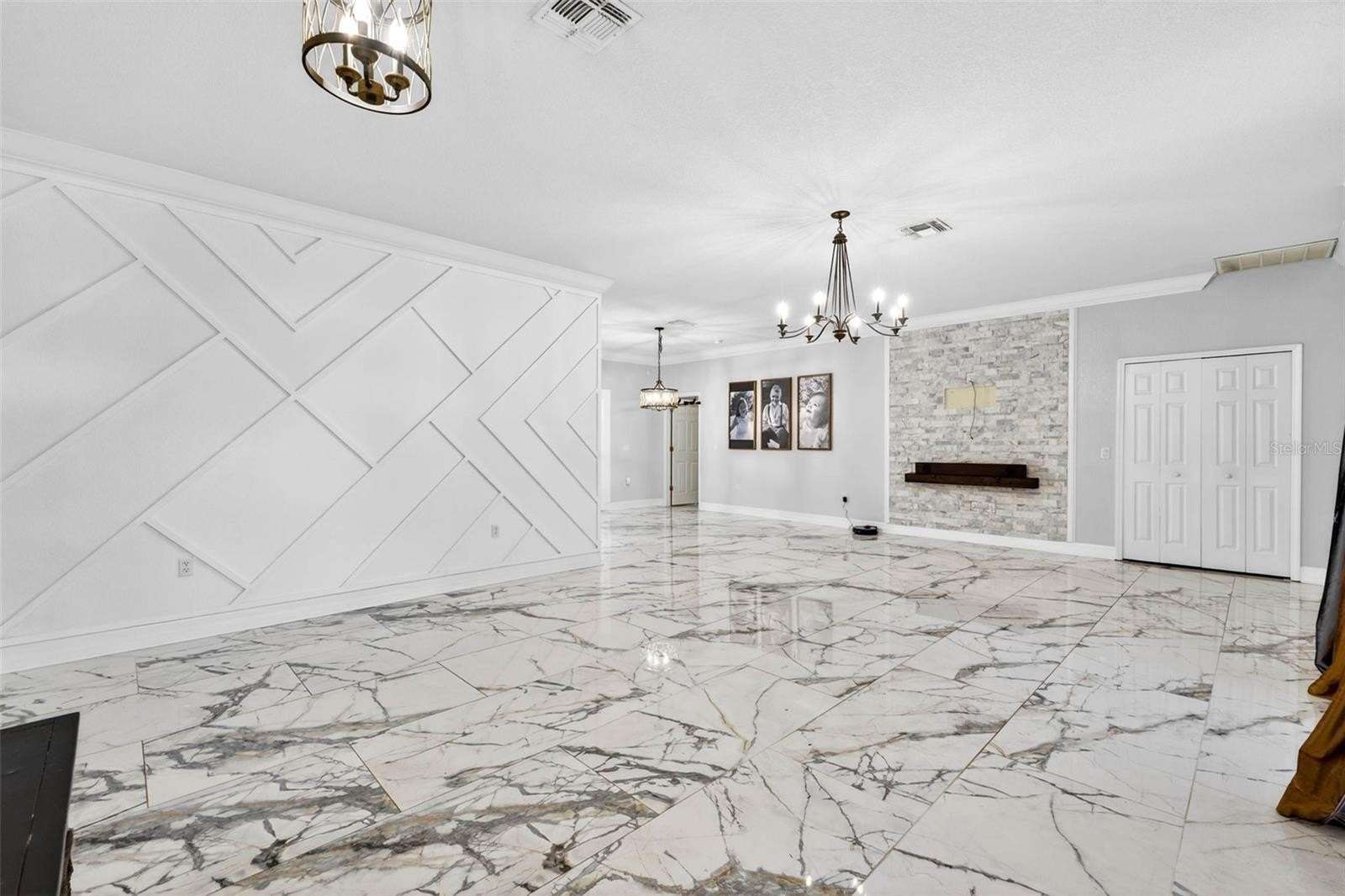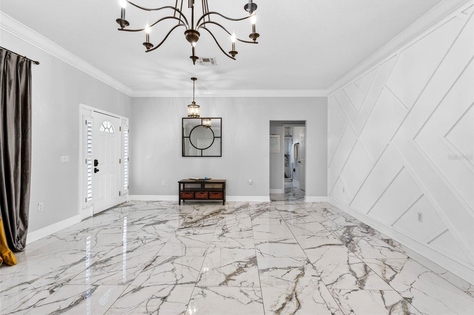 Welcome to this beautifully remodeled 3-bedroom, 2-bath home, offering 1,728 sq ft of thoughtfully designed living space. Step inside to discover high ceilings, updated tile flooring throughout, and a split floor plan that provides extra privacy. The renovated kitchen features marble and granite countertops, a custom backsplash, stainless steel appliances, and is perfect for cooking and entertaining.
