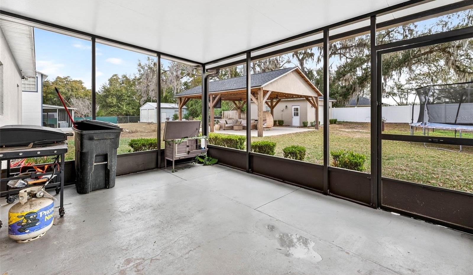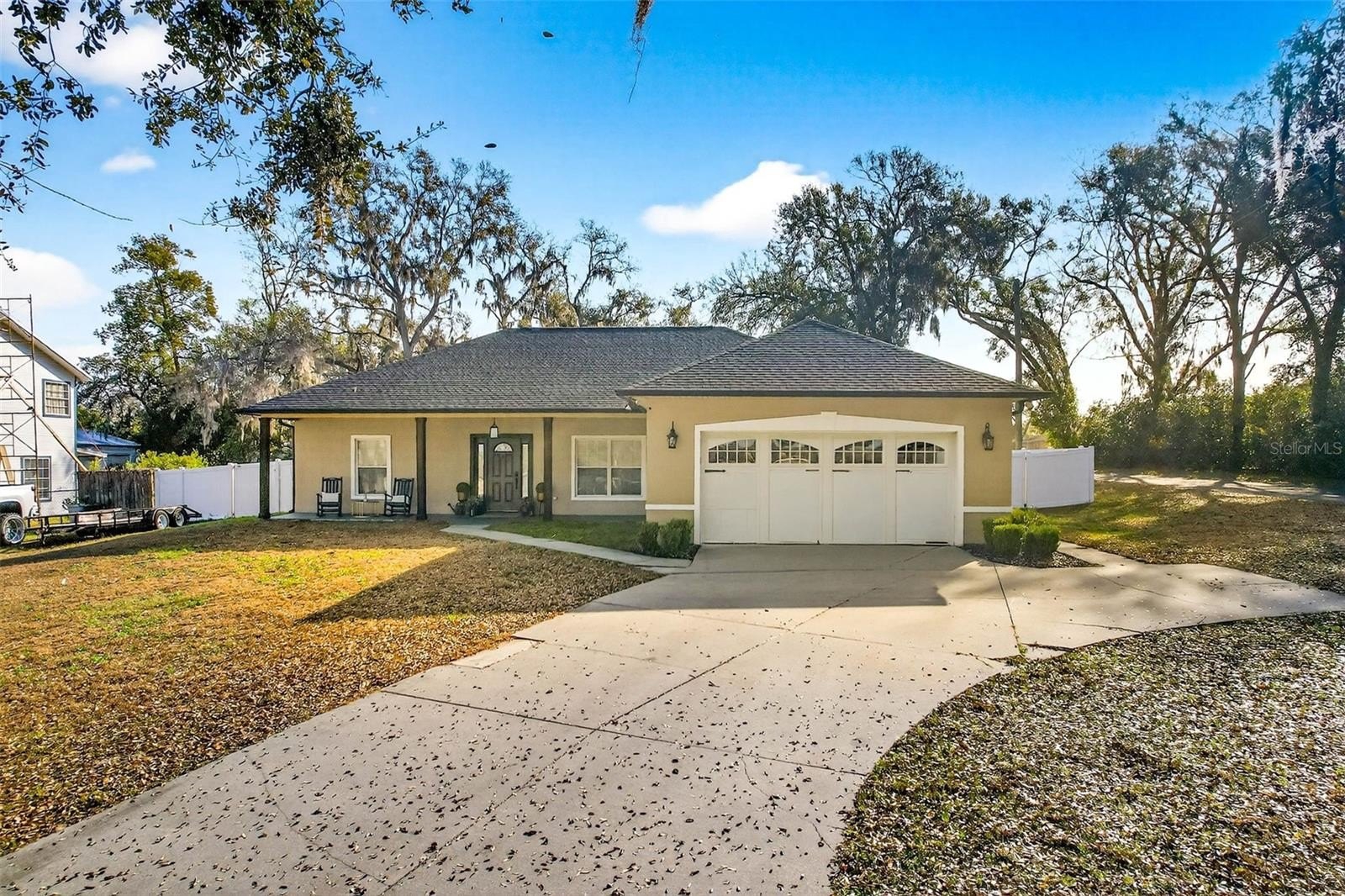 Enjoy outdoor living on the screened lanai or host gatherings under the expansive pavilion. The partially fenced backyard offers extra space to play or relax, and a detached garage/workshop provides great versatility for hobbies or storage. With a new roof (2024) and newer HVAC (2023), this move-in-ready home combines modern updates with comfort and functionality. Don't miss your chance to own this exceptional property!