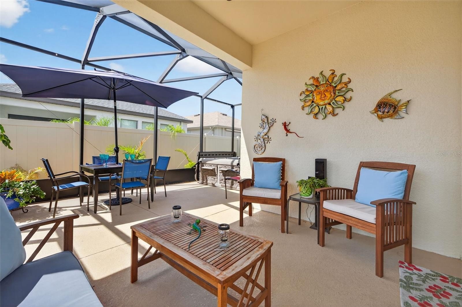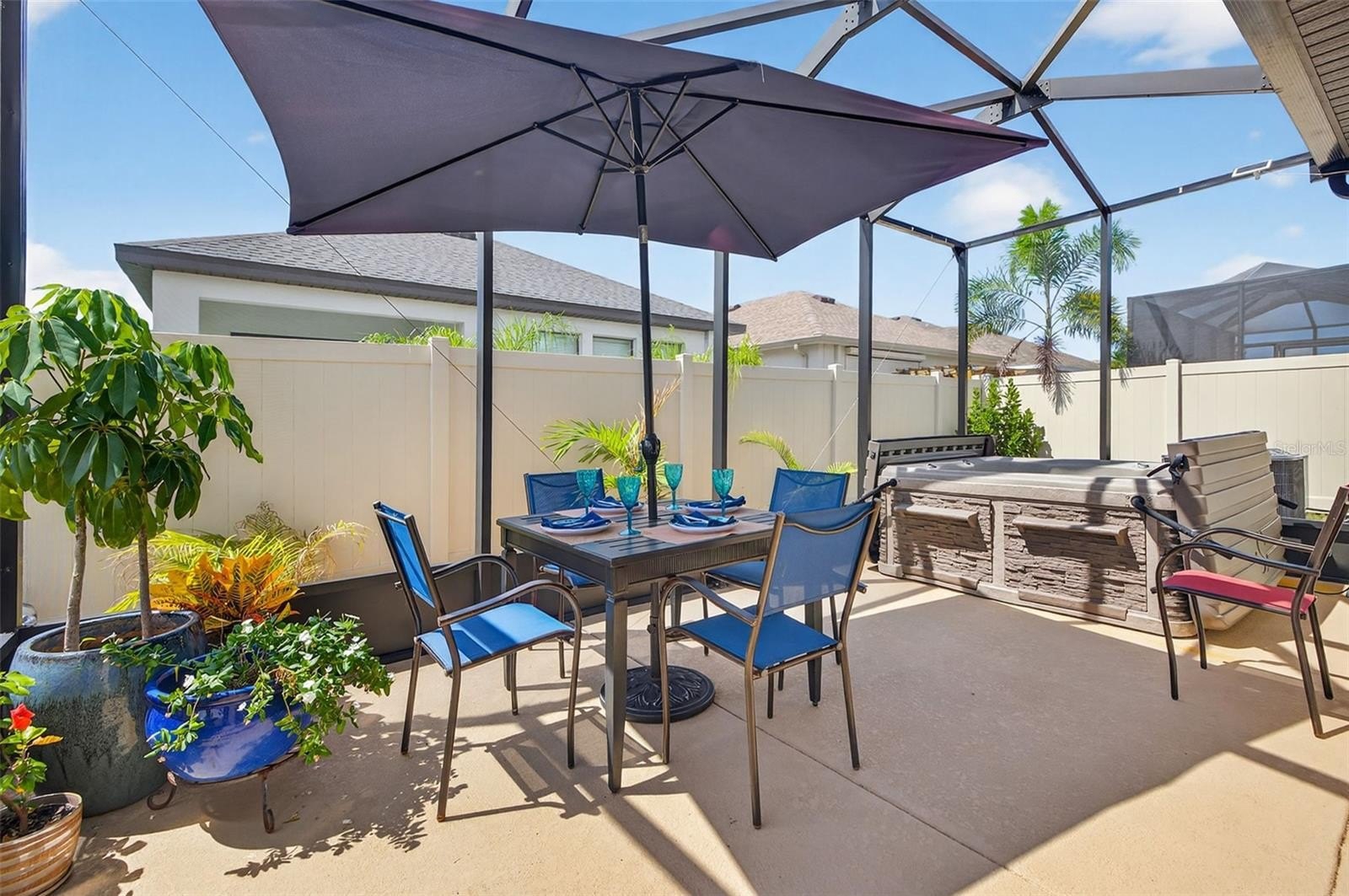 Welcome home to this immaculate corner-lot beauty in the highly desired community of River Bend Village—a thoughtfully designed home that seamlessly blends elegance, comfort, and convenience. Boasting 3 spacious bedrooms, 2 full baths, and 1,742 square feet of living space, this property is perfectly suited for those who value refined upgraded finishes and modern living. From the moment you arrive, you’ll be impressed by the home’s striking curb appeal, highlighted by stone accents and a welcoming façade that sets the tone for what awaits inside. The two-car garage offers both functionality and storage, while the expansive corner lot provides extra space, privacy, & an added sense of openness rarely found in similar properties. Step inside to discover a large, open-concept floor plan designed for effortless entertaining and everyday living. At the heart of the home is the chef-inspired kitchen, a true showpiece featuring Quartz countertops, upgraded cabinetry, a custom tile backsplash, & a large center island with snack bar seating. Whether you’re preparing a casual breakfast or a gourmet dinner, the gas cooktop ensures a professional culinary experience. A dining area feature plantation shutters and provides the perfect spot for casual dining, while the seamless flow into the spacious living room creates a warm, welcoming space for relaxation and gathering with family and friends. The primary suite is a tranquil retreat, thoughtfully positioned for privacy. Here you’ll find a large walk-in closet and a luxurious ensuite bath, complete with an upgraded shower, premium fixtures, & custom lighting. The additional bedrooms are equally inviting, each outfitted with Luxury vinyl plank flooring for style, durability, and easy maintenance. An oversized laundry room with a gas dryer hookup adds convenience and functionality to the daily routine. Sliding glass doors open to a true Florida highlight—an extended screened lanai designed for outdoor living year-round that features covered seating space and a relaxing hot tub. Whether you’re enjoying a morning coffee, entertaining guests, or unwinding after a long day, this space overlooks a private vinyl-fenced backyard with room for gardening, play, outdoor dining, The corner lot further enhances the sense of privacy, while landscaping provides natural beauty and shade. This home is rich in thoughtful upgrades throughout, including plantation shutters, upgraded lighting fixtures and ceiling fans, custom kitchen backsplash, upgraded cabinets, & modern faucets in the kitchen and primary bath. Every detail has been carefully considered, ensuring a move-in-ready home that combines both style and substance. Beyond the property itself, River Bend Village offers a prime location that is both peaceful & convenient. Within minutes, you can explore the famous Sponge Docks, the charming Tarpon Springs downtown district, Sunset Beach, Howard Park Beach and an array of waterfront dining options. Everyday conveniences such as shopping and schools are just a short drive away, while parks and recreational areas allow you to embrace the best of Florida living. If you’re looking for a full-time residence or a seasonal retreat, this home offers the perfect balance of comfort, Luxury, and location. With its corner-lot setting, chef’s kitchen, extended outdoor living space, and countless upgrades, it is truly a rare find.