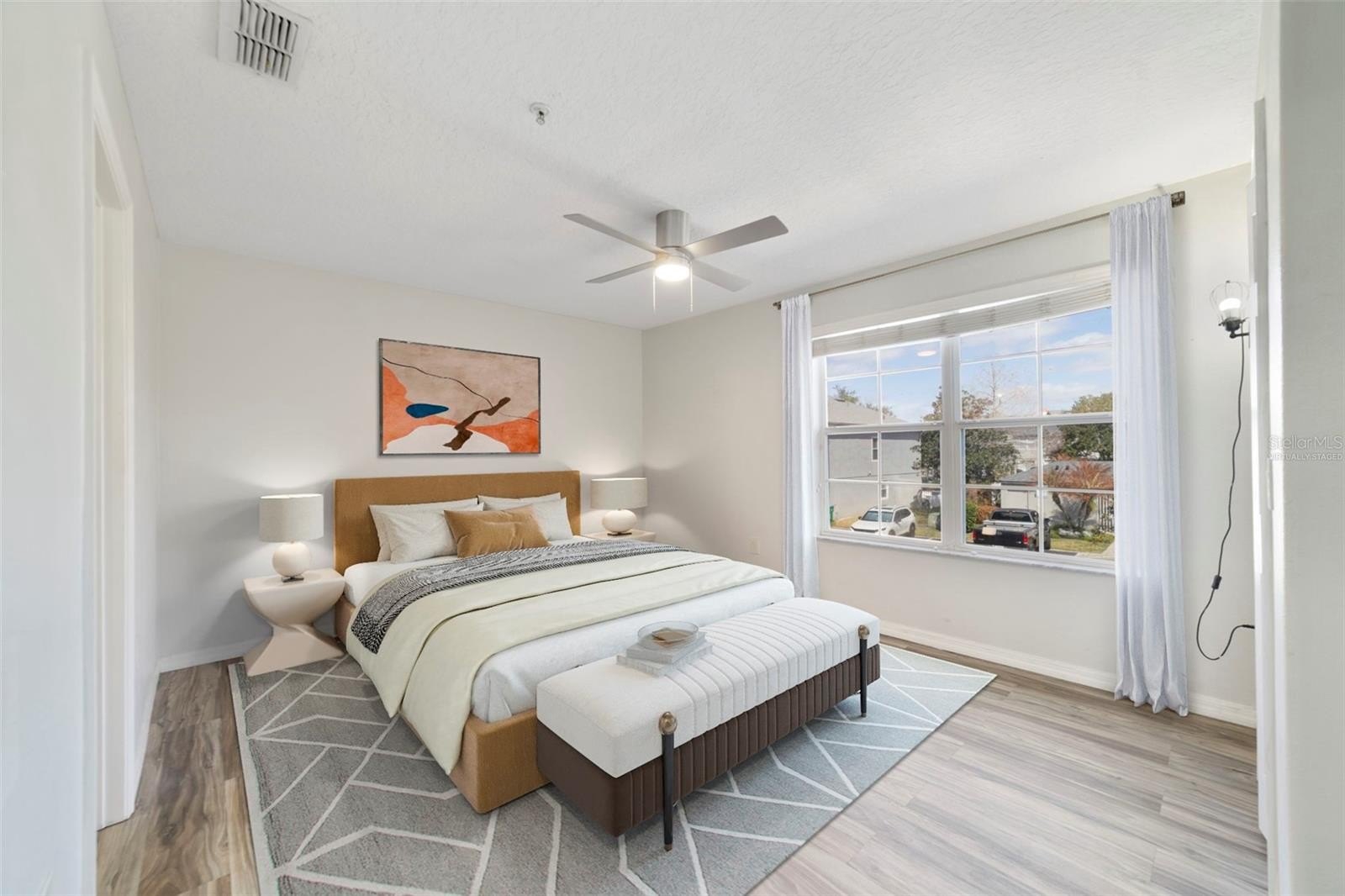 One or more photo(s) has been virtually staged. ROOF & ELECTRICAL UPDATED (2023) – this well-maintained townhome in the gated Heritage Park community of Winter Springs offers peace of mind along with stylish, LOW MAINTENANCE LIVING in one of Seminole County’s most convenient locations! Thoughtfully designed with TILE & LUXURY VINYL PLANK FLOORING throughout, this home feels light, bright, and MOVE-IN READY from the moment you step inside. The OPEN CONCEPT main floor is ideal for everyday comfort and easy entertaining, featuring a comfortable living area that flows seamlessly into the kitchen. The home chef will appreciate the long breakfast bar for casual dining, STAINLESS STEEL APPLIANCES, rich cabinetry, and generous prep space, while a convenient half bath downstairs adds functionality for guests. Sliding glass doors open to a SCREENED LANAI finished with wood look tile, where mature landscaping and tranquil POND VIEWS create a peaceful outdoor retreat – perfect for morning coffee or unwinding at the end of a long day. Upstairs, both bedrooms offer private en-suite full baths, creating an ideal layout for homeowners, guests, or roommates. The PRIMARY SUITE includes a large WALK-IN CLOSET and relaxing water views, while the overall layout provides comfort and privacy for everyday living. Perfectly positioned across from the COMMUNITY POOL while enjoying serene views out back, this home delivers the best of both worlds. Heritage Park is a GATED COMMUNITY in the heart of Winter Springs, ideally located just off SR-434 and directly across from Central Winds Park, with access to walking trails, lakes, and endless outdoor space to explore. Spend weekends biking the Cross Seminole Trail, boating on Lake Jesup, or checking out the many nearby parks and recreation areas. Residents enjoy access to a community pool, park, and playground, all just minutes from shopping, dining, and major roadways for an easy commute throughout Central Florida. Whether you are searching for your first home, a low-maintenance lifestyle, or a strong rental opportunity, this Constitution Way townhome checks all the boxes with location and lifestyle appeal! Call today to schedule your tour!