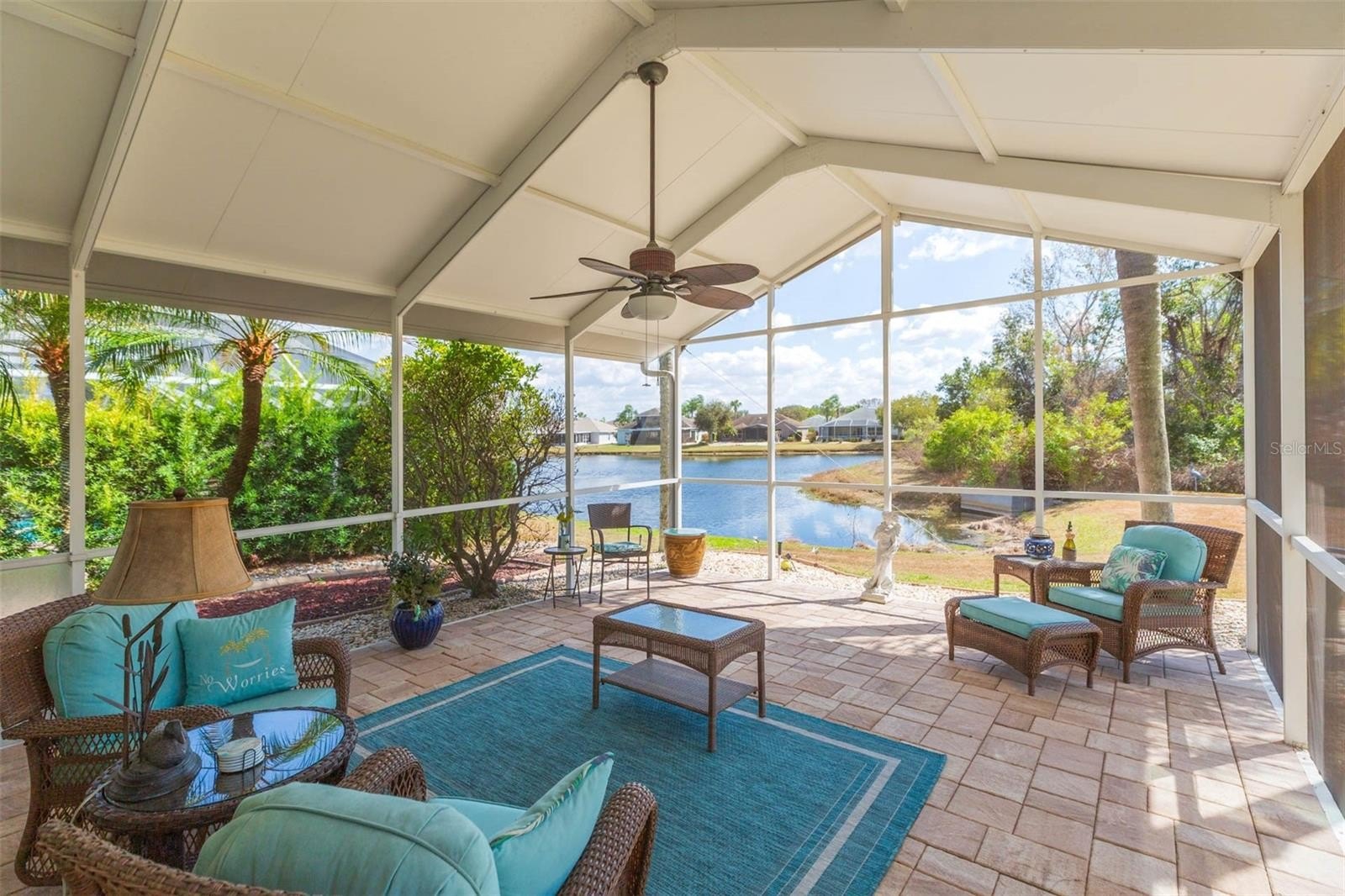 Do not miss your opportunity to own this fully ADA-compliant home! Tucked away on a quiet cul-de-sac this 2 bedroom, 2.5 bath single-family home offers stunning POND VIEWS. Entering in the foyer, the expansive vaulted ceilings and an abundance of natural light from the glass sliders gives an impressive first impression. The living room has been extended for additional interior living space and the lanai right off of the living room creates a true indoor/outdoor feel. Most of your time will be spent enjoying the peaceful pond views and observing endless wildlife from the lanai. The formal dining room is ideal for family gatherings, opening to the kitchen which is complete with upgraded stainless-steel appliances including a drawer microwave and Bosch dishwasher, granite countertops and center island with butcher block- a cooks dream for chopping. The breakfast nook has an expansive window for soaking in the views and extended cabinetry for extra storage. There is no shortage of storage space throughout the home with all of the spacious closets. The primary bedroom has direct access to the backyard with doors leading to a private lanai overlooking the pond, two walk-in closets and ensuite with dual vanity sinks and seamless walk-in shower. The secondary bedroom is tucked away from the primary for added privacy and has a nearby full bath. Upstairs, the bonus room has a walk-in closet and a convenient half bath. The stairlift installation makes getting up and down the stairs a breeze. Additional upgrades include: IMPACT WINDOWS AND DOORS, security sensors on windows and doors, pavers on the driveway, walkway, lanai, NEW AC and ductwork 2020, Water softener 2022, shingle roof and aluminum roof on lanai 2015, updated counters in bathrooms, Gorilla garage flooring, 20ft flagpole with down lights, and so much more! Sun City Center offers an active lifestyle with endless state-of-the-art amenities like fitness center, indoor Olympic lap pool, a resistance pool & outdoor pool. Softball, Pickleball, tennis, Arts/crafts, model train, woodworking, lawn bowling, dancing and 150+ clubs & activities to join. Club Renaissance with 72 holes of golf under separate optional membership available. Front lawn care is included in HOA fee.