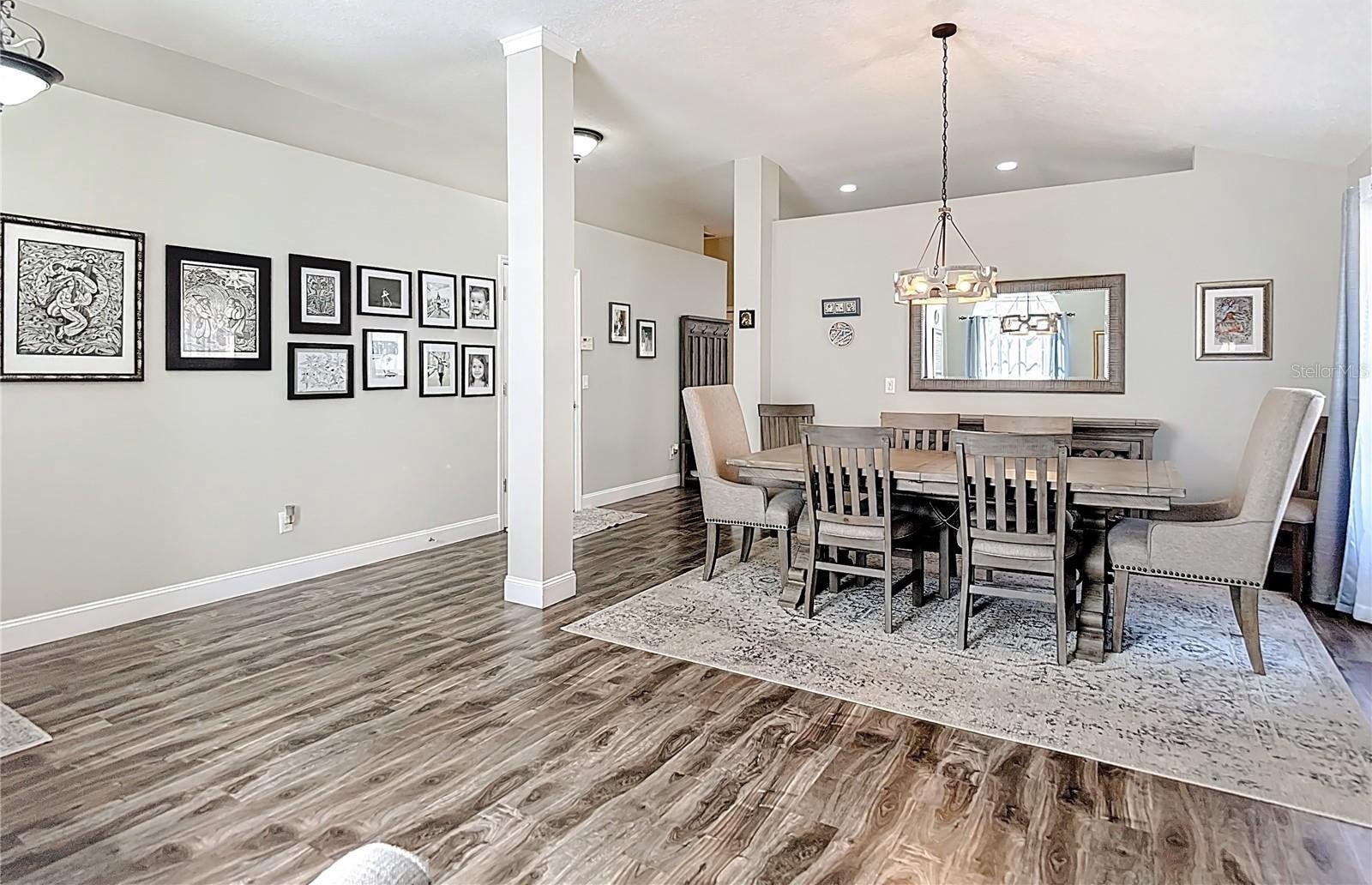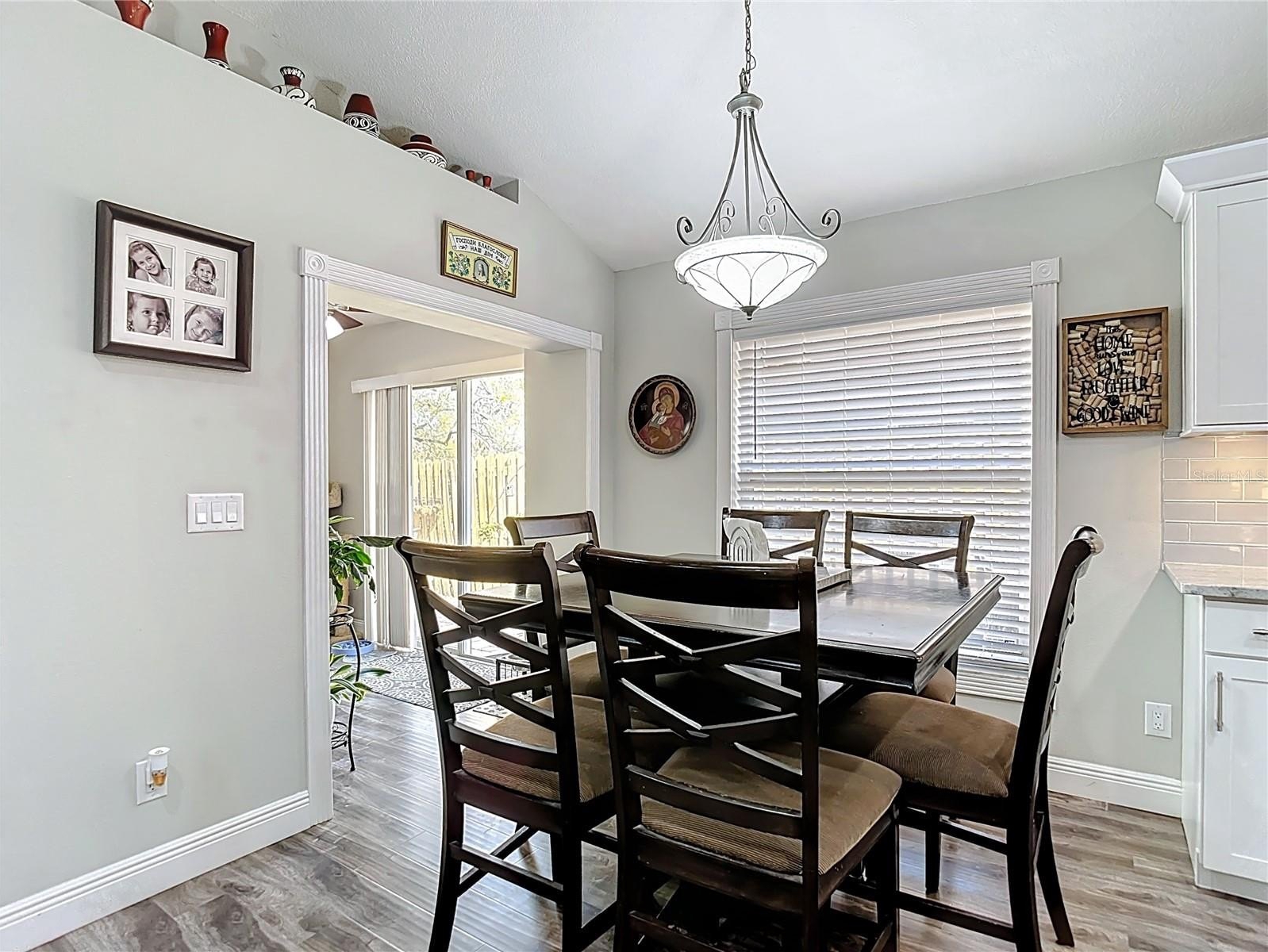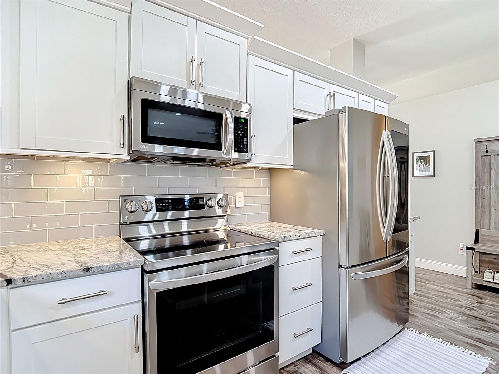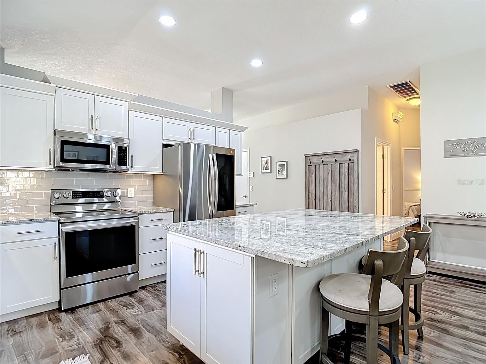 Upon entry, you’re welcomed by formal living and dining rooms — perfect for entertaining. The fully remodeled kitchen (2021) is the heart of the home, featuring white cabinetry with modern hardware, granite countertops, glass subway tile backsplash, a large center island with built-in wine refrigerator, and stainless-steel LG appliances. The kitchen opens seamlessly to the family room and includes a cozy breakfast nook for everyday dining.The family room features a charming wood-burning fireplace updated with white marble tile in a beautiful herringbone pattern — creating a warm and inviting focal point.