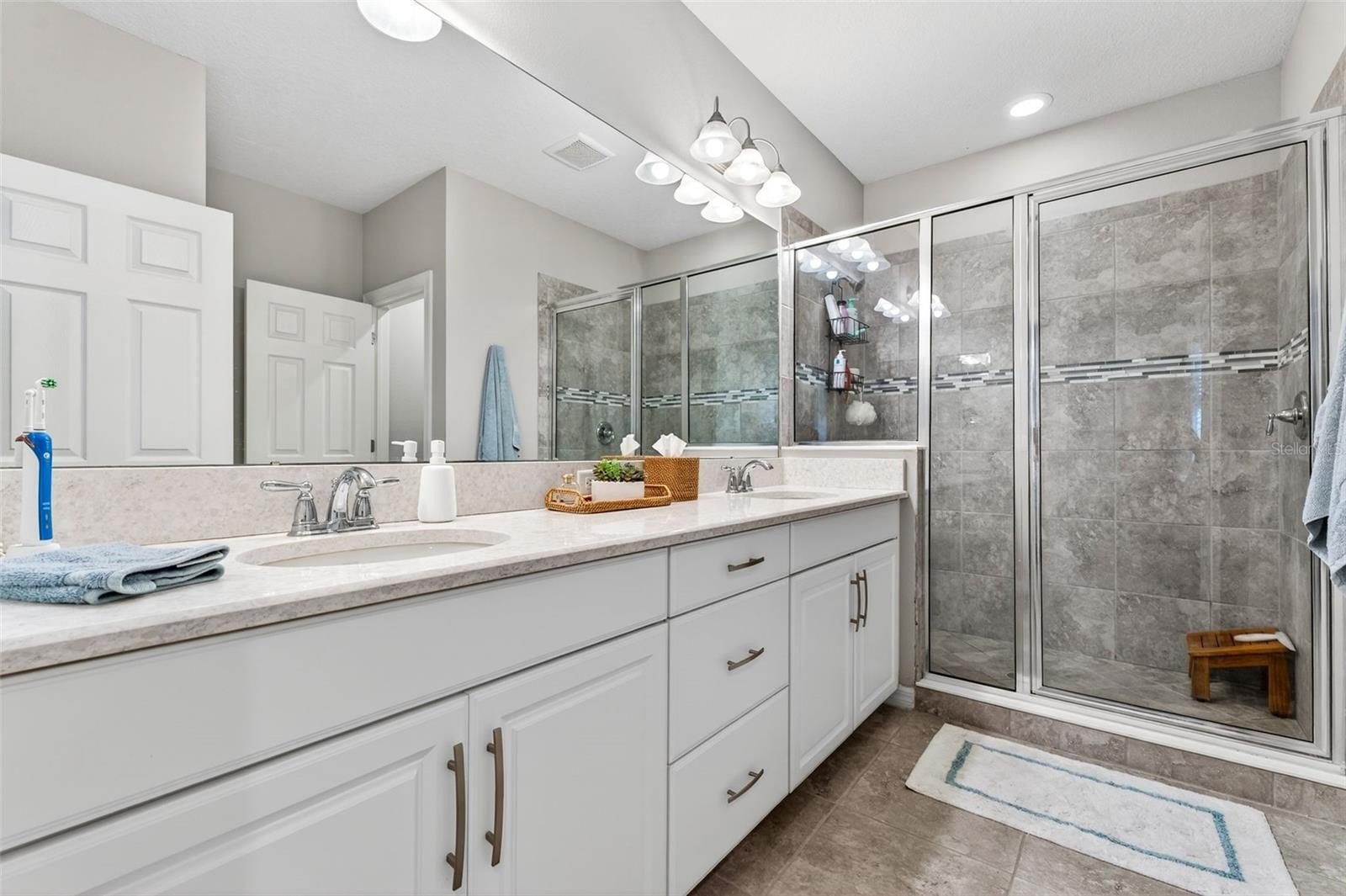 Upstairs, the generous primary suite offers a peaceful retreat with a walk-in closet and a spa-inspired bath complete with dual vanities and a glass-enclosed shower. Two additional bedrooms provide flexibility for guests, a home office, or growing needs.