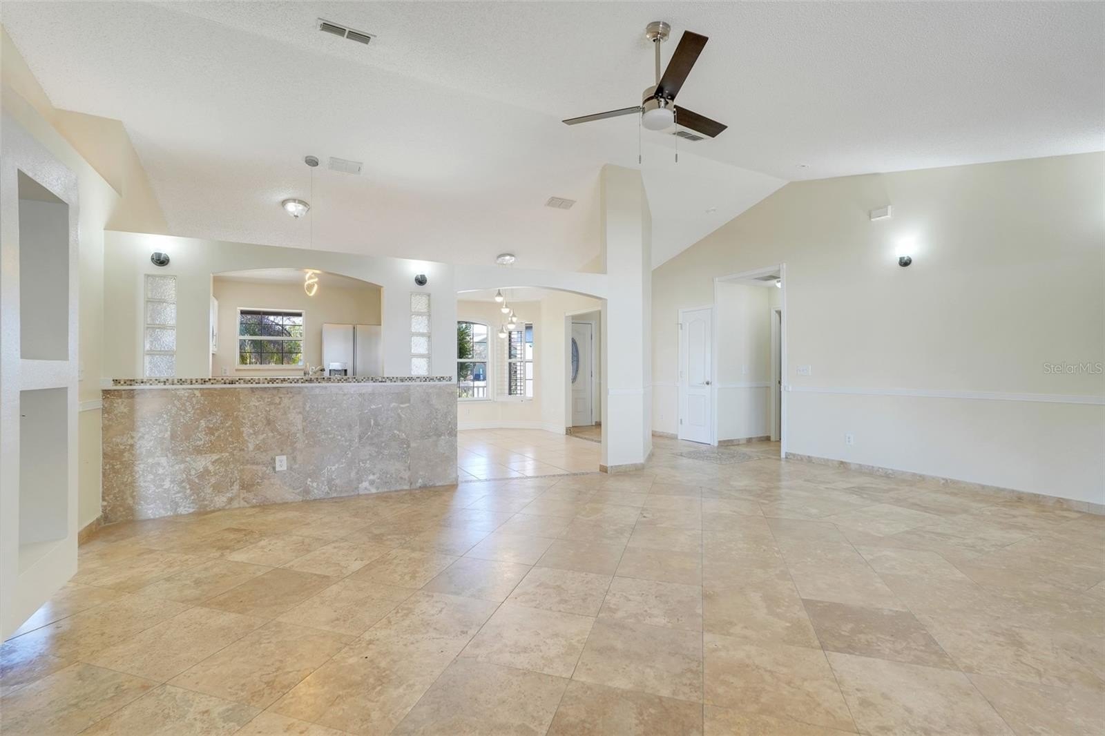 • Transition through sliding doors to a large, fully screened-in patio—your bug-free "outdoor living room" for year-round enjoyment.