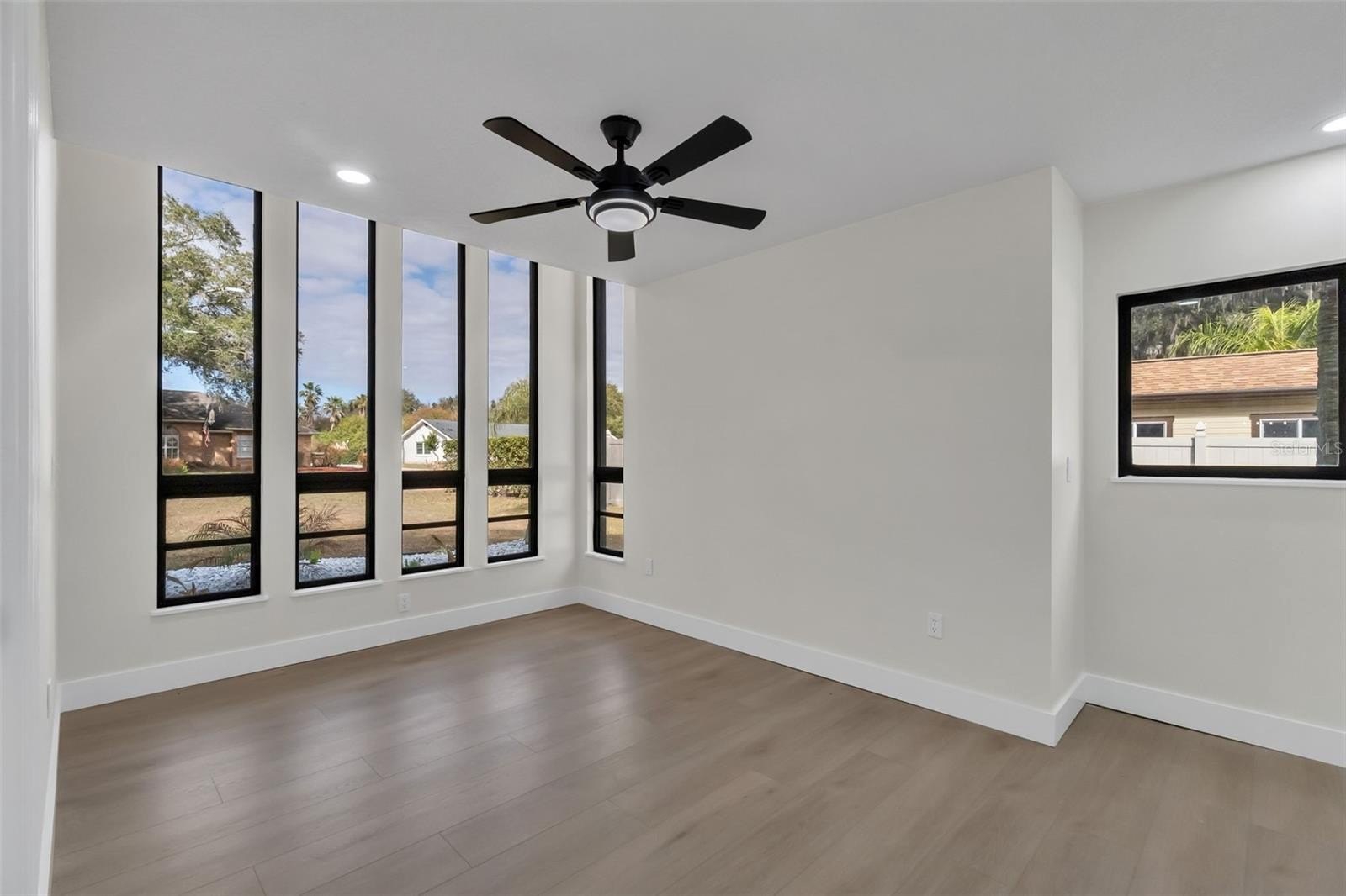 Fully renovated from top to bottom, this 4-bedroom, 3-bath home offers 2,760 square feet of thoughtfully redesigned living space on a spacious .35-acre cul-de-sac lot — with no HOA. From the moment you enter, the home makes a statement. A striking glass staircase sets the tone, adding architectural interest and modern edge that immediately separates this home from the ordinary. An abundance of newly installed lighting fills the space with bright, natural warmth, while wide-plank luxury vinyl flooring runs seamlessly throughout for a clean, cohesive look. The kitchen was designed to impress and perform — featuring brand-new cabinetry, sleek quartz countertops, stainless steel appliances, and a generous island that anchors the room. It flows effortlessly into the open-concept living area where a remodeled fireplace adds warmth and balance to the contemporary finishes. The primary suite feels like a private retreat. With two access points — including a dramatic spiral staircase — the space offers flexibility and character rarely found at this level. The spa-inspired primary bath delivers a true oasis feel, complete with a freestanding soaking tub and dual shower heads designed for a luxurious, everyday escape, while each bathroom showcases brand-new custom tile showers, modern vanities, and quartz countertops that feel straight out of a design magazine. All four bedrooms offers comfortable, usable space, and each includes a custom closet system for elevated organization and functionality. Major updates have already been handled: brand-new roof, fresh interior and exterior paint, and a newly resurfaced pool provide both style and peace of mind. Step outside to a large covered patio overlooking the pool and jacuzzi — a true Florida backyard built for entertaining or unwinding year-round. The oversized driveway and 2-car garage allow for multiple vehicles, guests, or recreational toys, while the expansive lot still leaves room to breathe. Architecturally distinctive, fully updated, and positioned on a generous lot in a prime area, this is the kind of home that stands out — especially at this price point. Experience it in person and see why it feels different the moment you walk in.