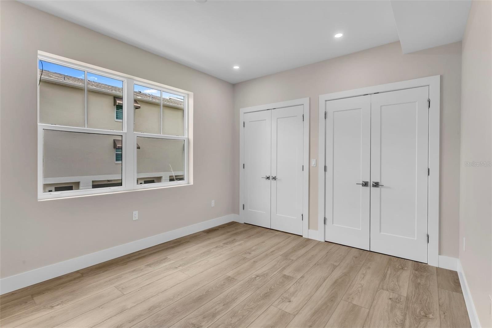 A second en suite bedroom includes a walk-in closet and its own luxuriously appointed bath, while oversized bedrooms three and four share a beautifully designed Jack-and-Jill bathroom. The laundry room is equally impressive, offering quartz countertops, extensive cabinetry, premium tilework, and a porcelain farmhouse sink.